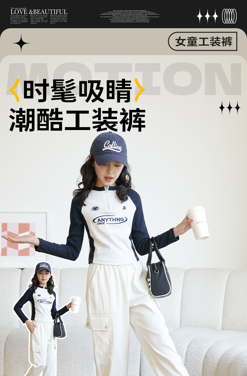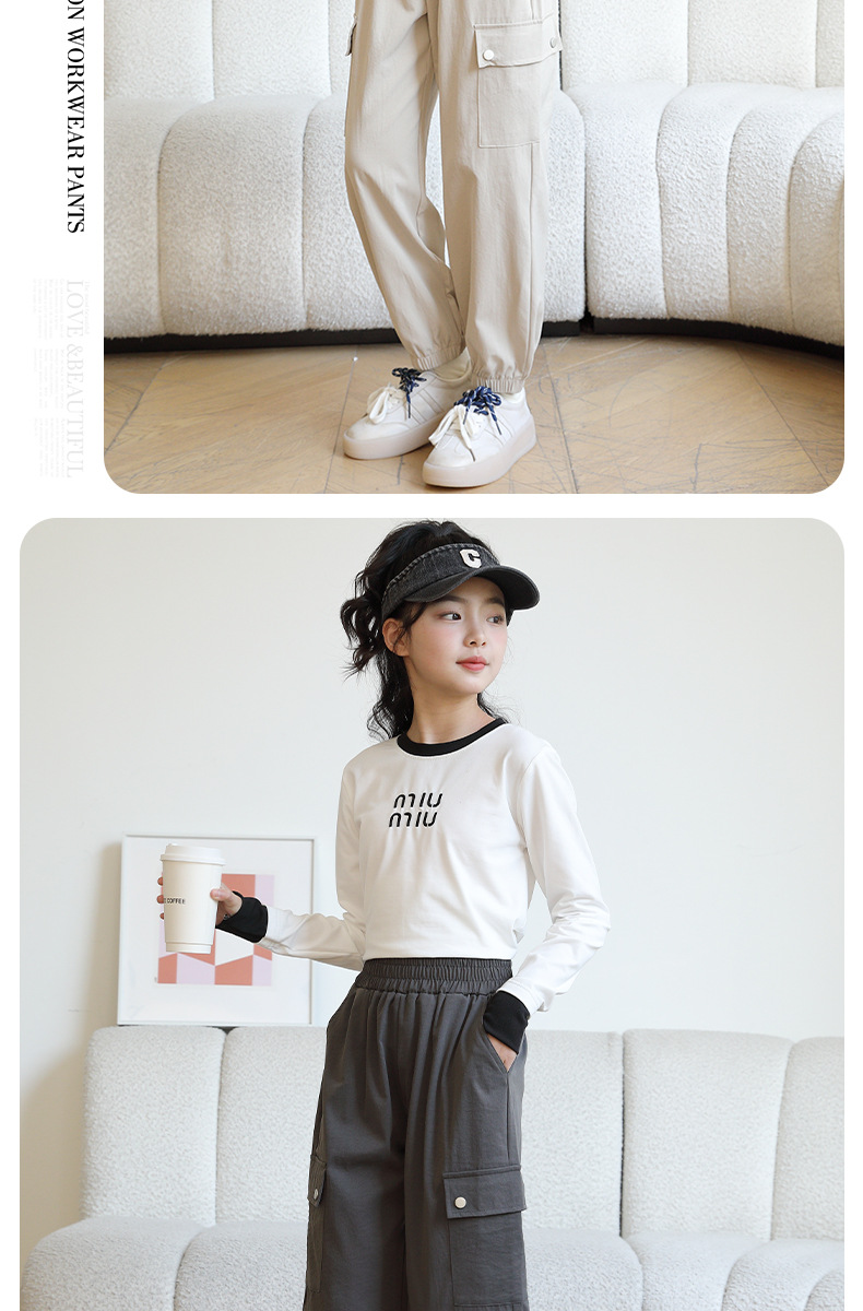 Youpin 아기 소녀 작업복 2025 새로운 스타일 소녀와 소년의 트렌디하고 멋진 봄, 가을 중대형 어린이 캐주얼 바지스토어 가기