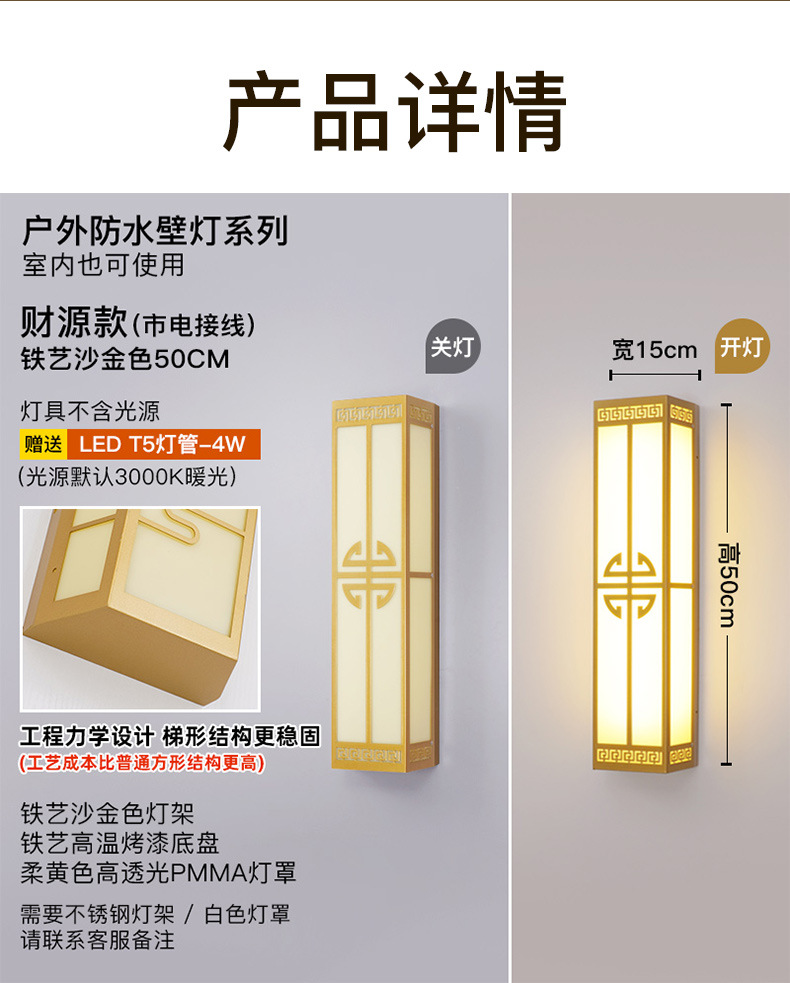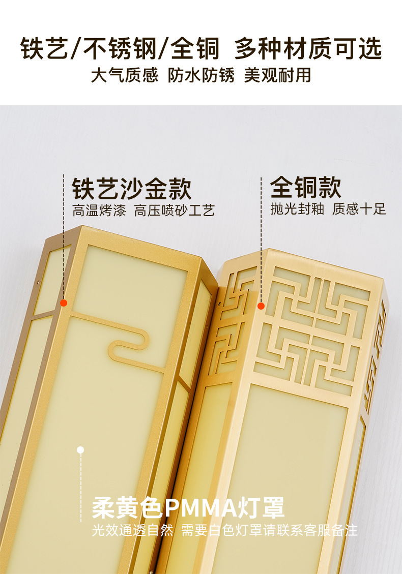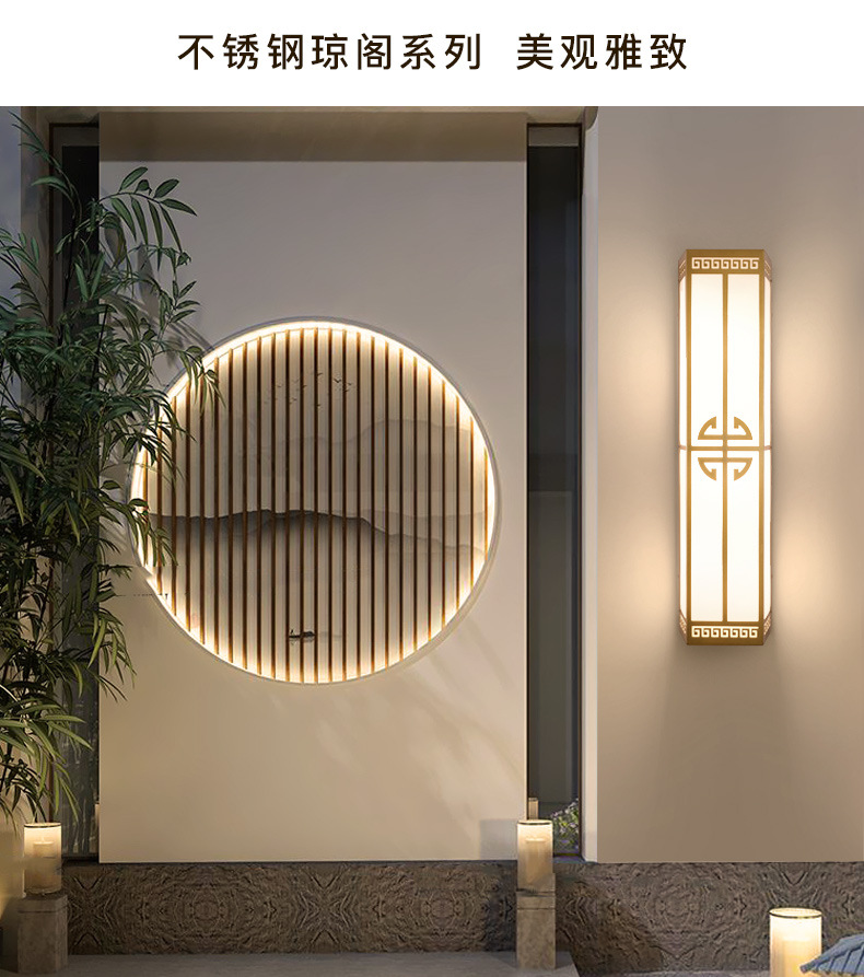 재정 자원 황금 스테인레스 스틸 야외 방수 야외 파빌리온 새로운 중국 스타일 자체 주택 정원 램프 빌라 문 벽 램프