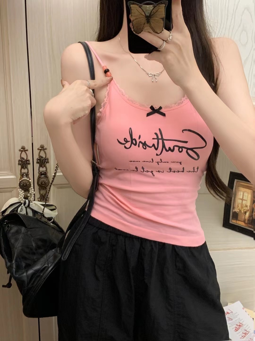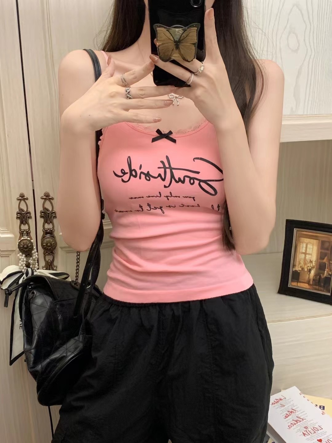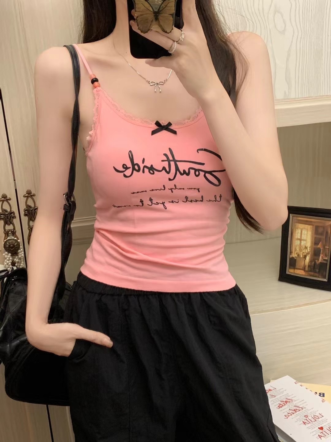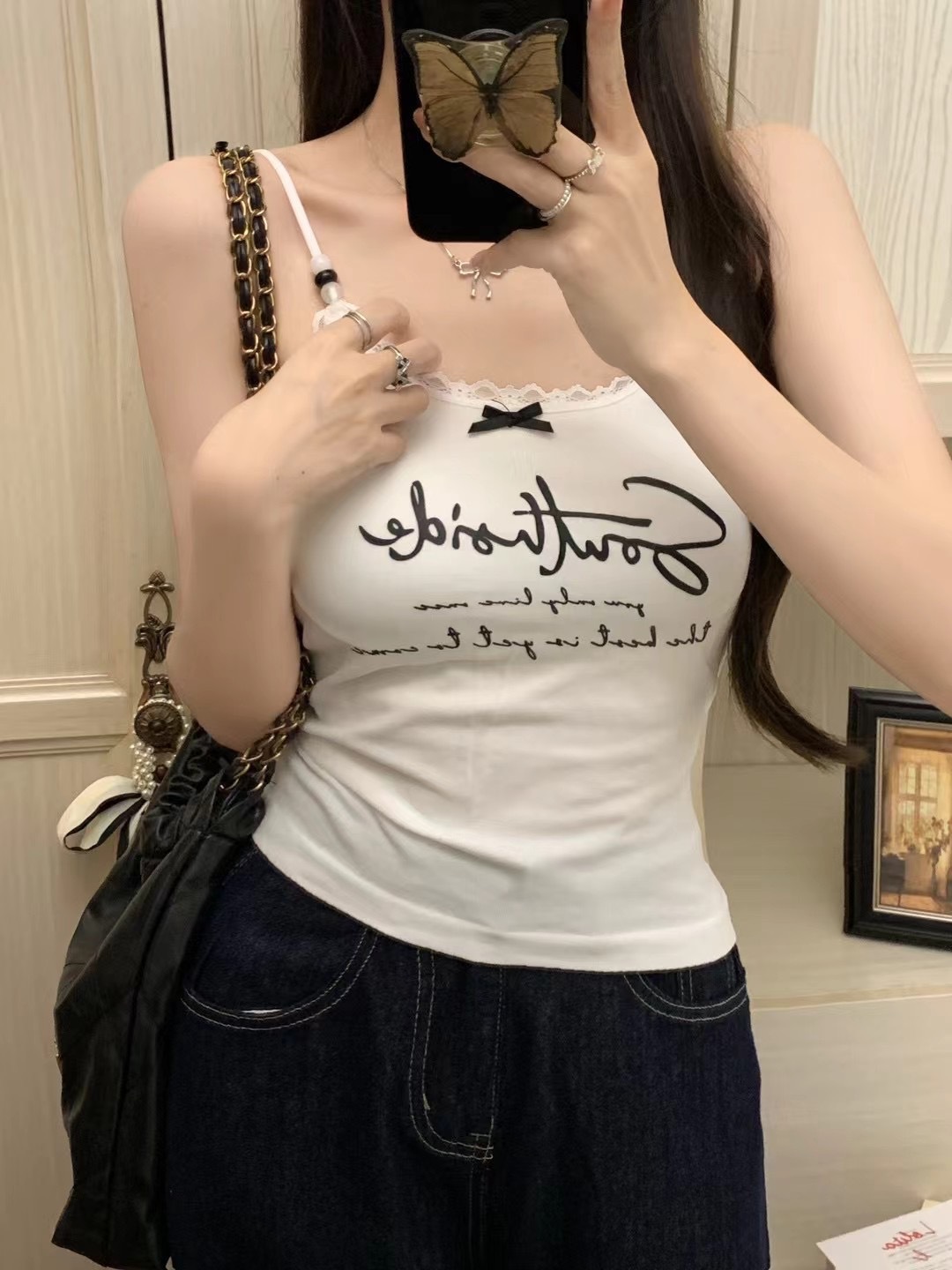 2116 # 달콤한 쿨 스타일 편지 인쇄 슬링 여성의 여름 새로운 스타일 슬림 핏 슬리밍 레이스 조끼 짧은 민소매 아우터웨어스토어 가기
