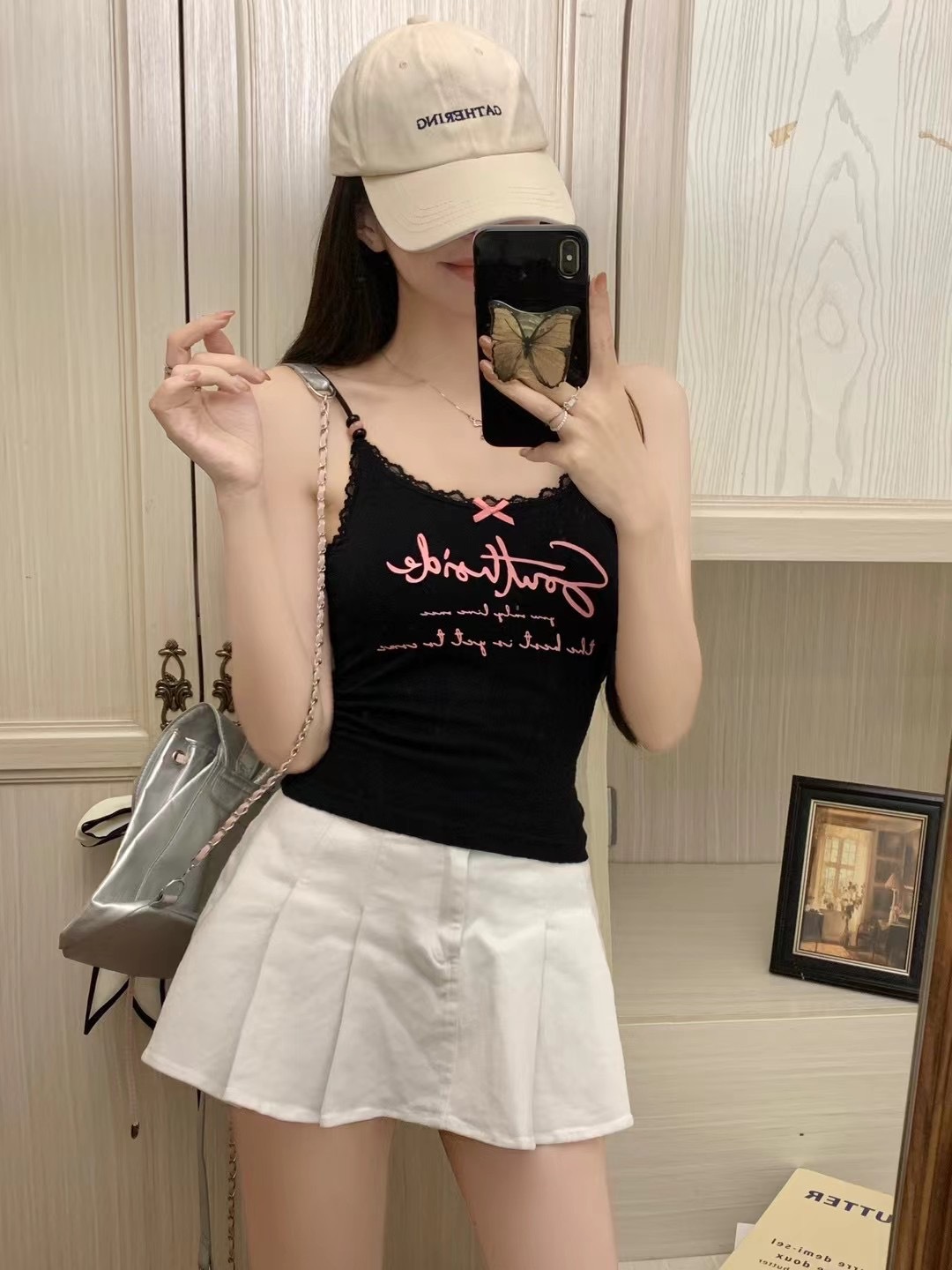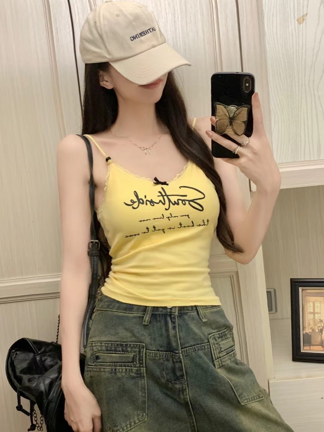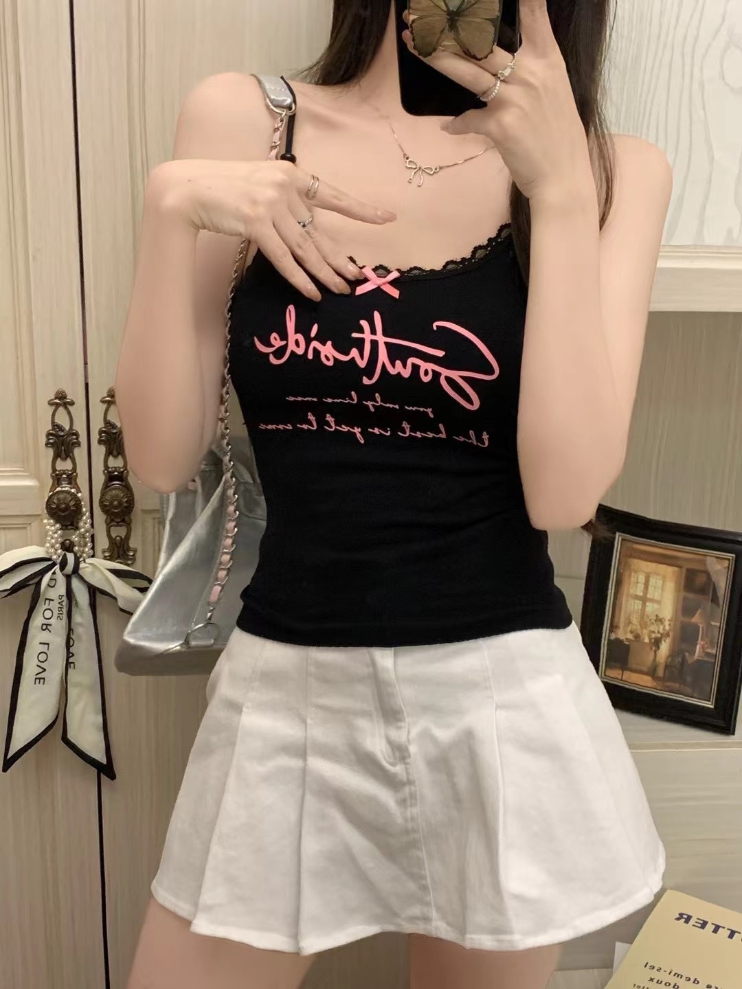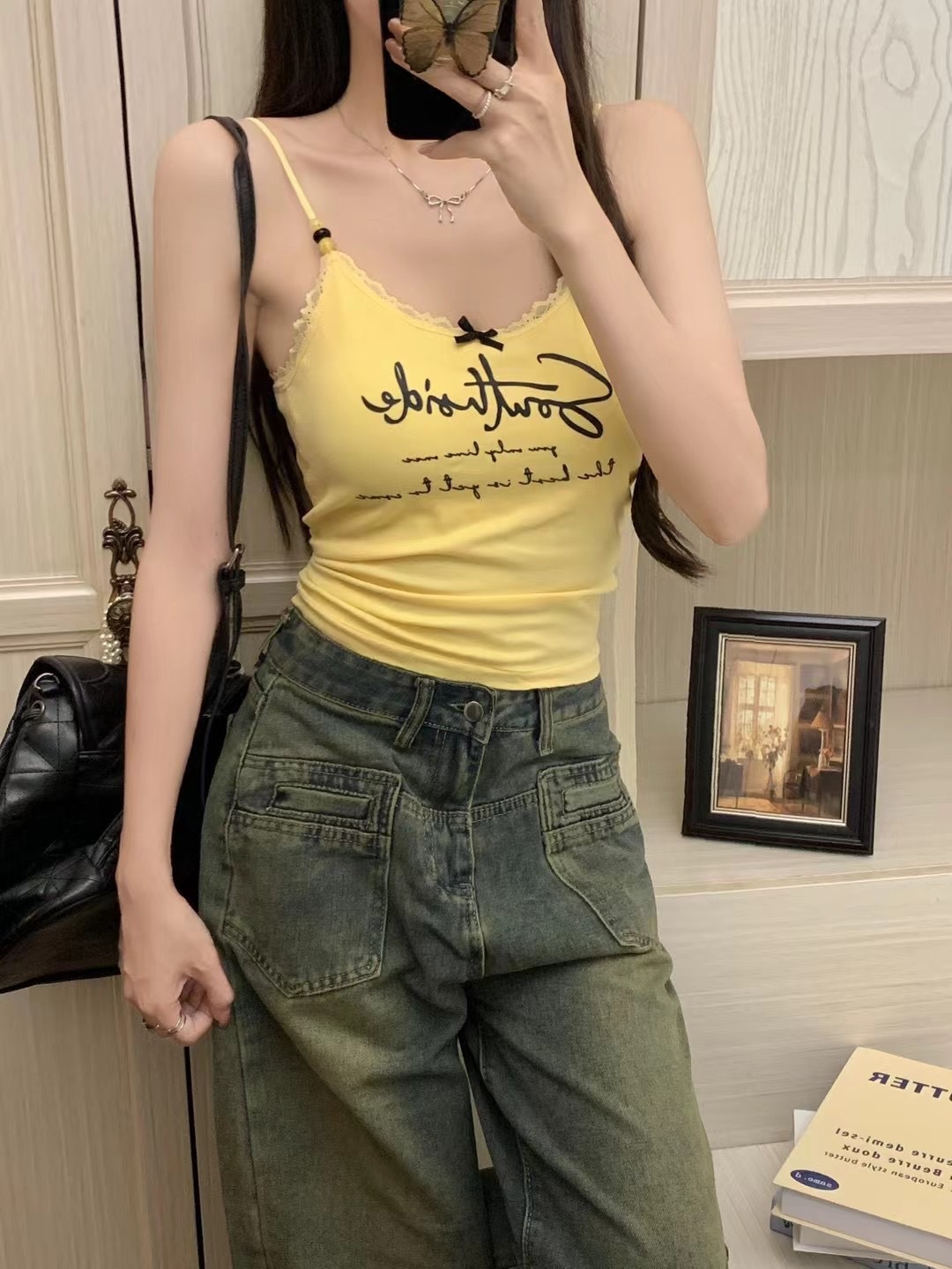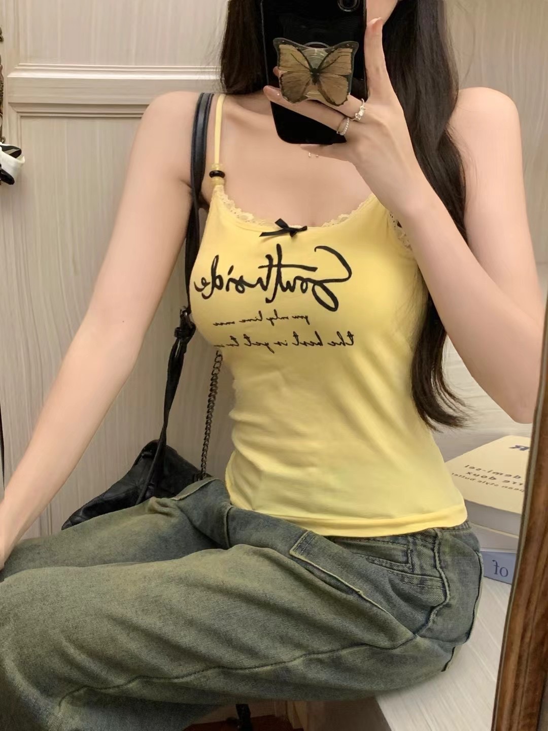 2116 # 달콤한 쿨 스타일 편지 인쇄 슬링 여성의 여름 새로운 스타일 슬림 핏 슬리밍 레이스 조끼 짧은 민소매 아우터웨어스토어 가기