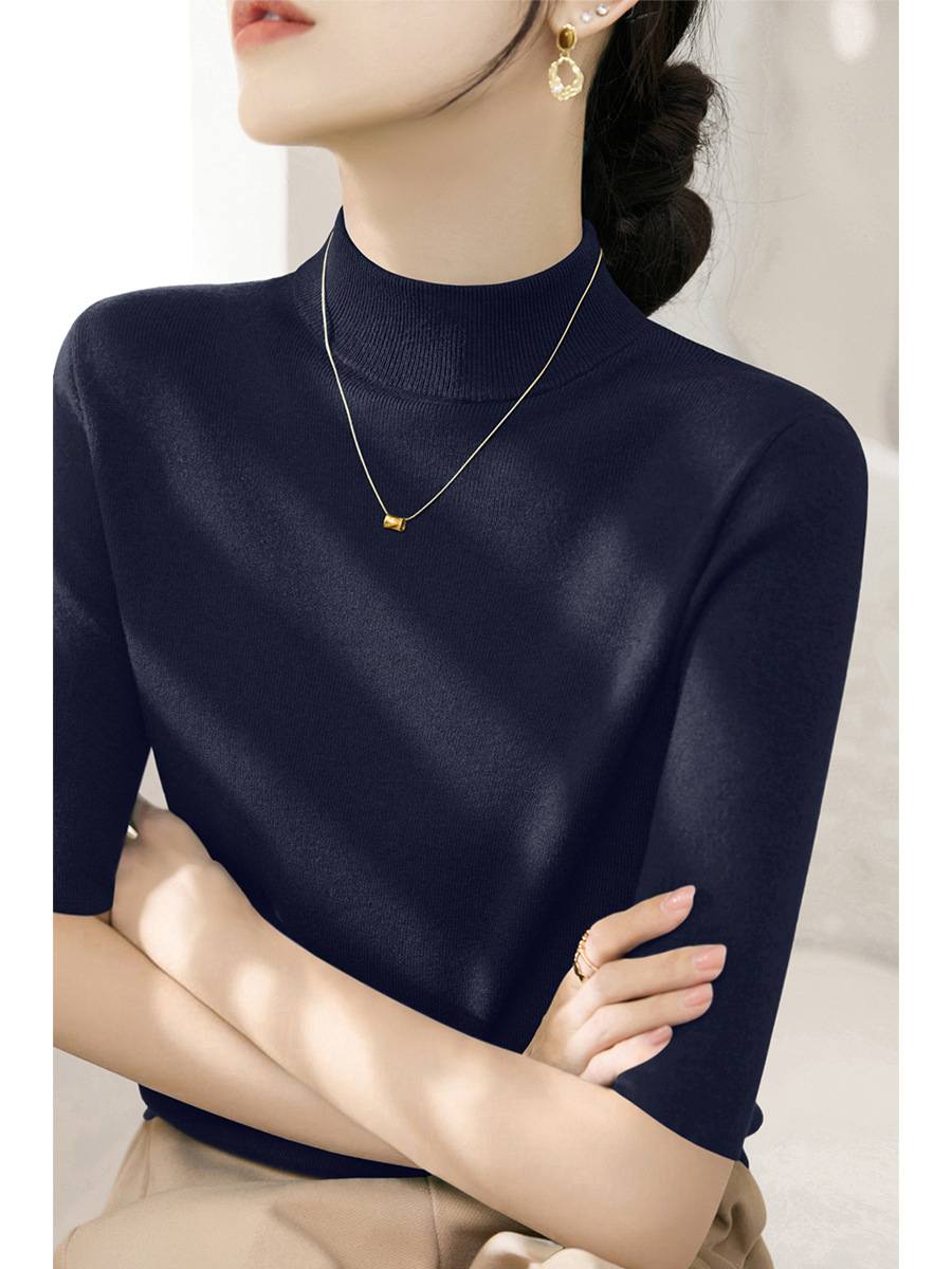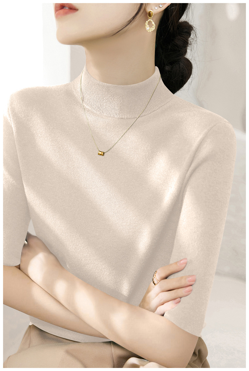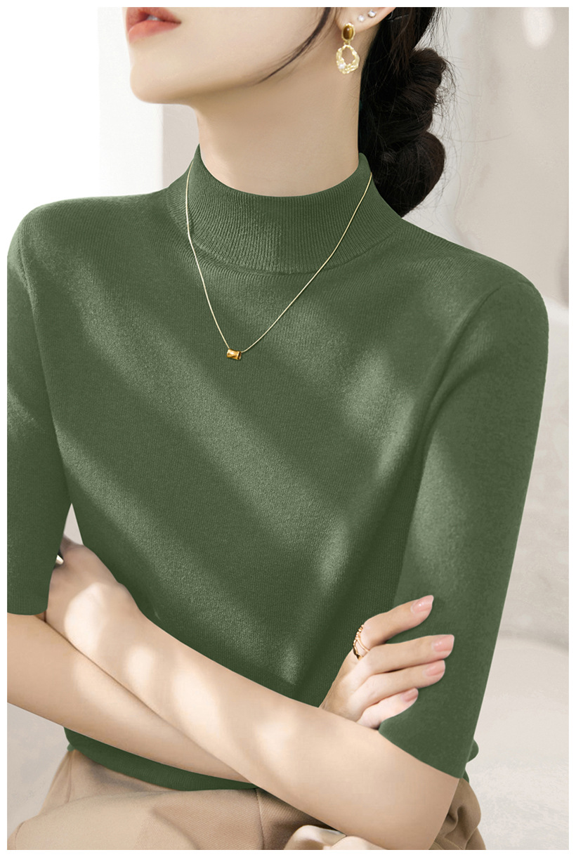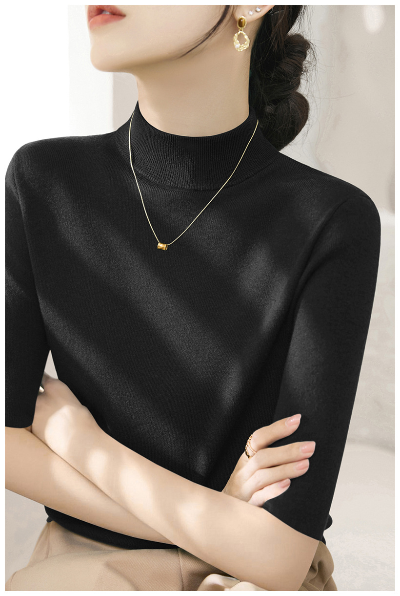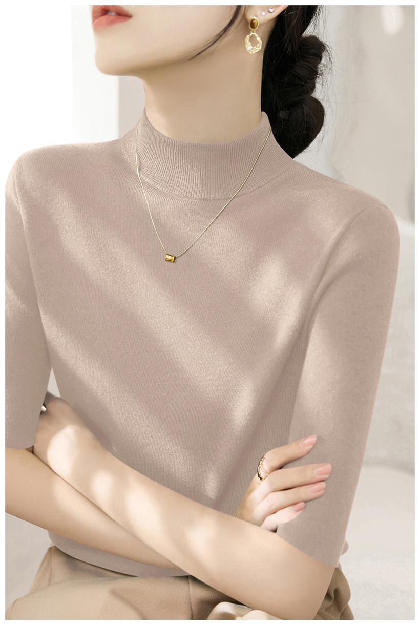 2025년 가을 패션 다용도 니트 여성용 반하이넥 독특한 중간 소매 슬림핏 편안한 베이직 탑스토어 가기