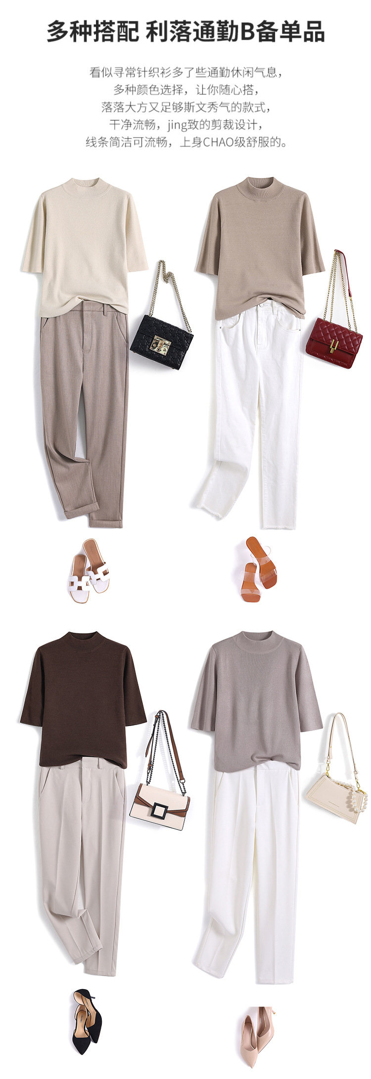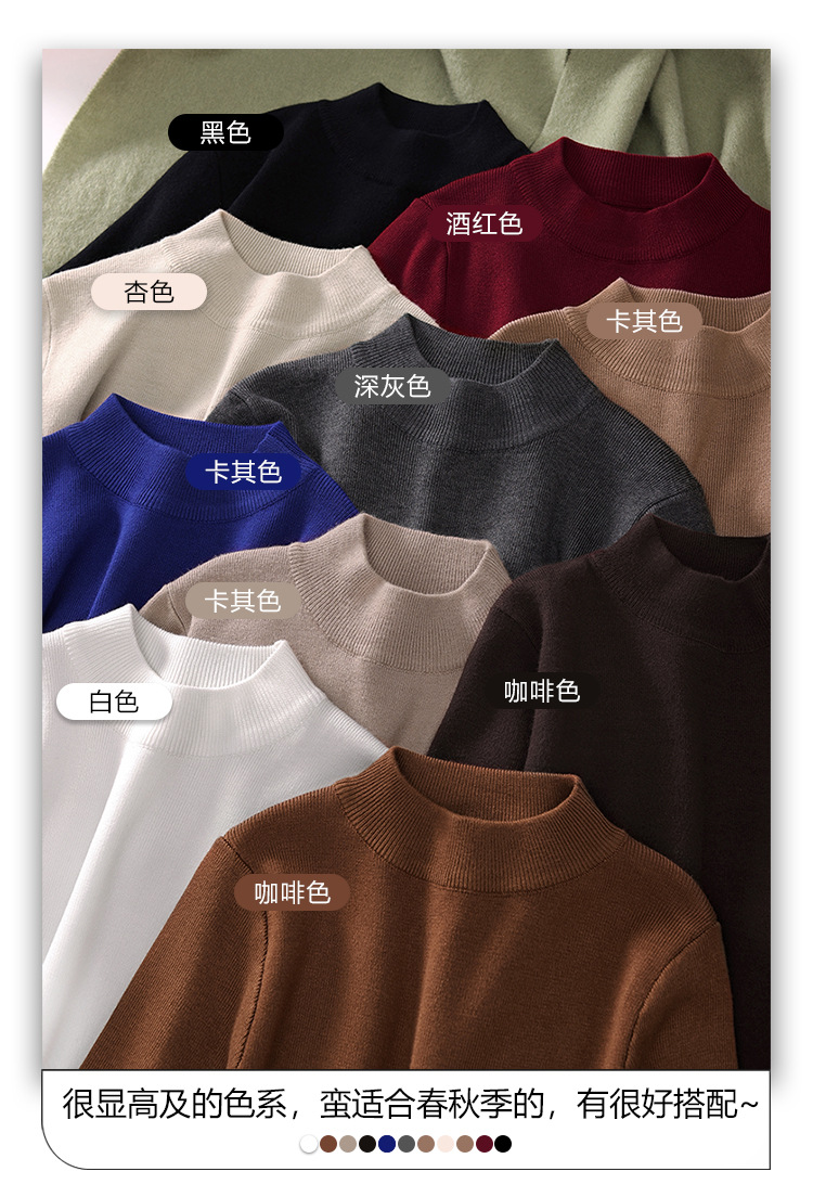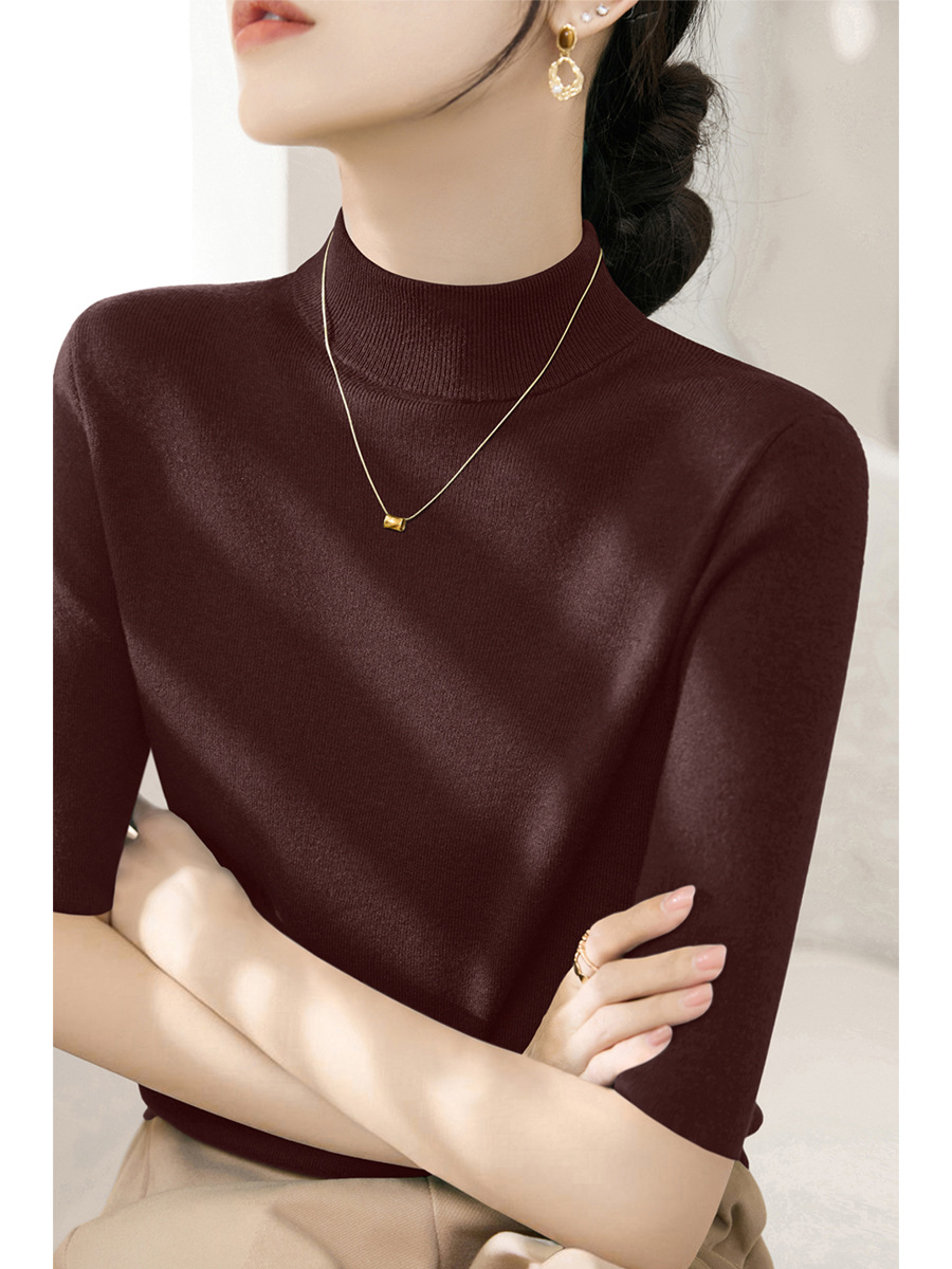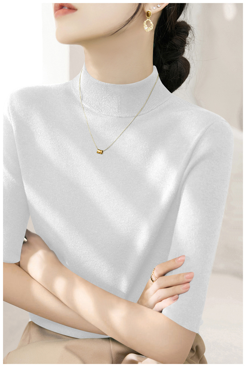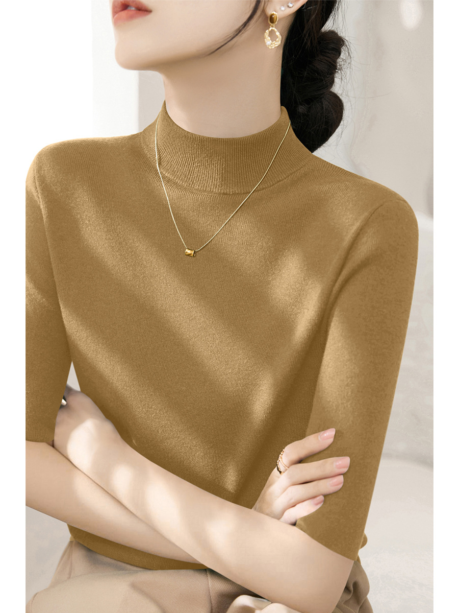 2025년 가을 패션 다용도 니트 여성용 반하이넥 독특한 중간 소매 슬림핏 편안한 베이직 탑스토어 가기