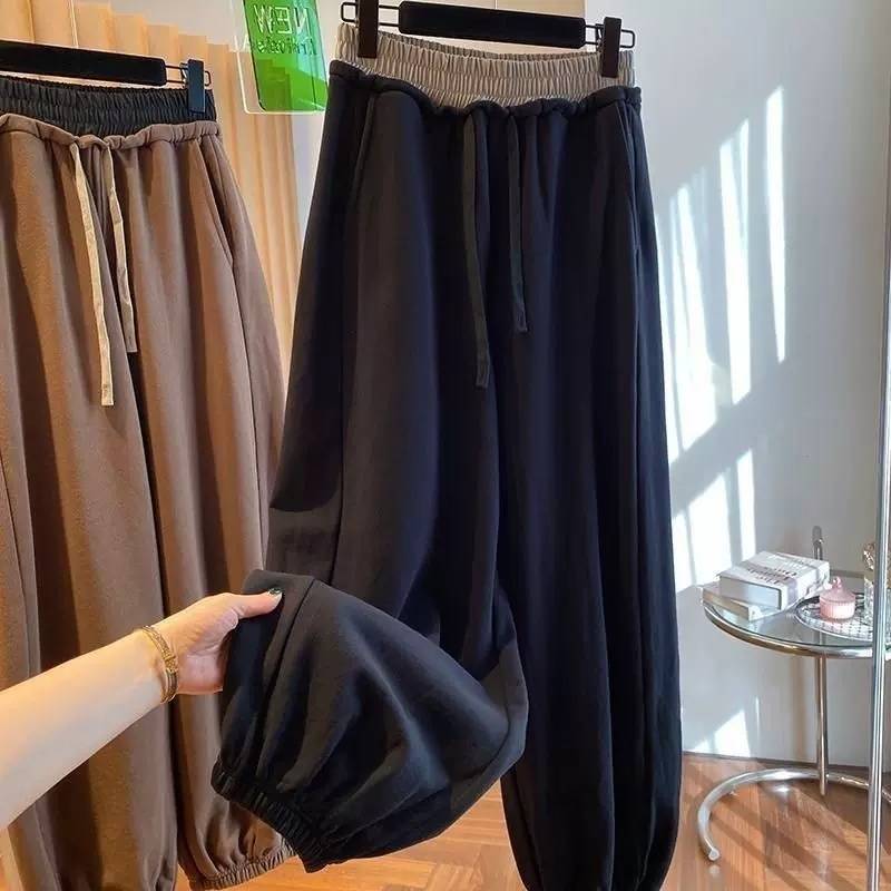 대형 300kg 뚱뚱한 자매 유럽 스포츠 캐주얼 바지 여성 봄 봄 할란 랜턴 넓은 다리 바지 2스토어 가기