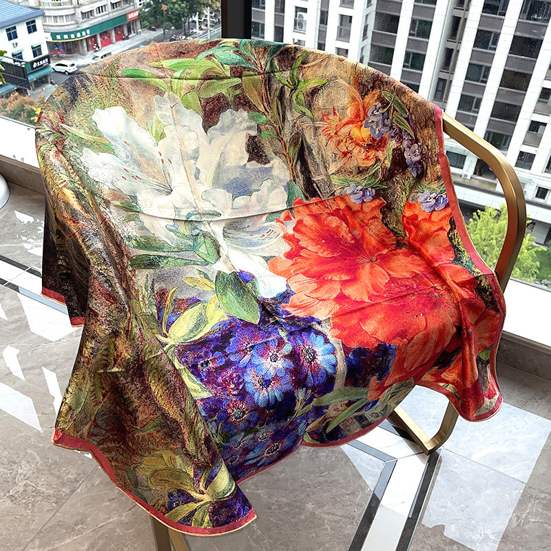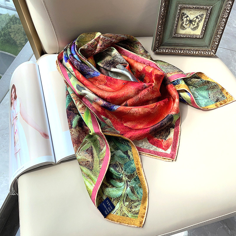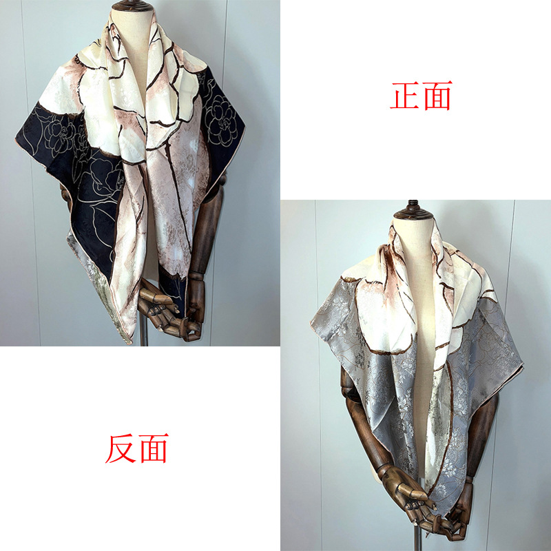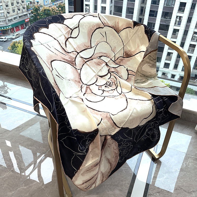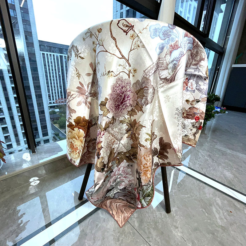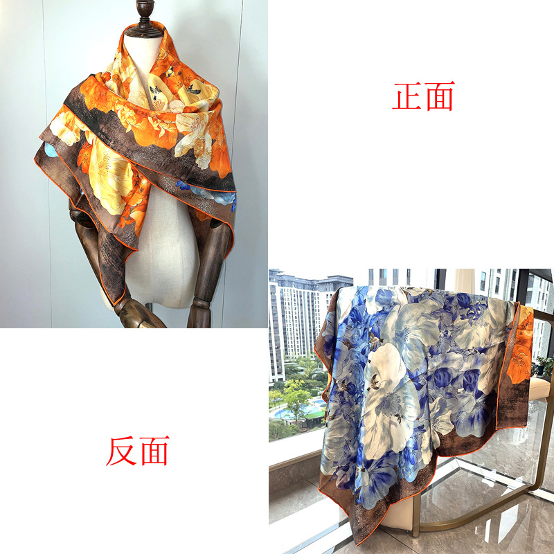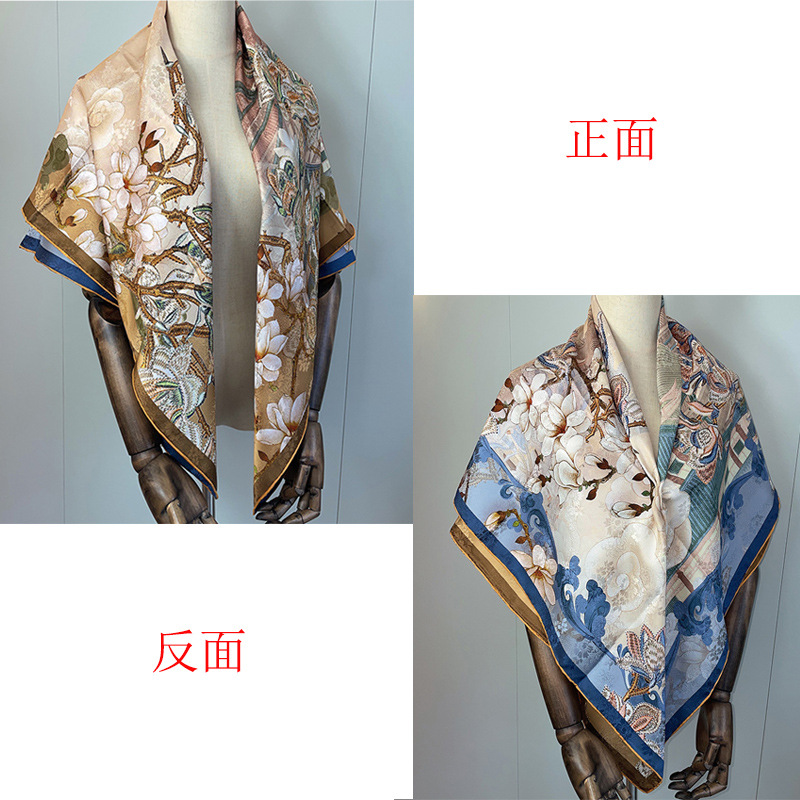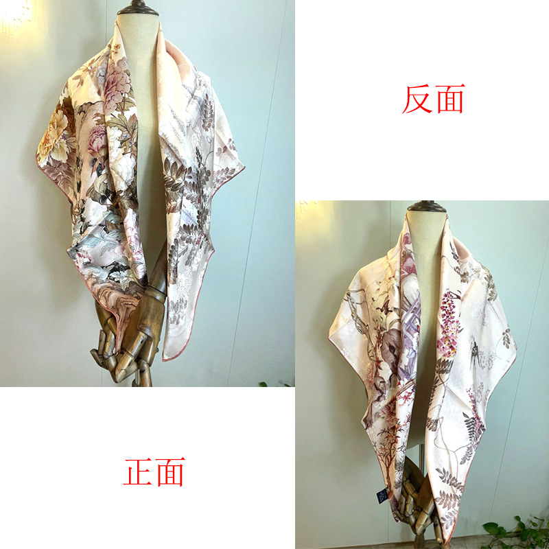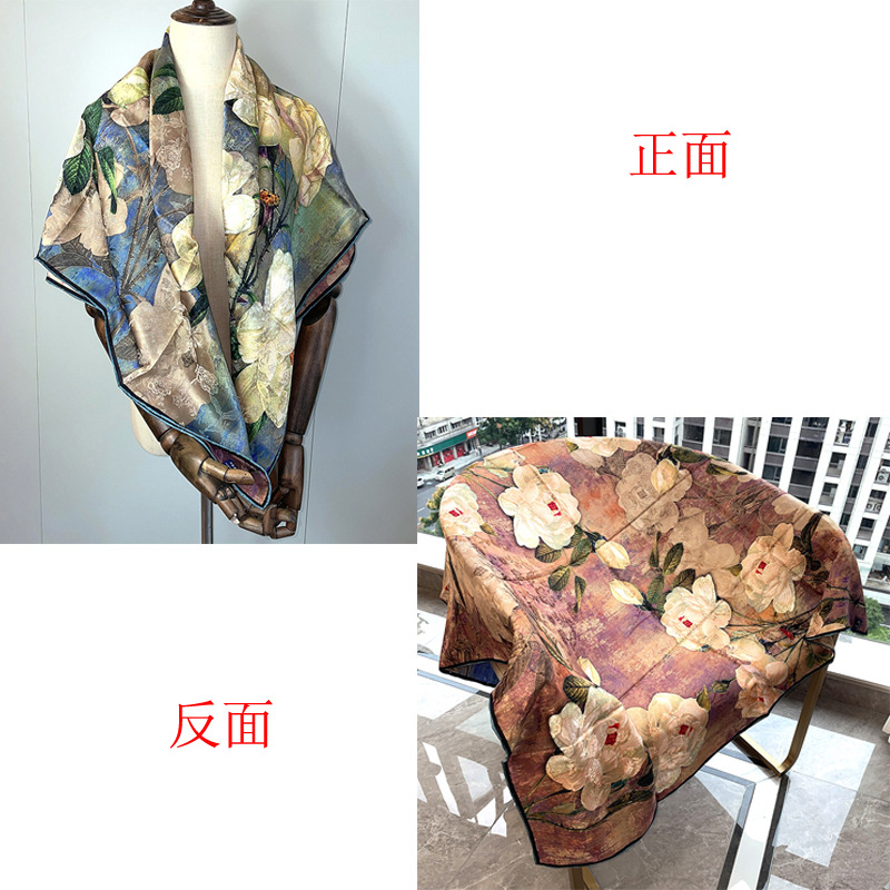 2025 봄 실크 양면 새틴 꽃 장미 큰 사각형 높은 상품 엔티티 도매 항주 실크 라이브 스카프 여성스토어 가기