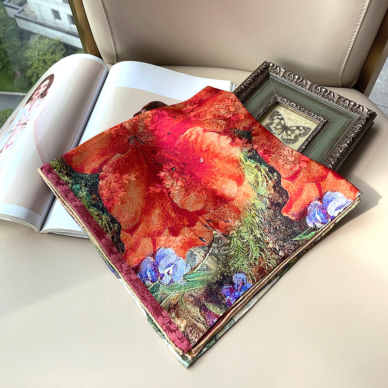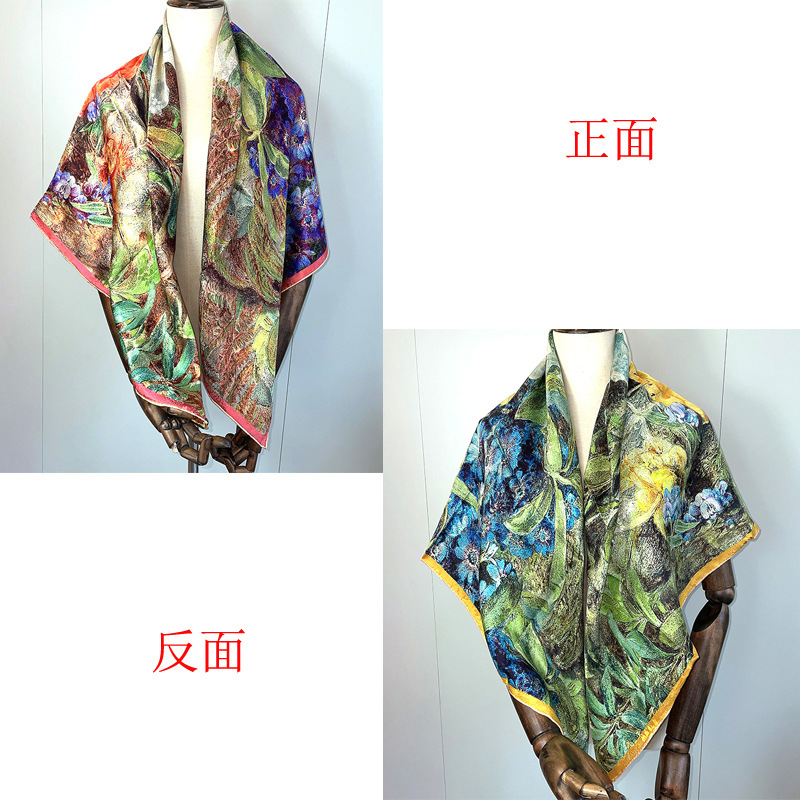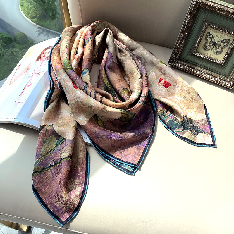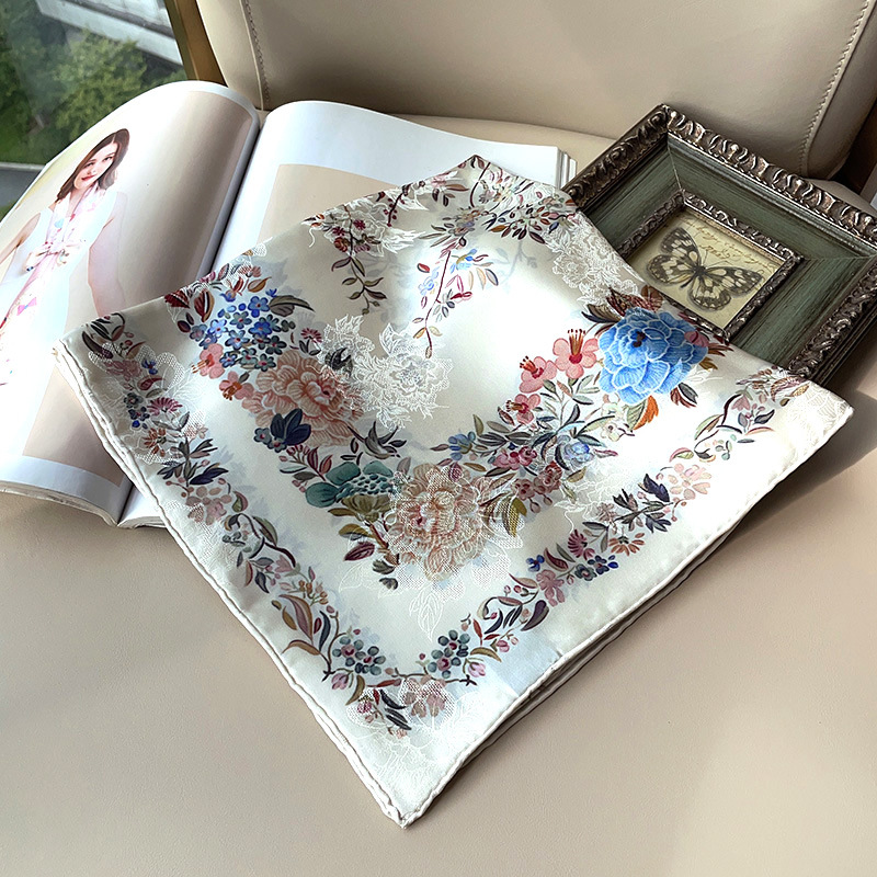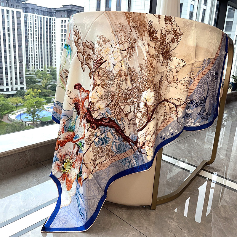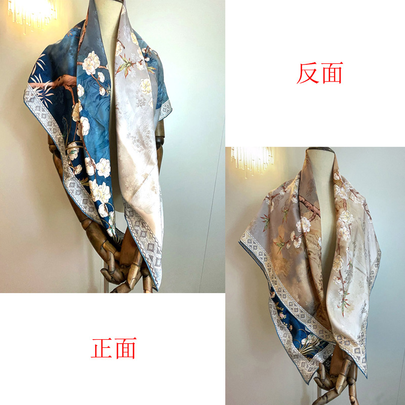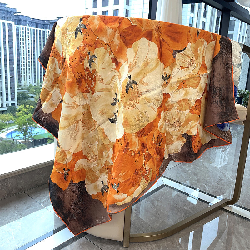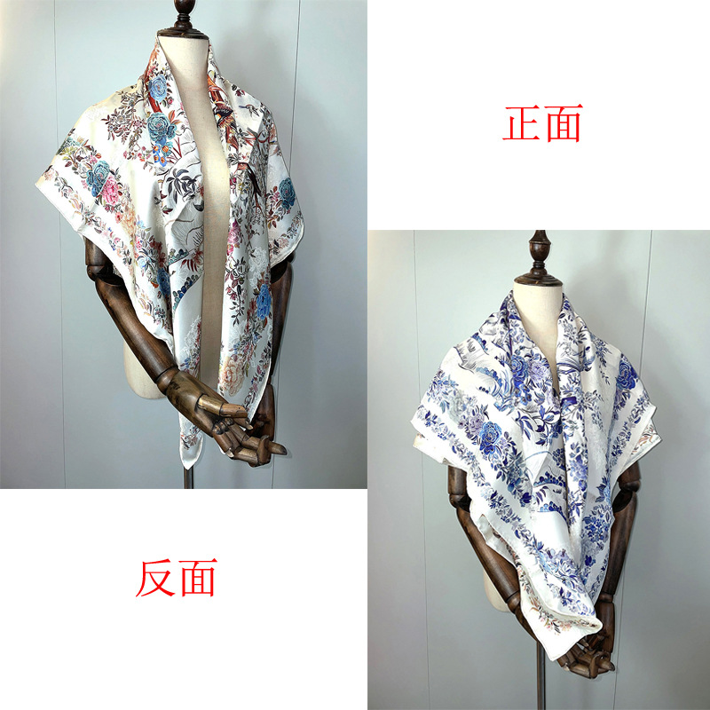 2025 봄 실크 양면 새틴 꽃 장미 큰 사각형 높은 상품 엔티티 도매 항주 실크 라이브 스카프 여성스토어 가기