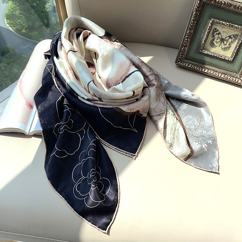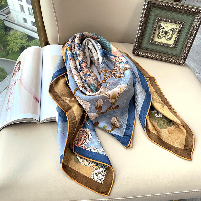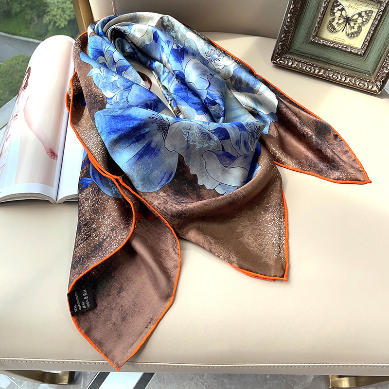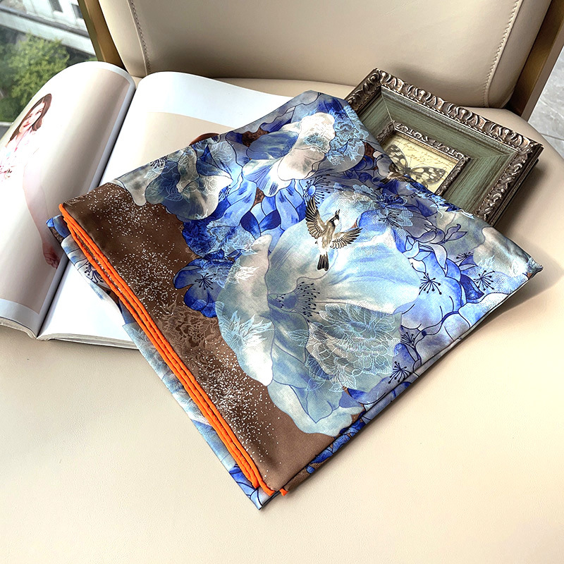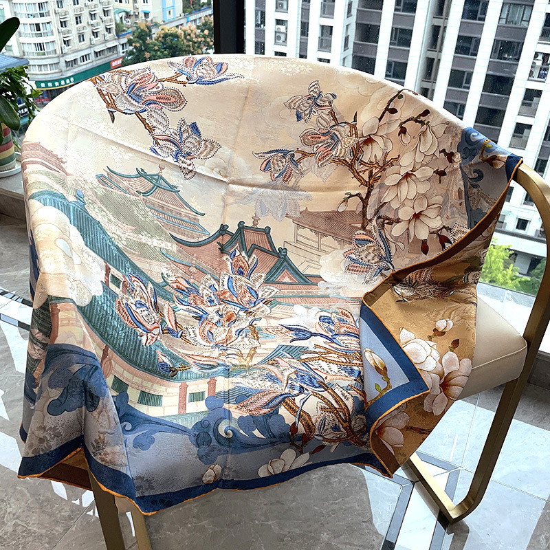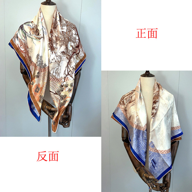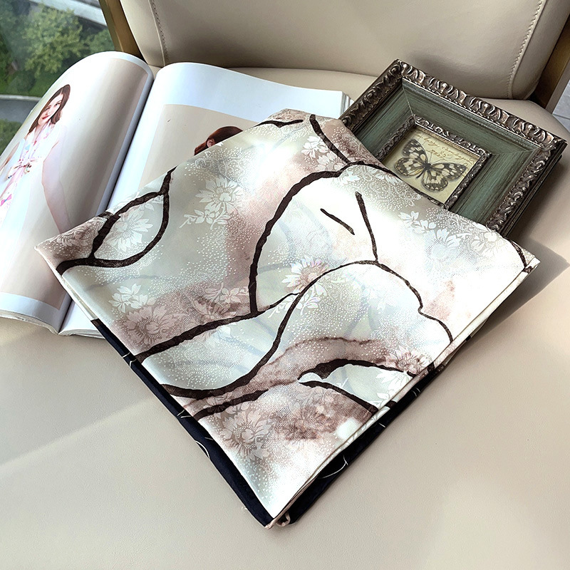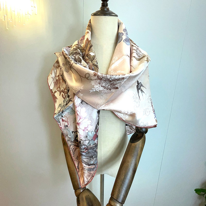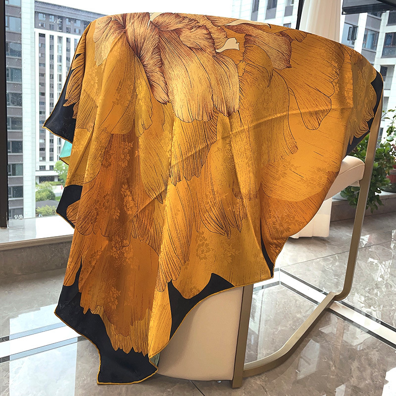 2025 봄 실크 양면 새틴 꽃 장미 큰 사각형 높은 상품 엔티티 도매 항주 실크 라이브 스카프 여성스토어 가기