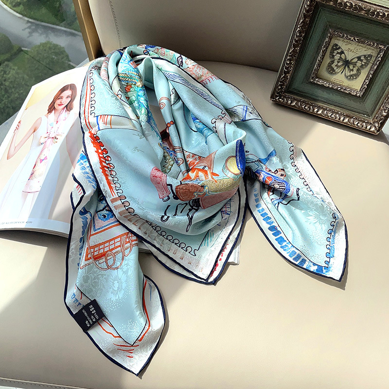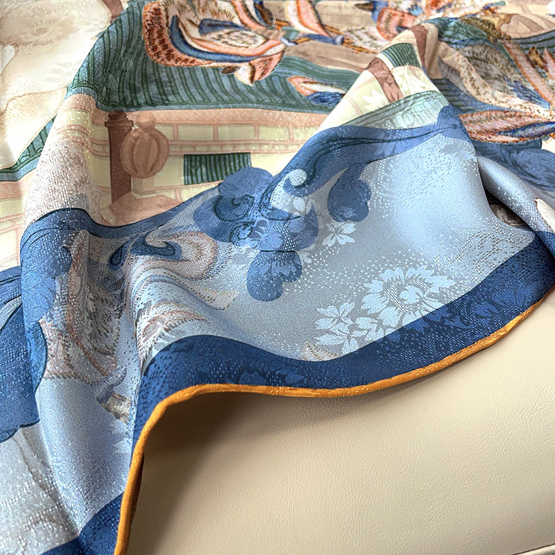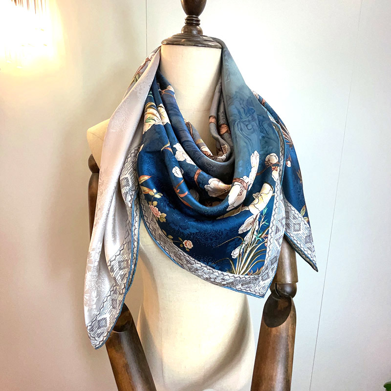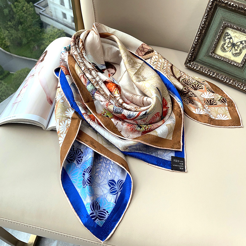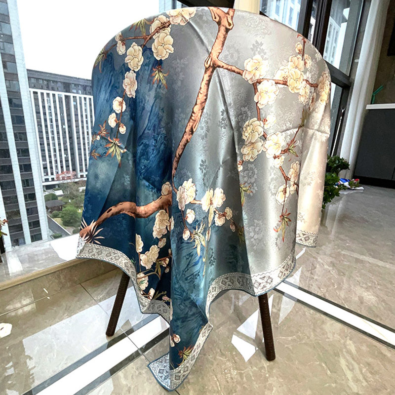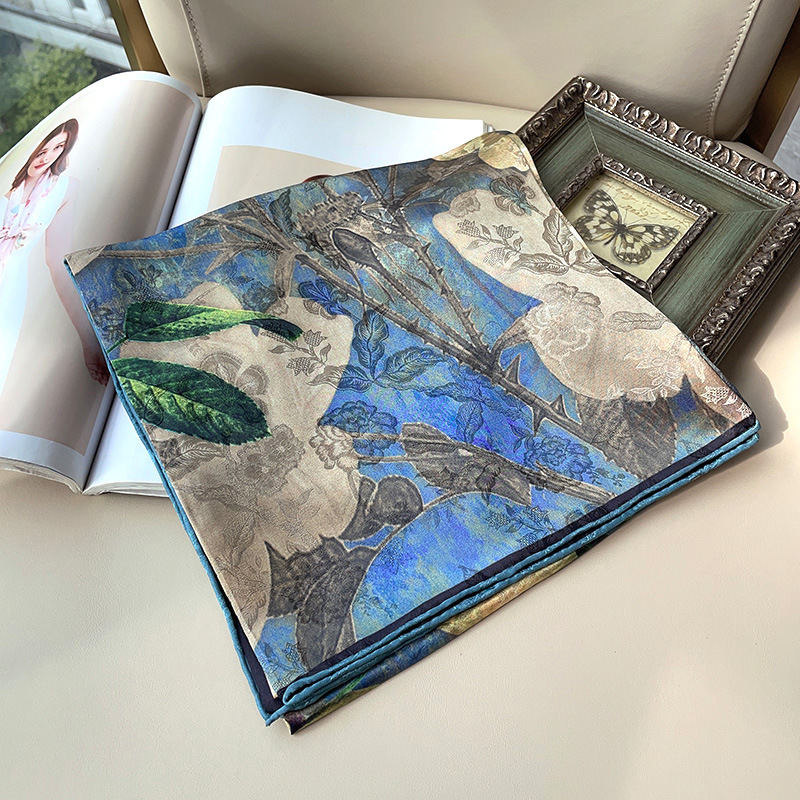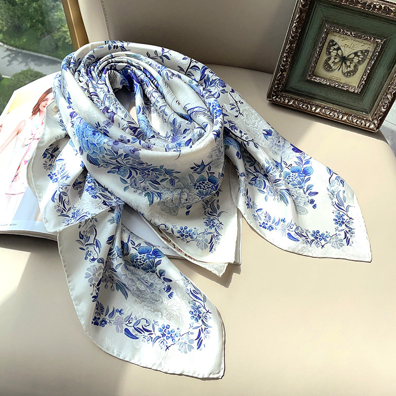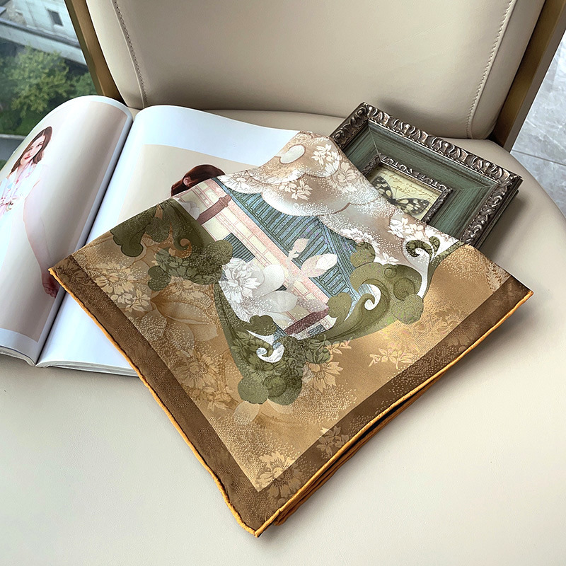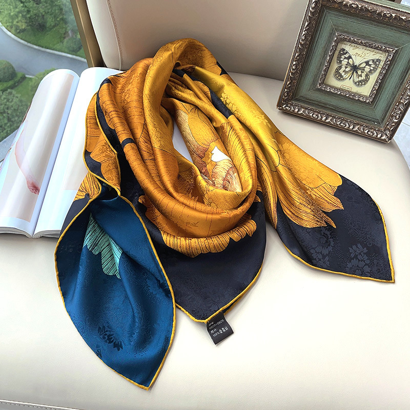 2025 봄 실크 양면 새틴 꽃 장미 큰 사각형 높은 상품 엔티티 도매 항주 실크 라이브 스카프 여성스토어 가기