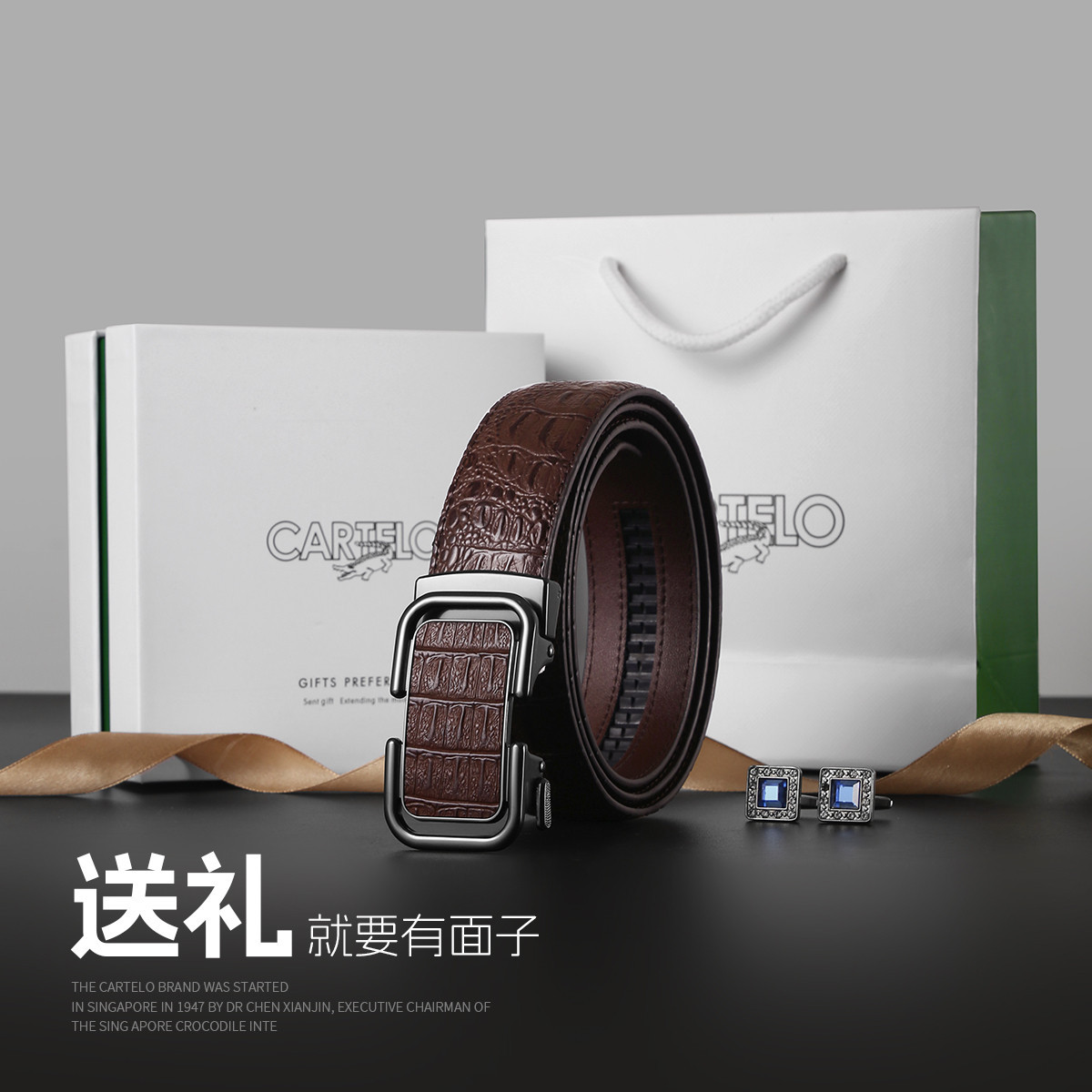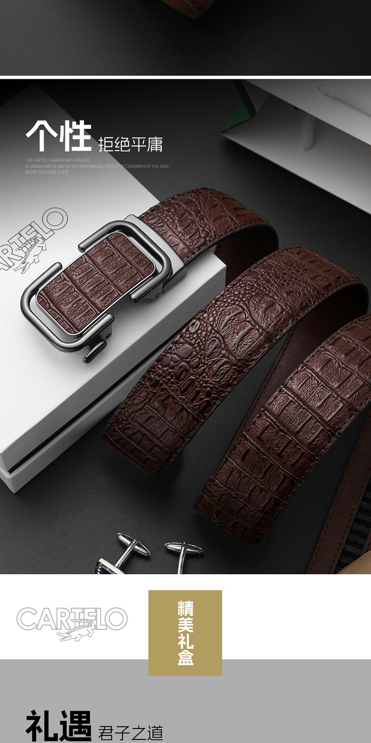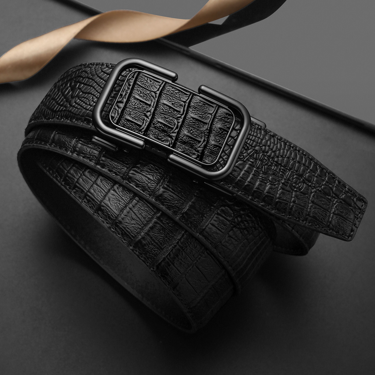 [발렌타인 데이 선물] 남자 자동 버클 벨트 패션 개성 악어 패턴 벨트 캐주얼 올 매치 벨트