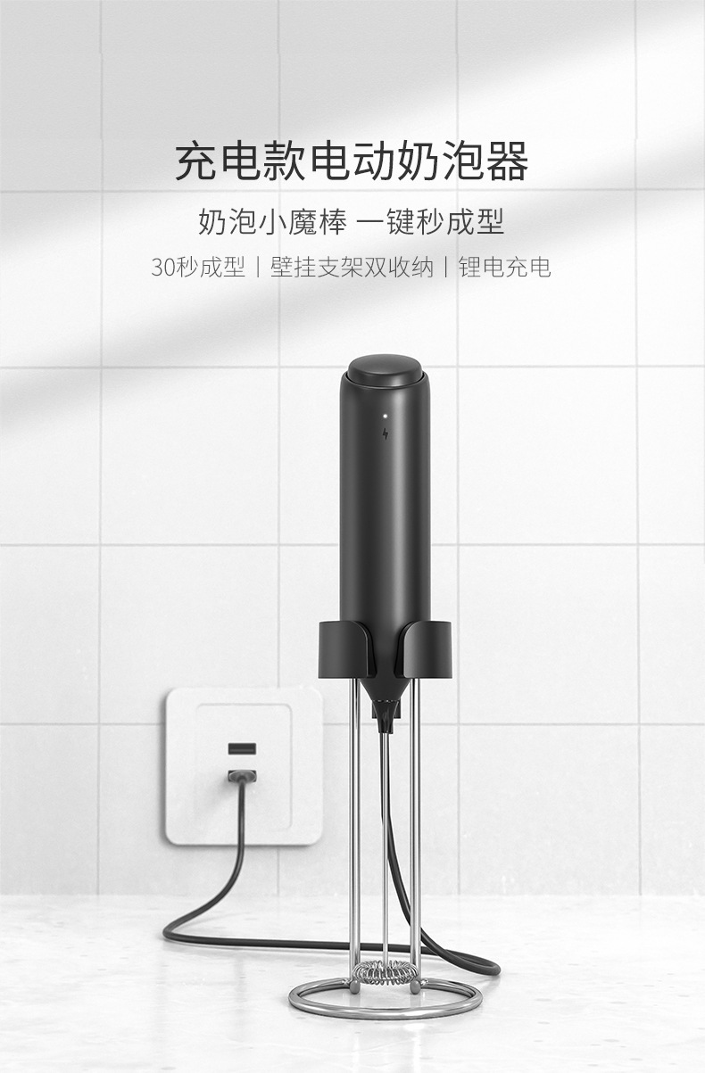 • C2 모델 [리튬 배터리 충전 모델] 블랙/ABS 플라스틱 소재/전동 우유 거품기 + 보관 브래킷 + TypeC 충전 케이블