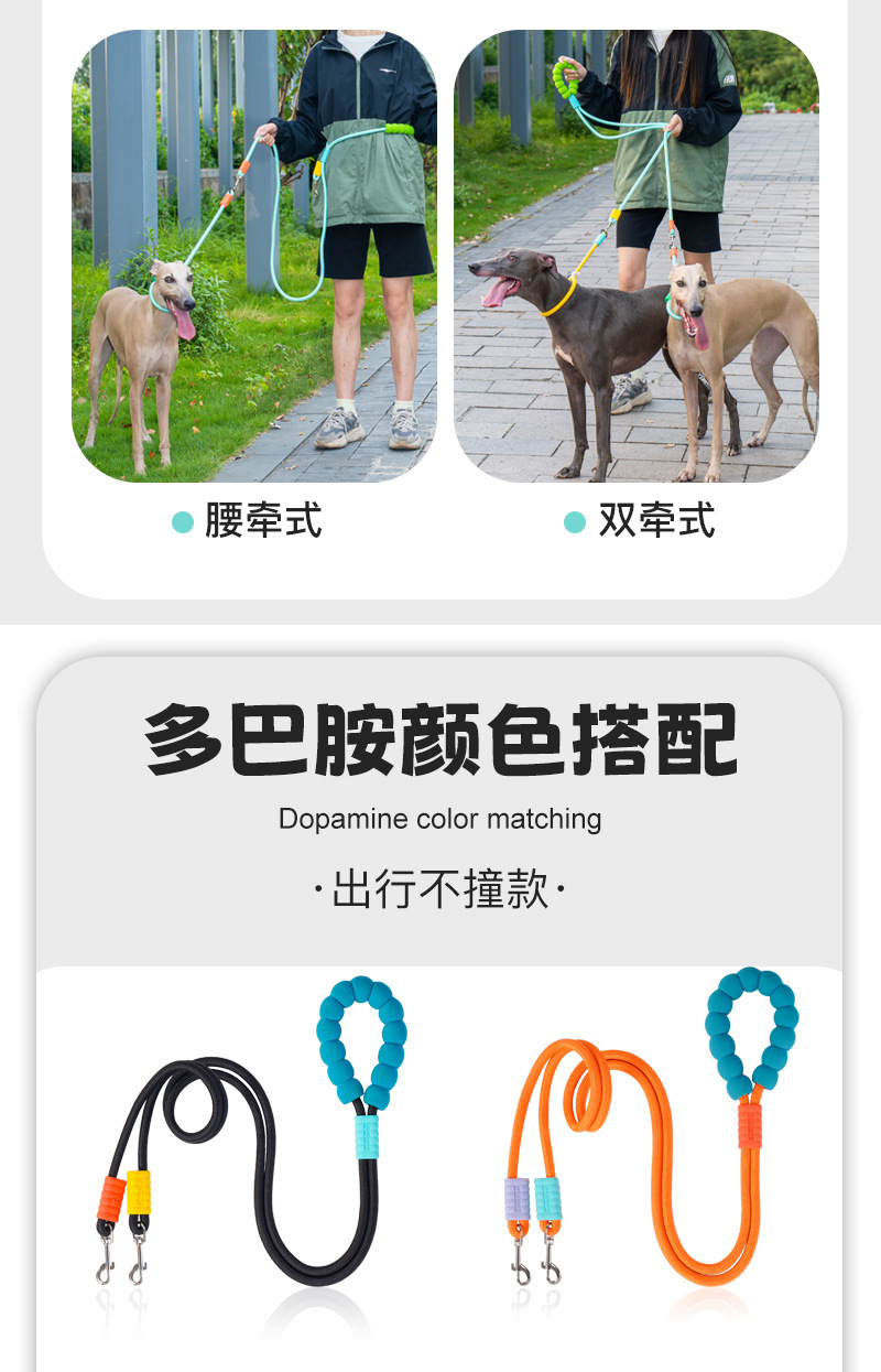 국경 간 새로운 양방향 견인 로프 경쟁 등급 p 로프 개 산책 로프 방폭형 칼라 견인 로프 개 용품 도매스토어 가기