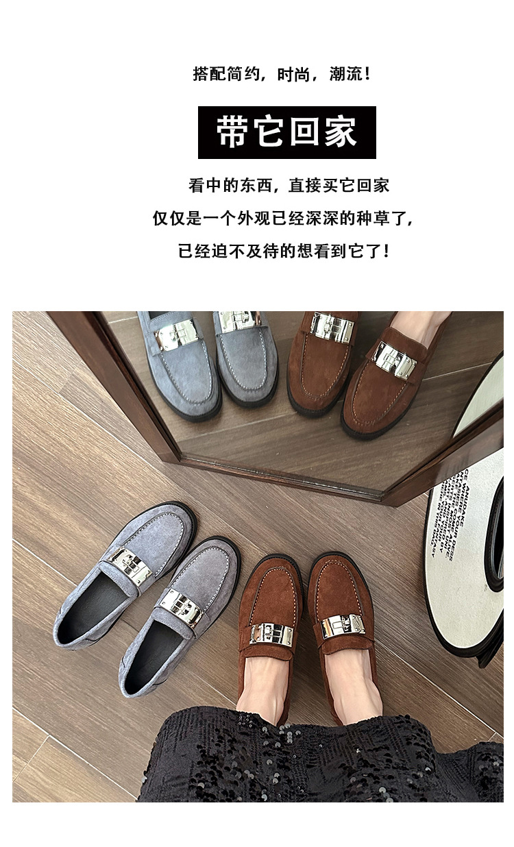 빅사이즈 슬립온 잠금장치 로퍼 여성용 2025 영국풍 라운드 토 스웨이드 가죽 구두 하이힐 가볍고 편안함스토어 가기