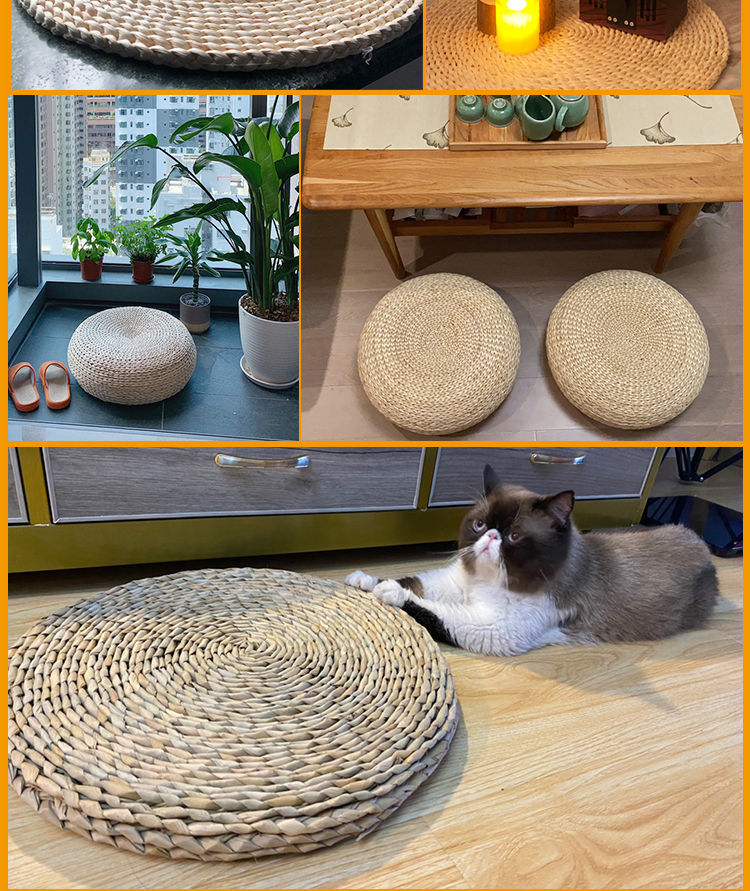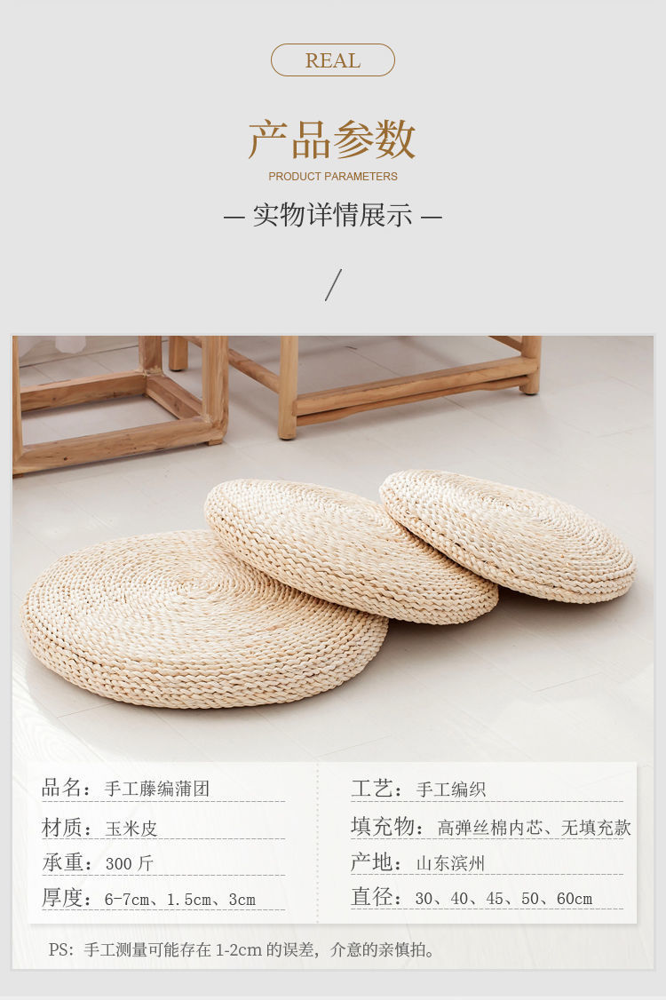 밀짚 이불 옥수수 허 짠 쿠션 타타미 바닥 푸시 온 무릎 부두 명상 일본 스타일 발코니 푸시 온스토어 가기