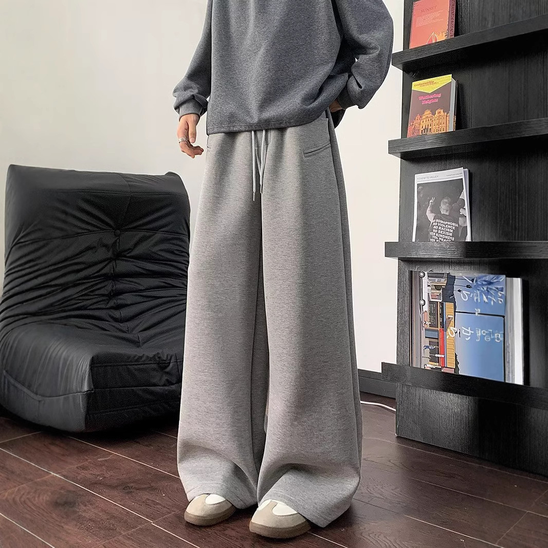 2025 무거운 무게 넓은 다리 바지 남성 학생 봄과 가을 미국 스타일 레트로 스포츠 느슨한 스트레이트 바지