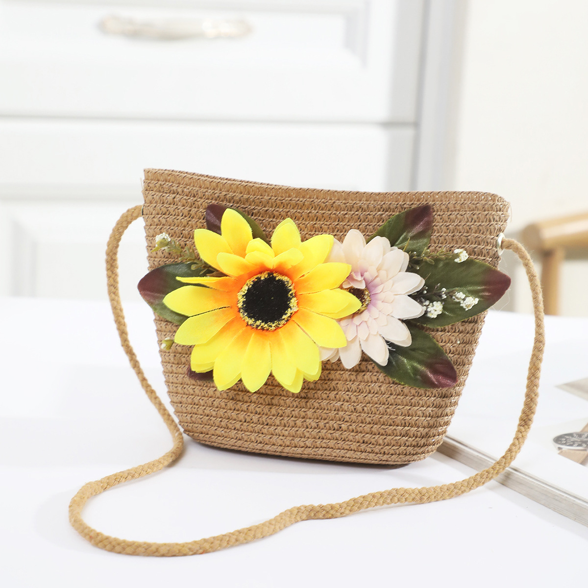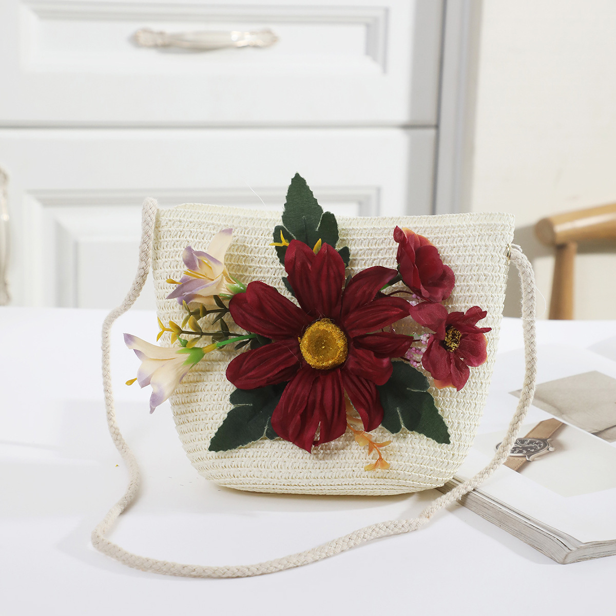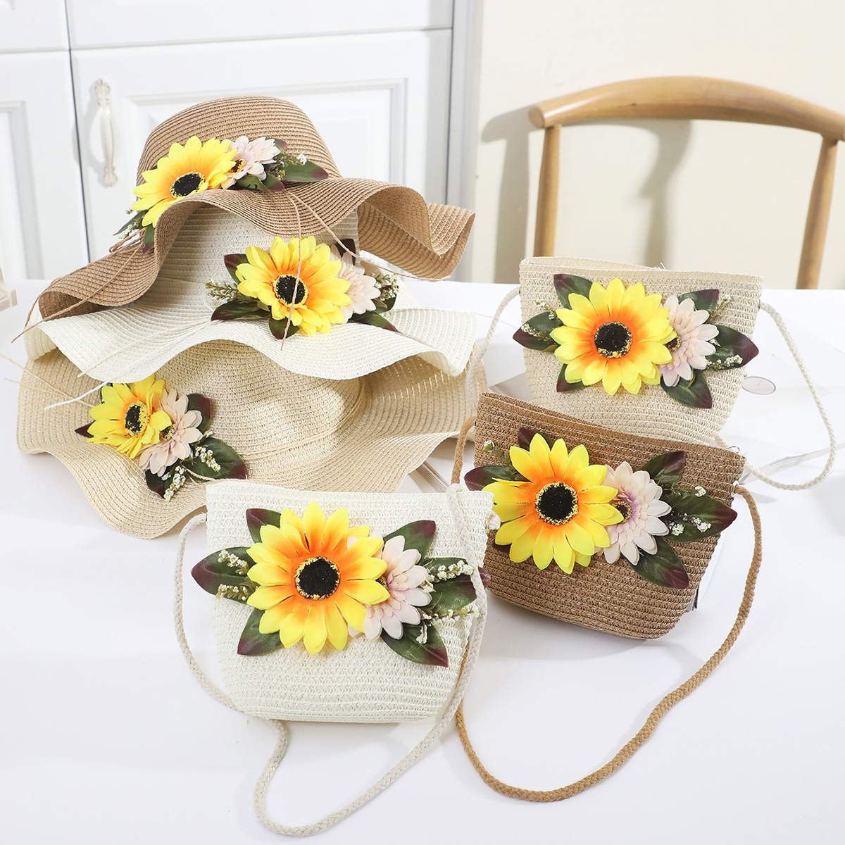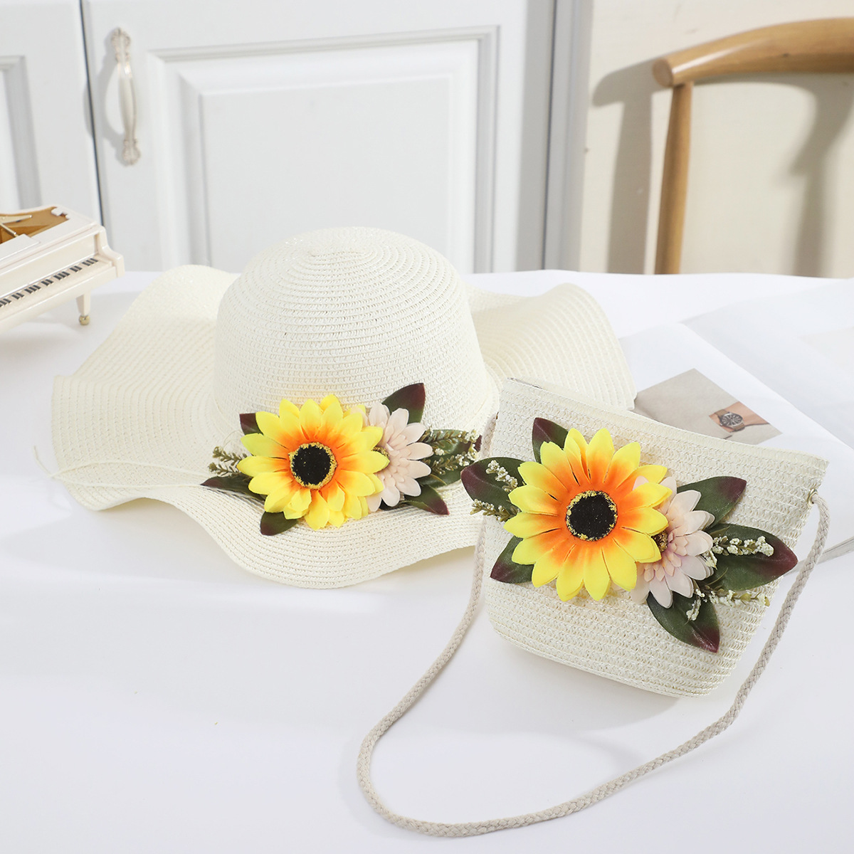 국경 간 여름 여성의 햇빛 밀짚 모자 휴대 전화 세트 우아한 여인의 큰 모자 휴가 밀짚 모자스토어 가기