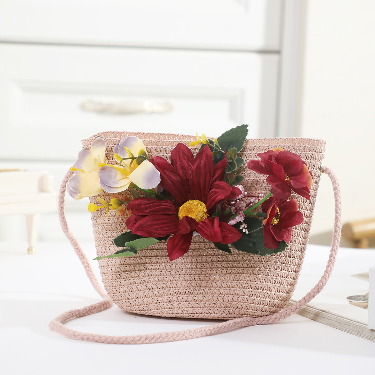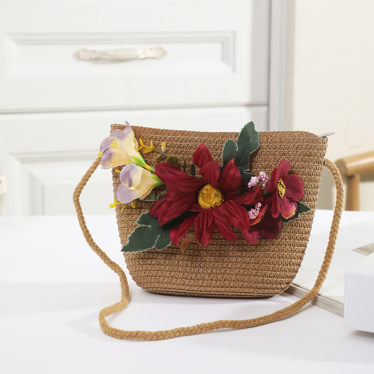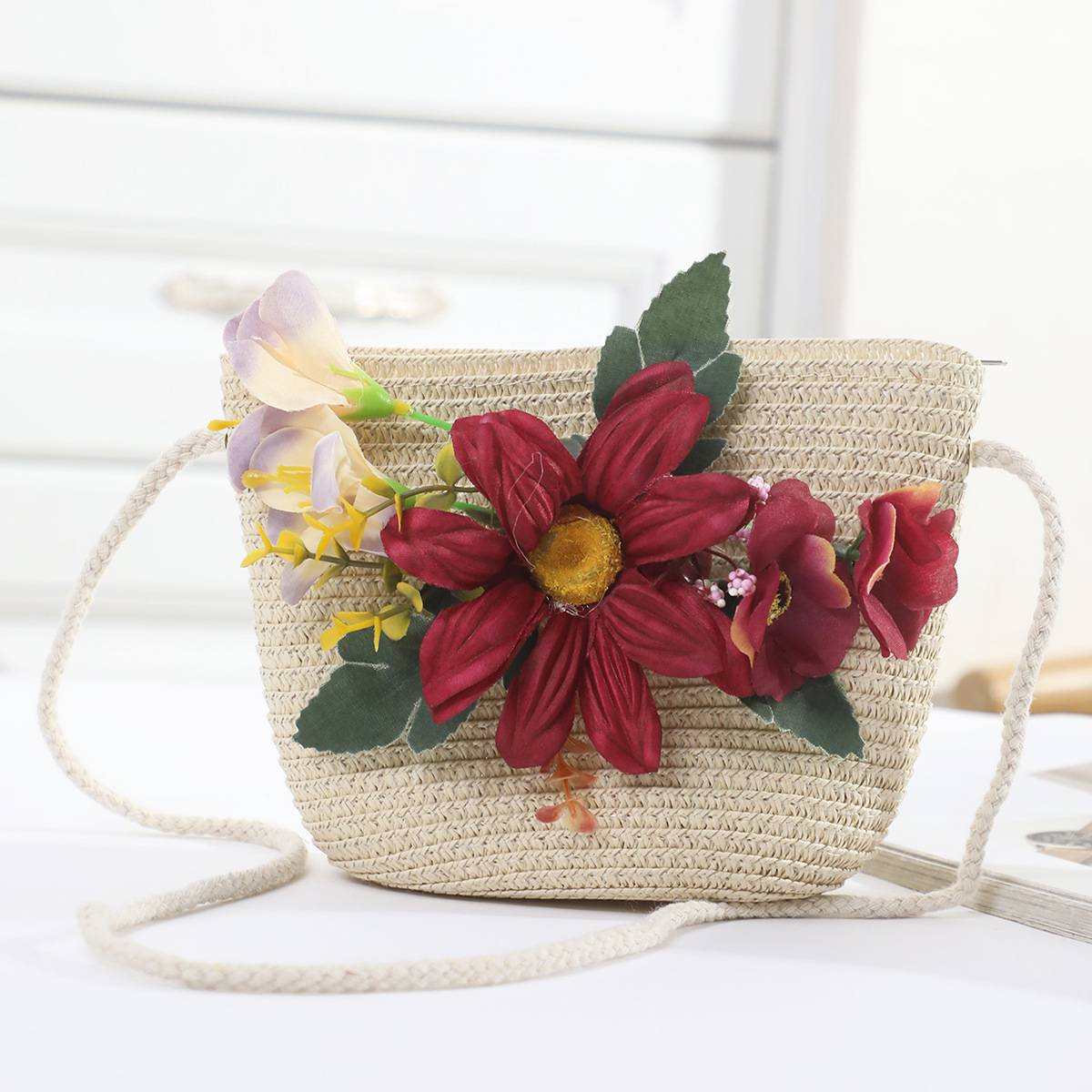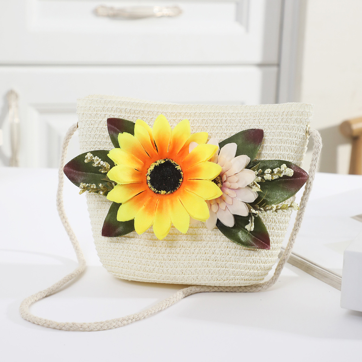 국경 간 여름 여성의 햇빛 밀짚 모자 휴대 전화 세트 우아한 여인의 큰 모자 휴가 밀짚 모자스토어 가기