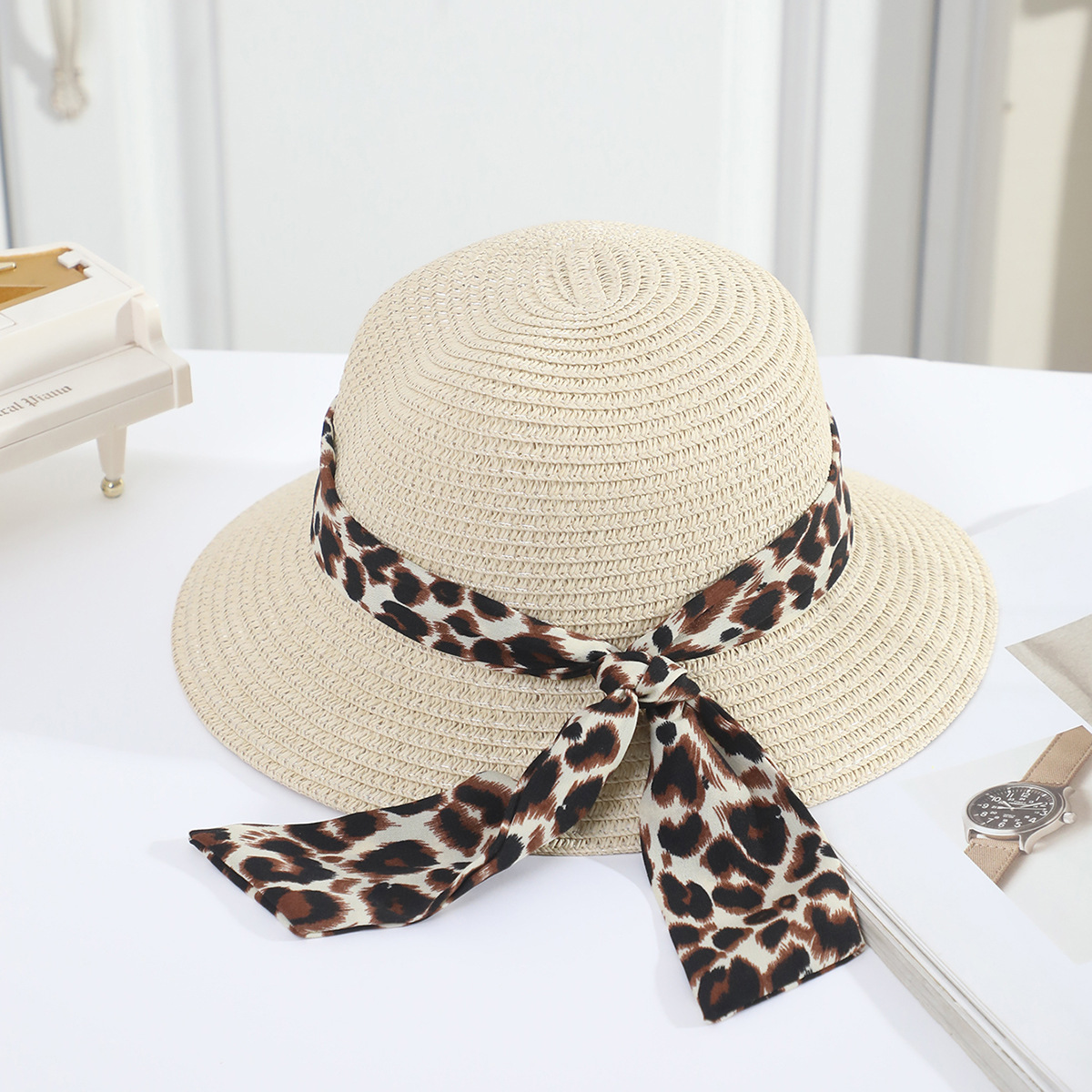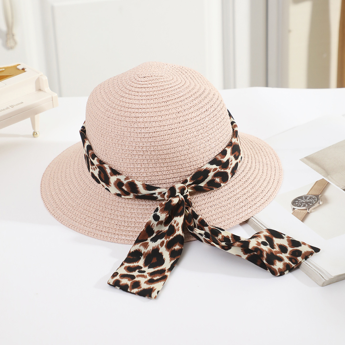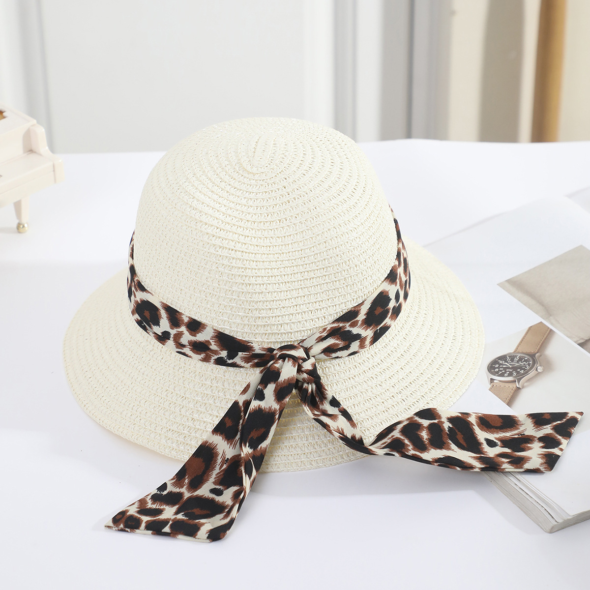 • 어린이 표범 무늬 리본 분지 모자 쌀