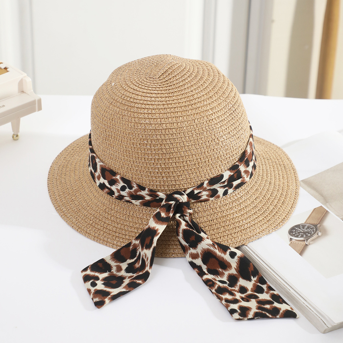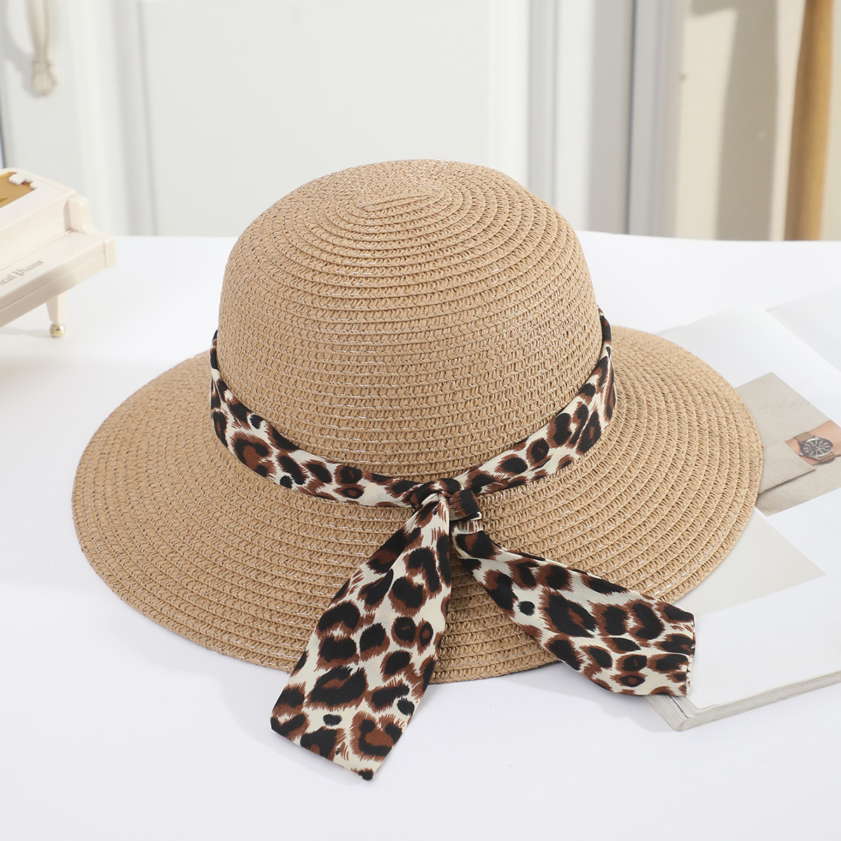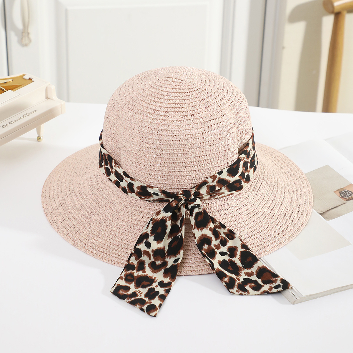 • 어린이 표범 무늬 리본 분지 모자 쌀