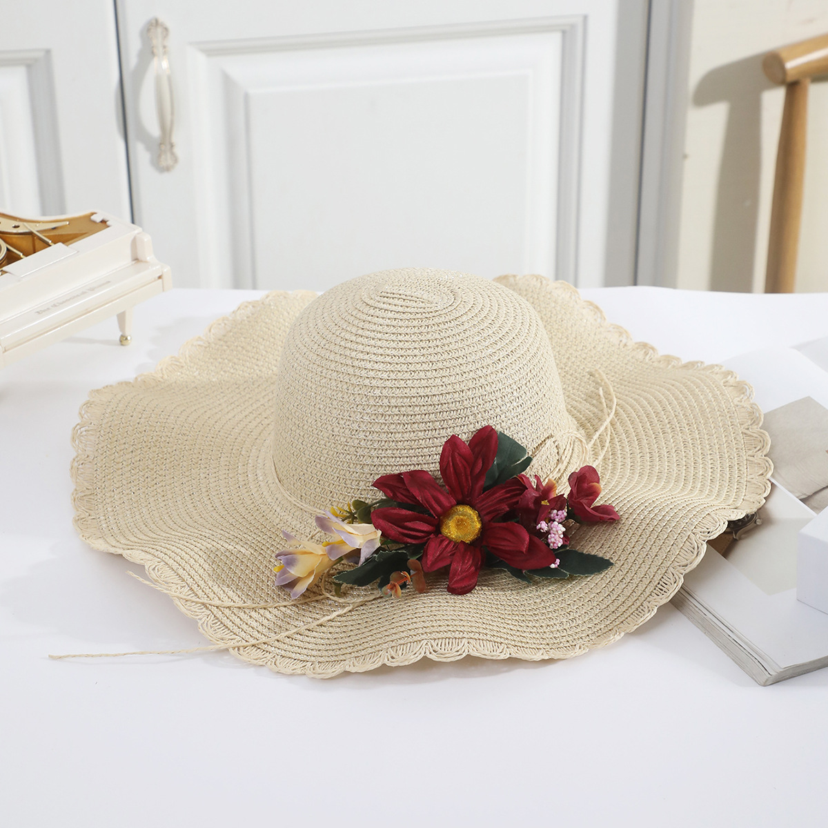 • 성인 부르고뉴 인공 꽃 연잎 모자 커피