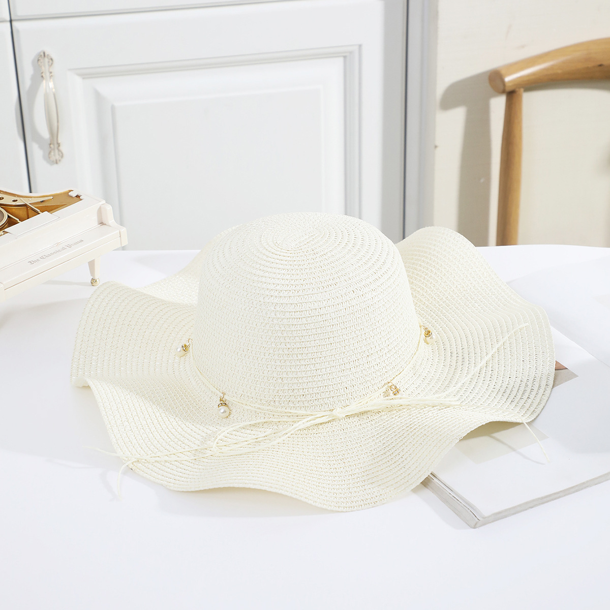 • 5 진주 무한 성인 밀짚모자 세트 화이트