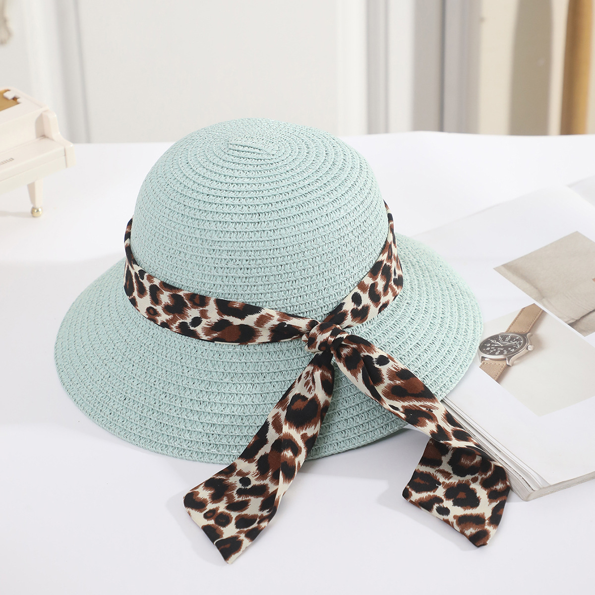 • 어린이 표범 무늬 리본 분지 모자 녹색