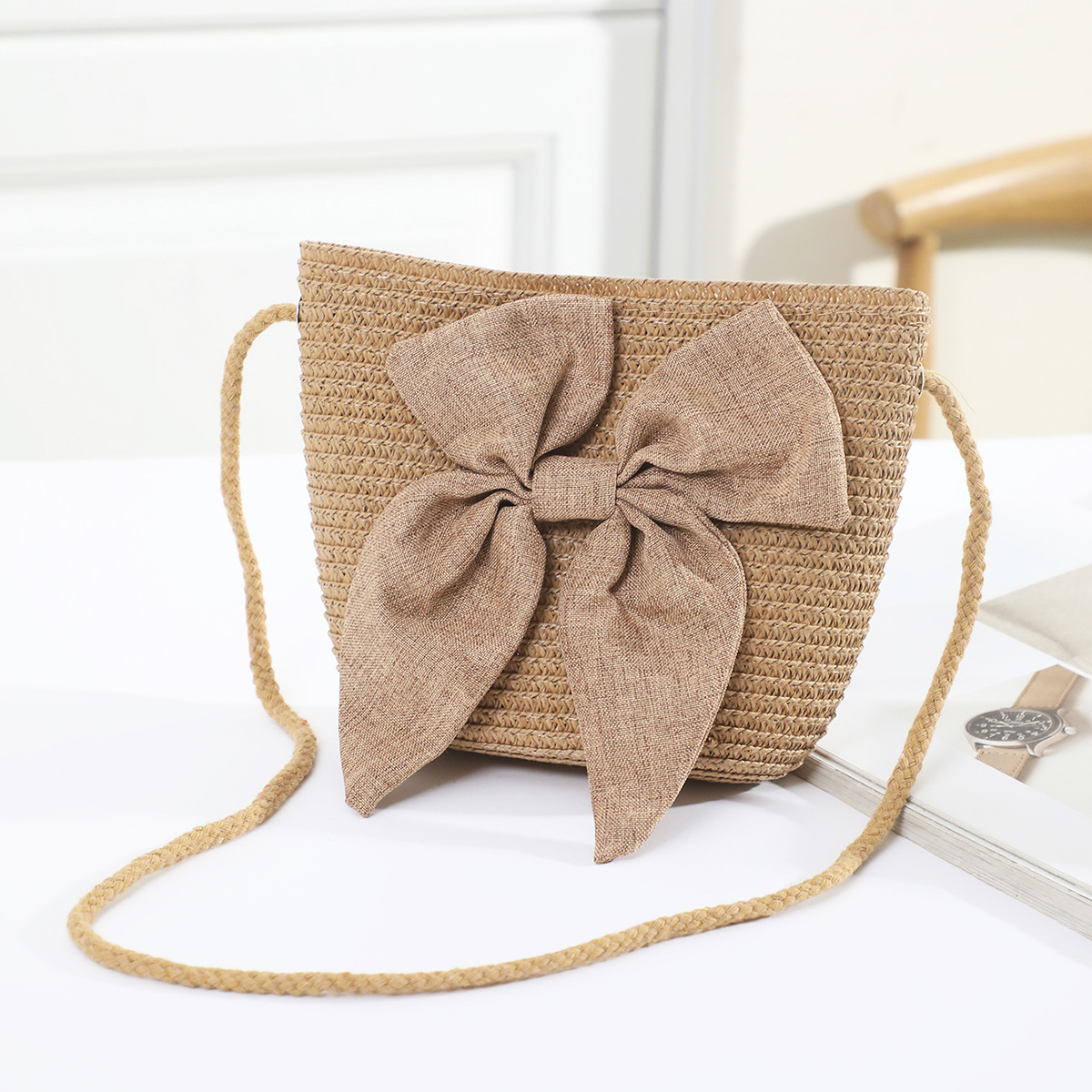 • 성인 카키색 리본 모자 세트 쌀