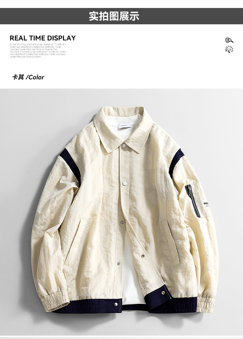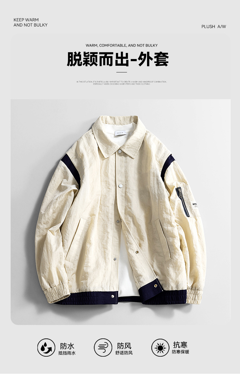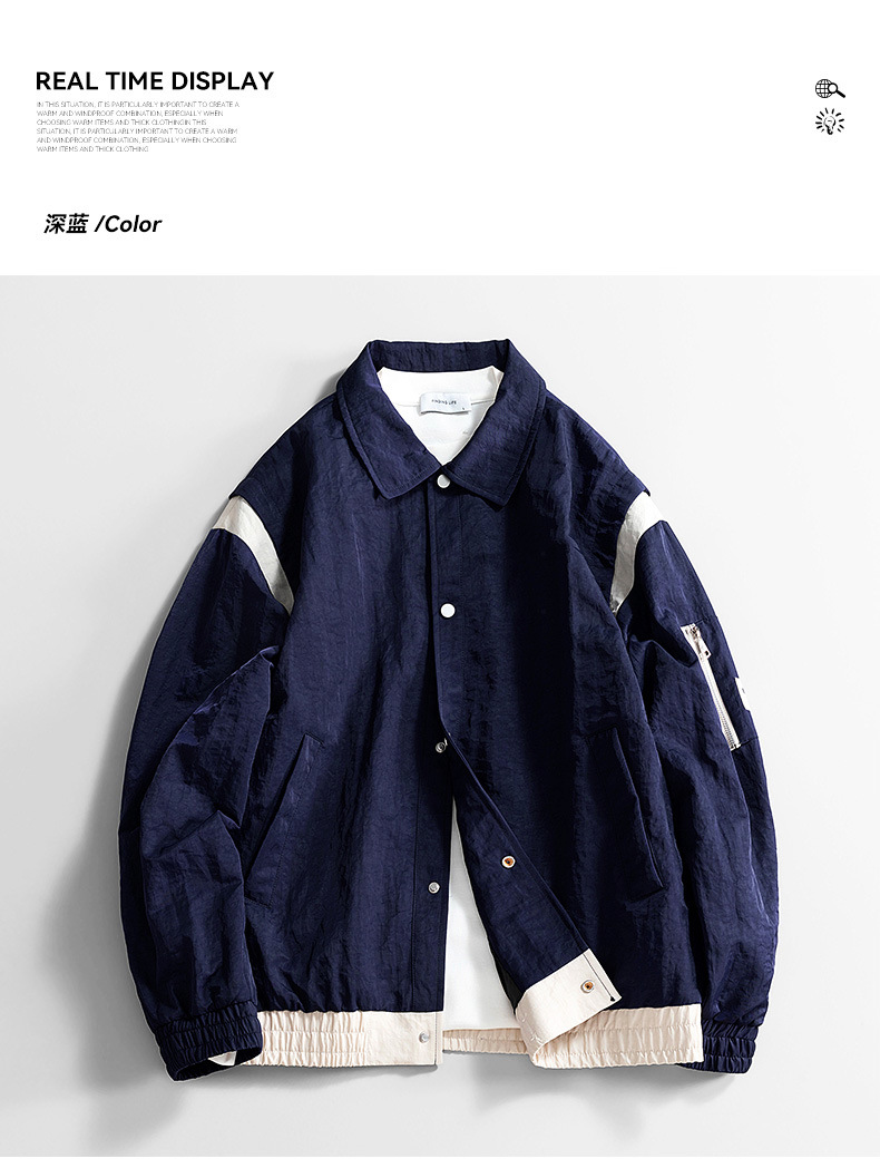 봄과 가을 트렌디 한 홍콩 스타일 남성 잘 생긴 패치 백 스퀘어 칼라 재킷 뚱뚱한 남자 플러스 사이즈 느슨한 캐주얼 재킷스토어 가기