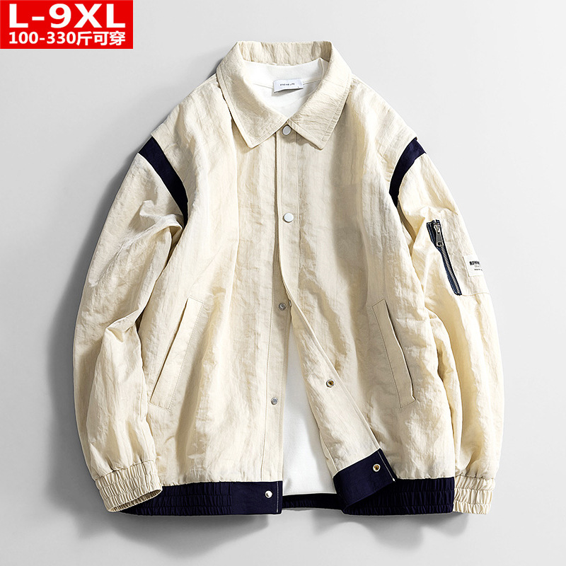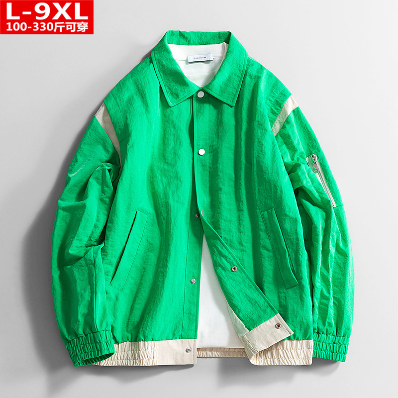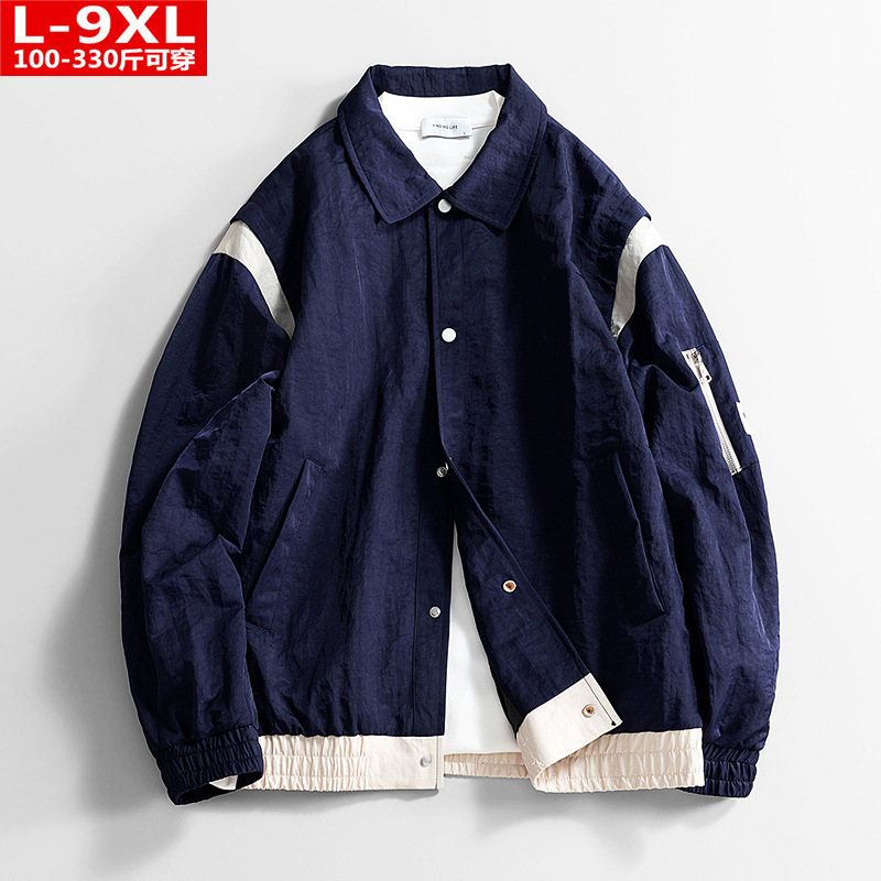 봄과 가을 트렌디 한 홍콩 스타일 남성 잘 생긴 패치 백 스퀘어 칼라 재킷 뚱뚱한 남자 플러스 사이즈 느슨한 캐주얼 재킷