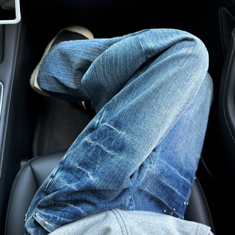 홍콩 스타일 트렌디 한 남자 여름 새로운 도착 2025 캐주얼 청바지 힙합 Ins 트렌디 하이 스트리트 스트레이트 바지 와이드 레그 바지스토어 가기