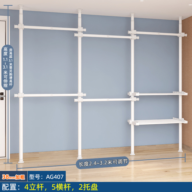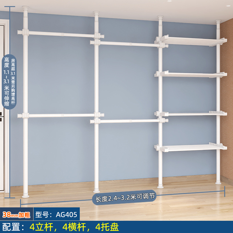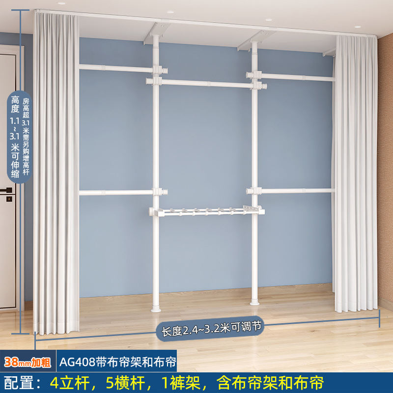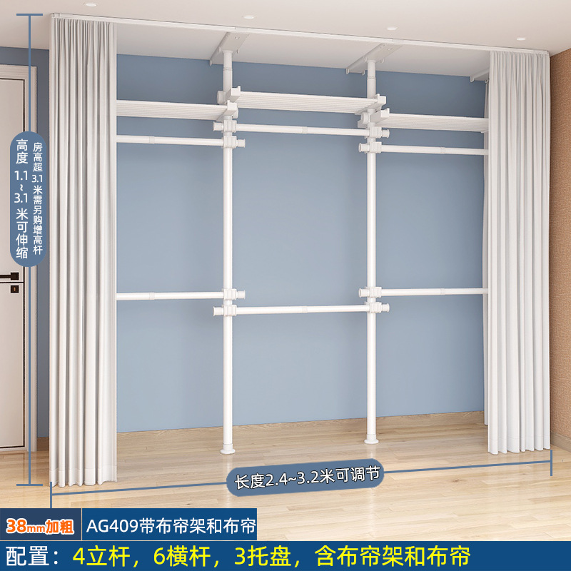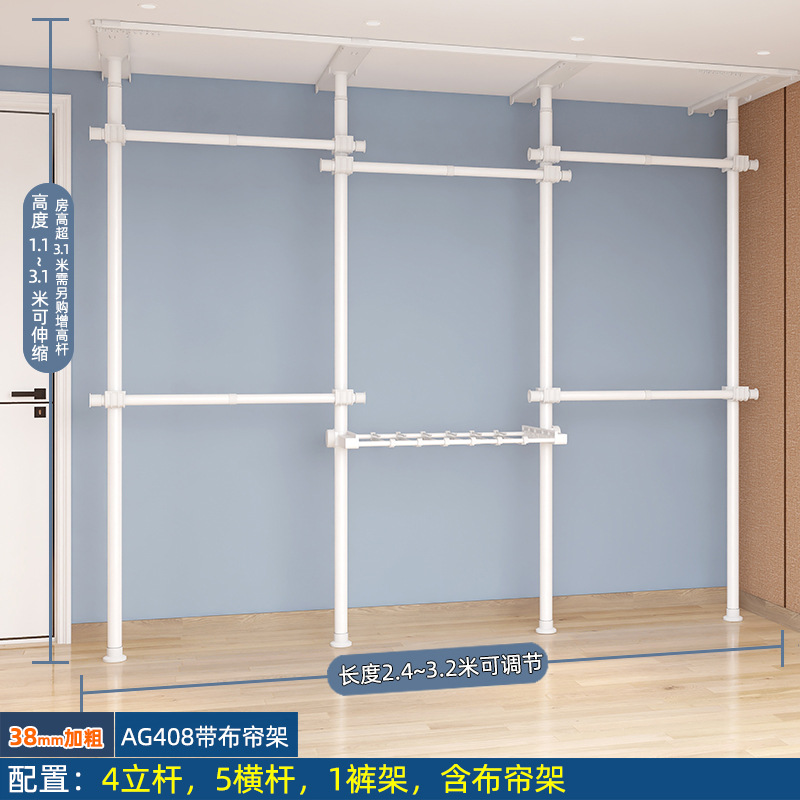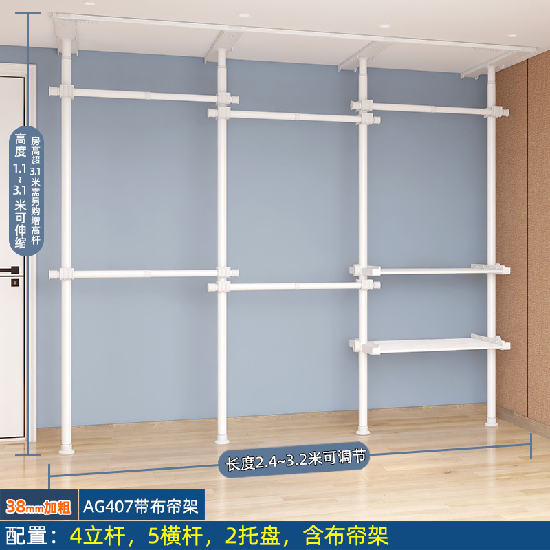38mm 바닥에서 천장까지 옷걸이 레일, 펀치 없는 침실 옷걸이, 접이식 간이 옷장 옷걸이스토어 가기