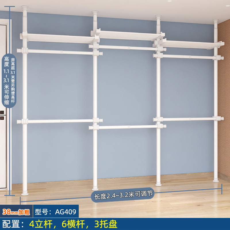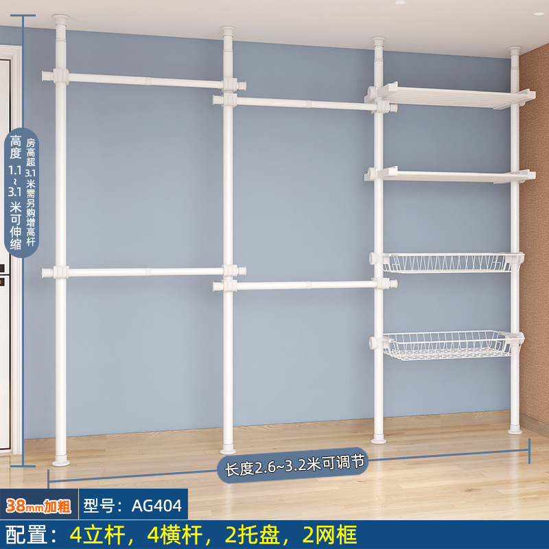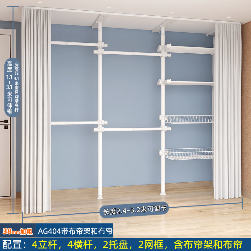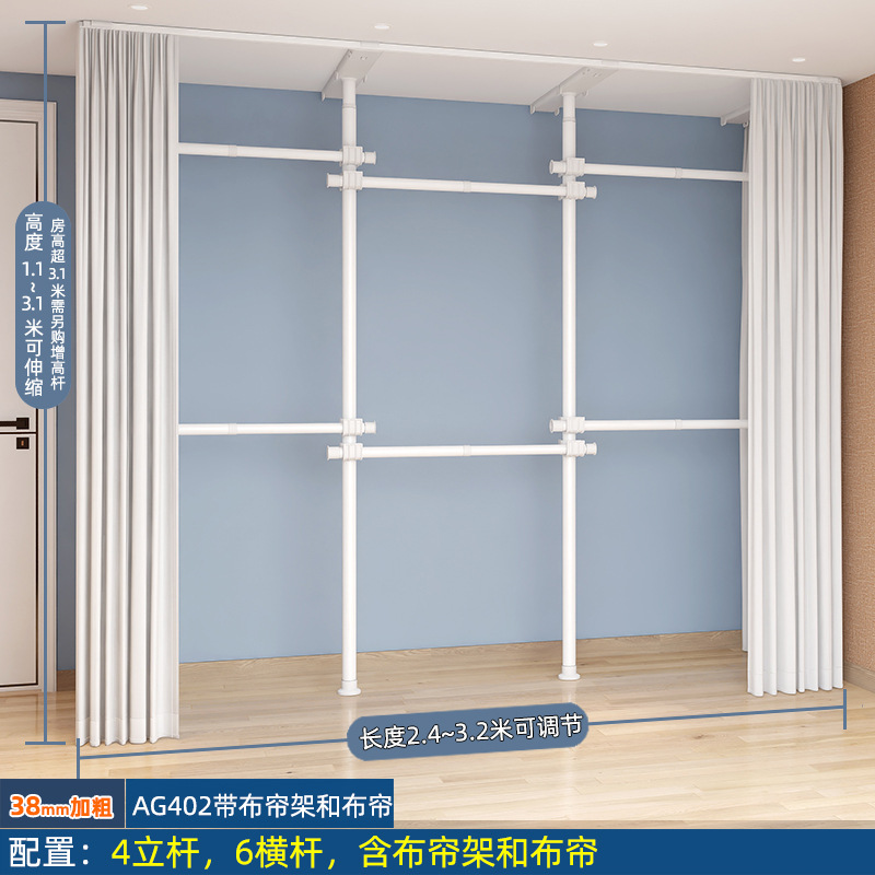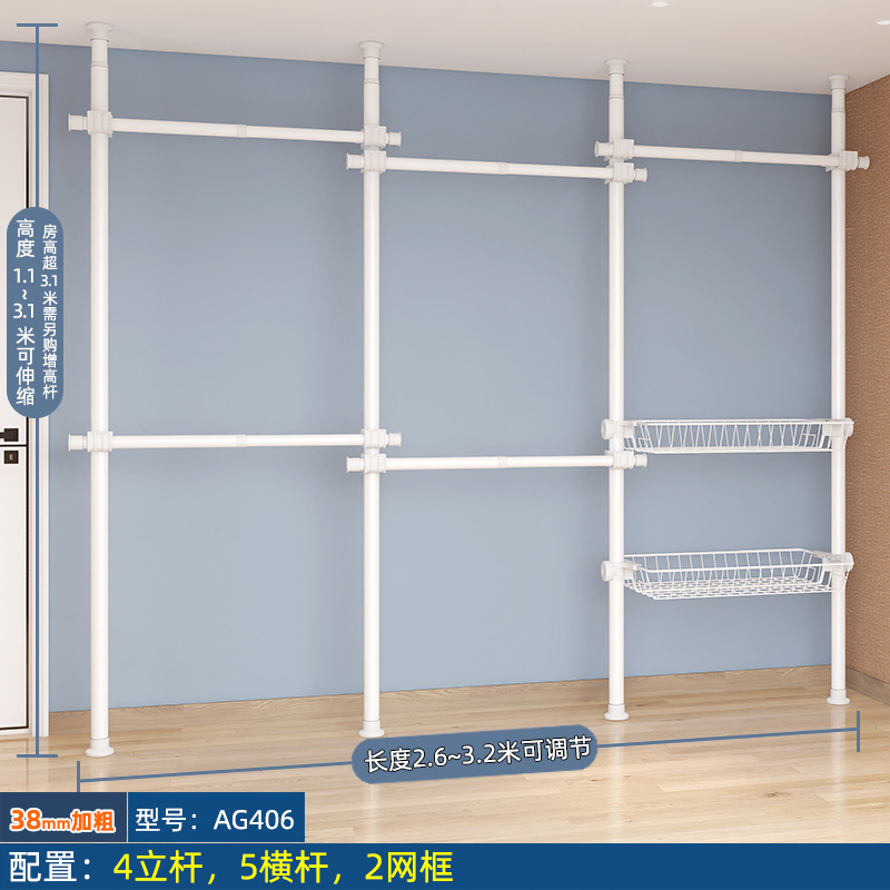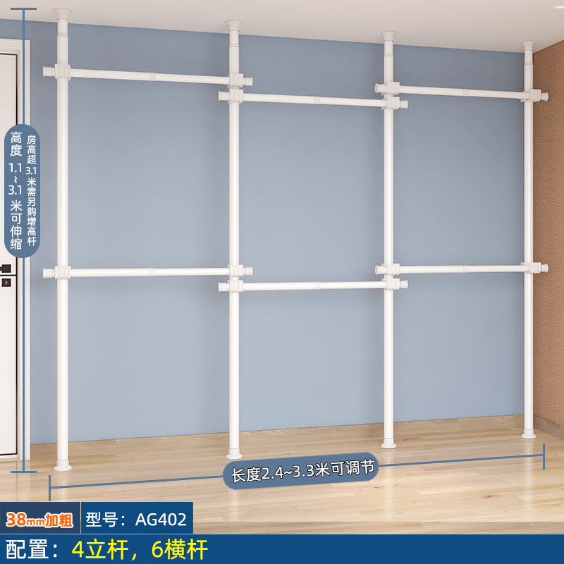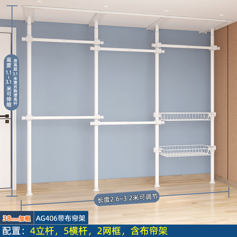 38mm 바닥에서 천장까지 옷걸이 레일, 펀치 없는 침실 옷걸이, 접이식 간이 옷장 옷걸이스토어 가기