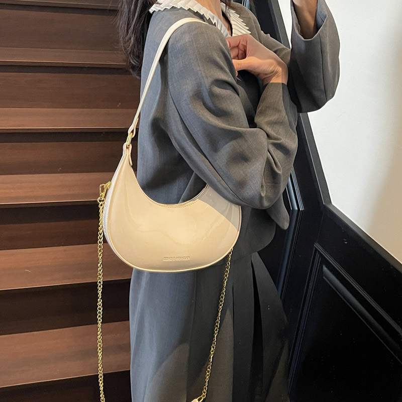 프랑스 틈새 하이 엔드 정제 된 여성 가방 2025 새로운 도착 밝은 올매치 유행 간단한 어깨 가방 겨드랑이 여성용 가방스토어 가기