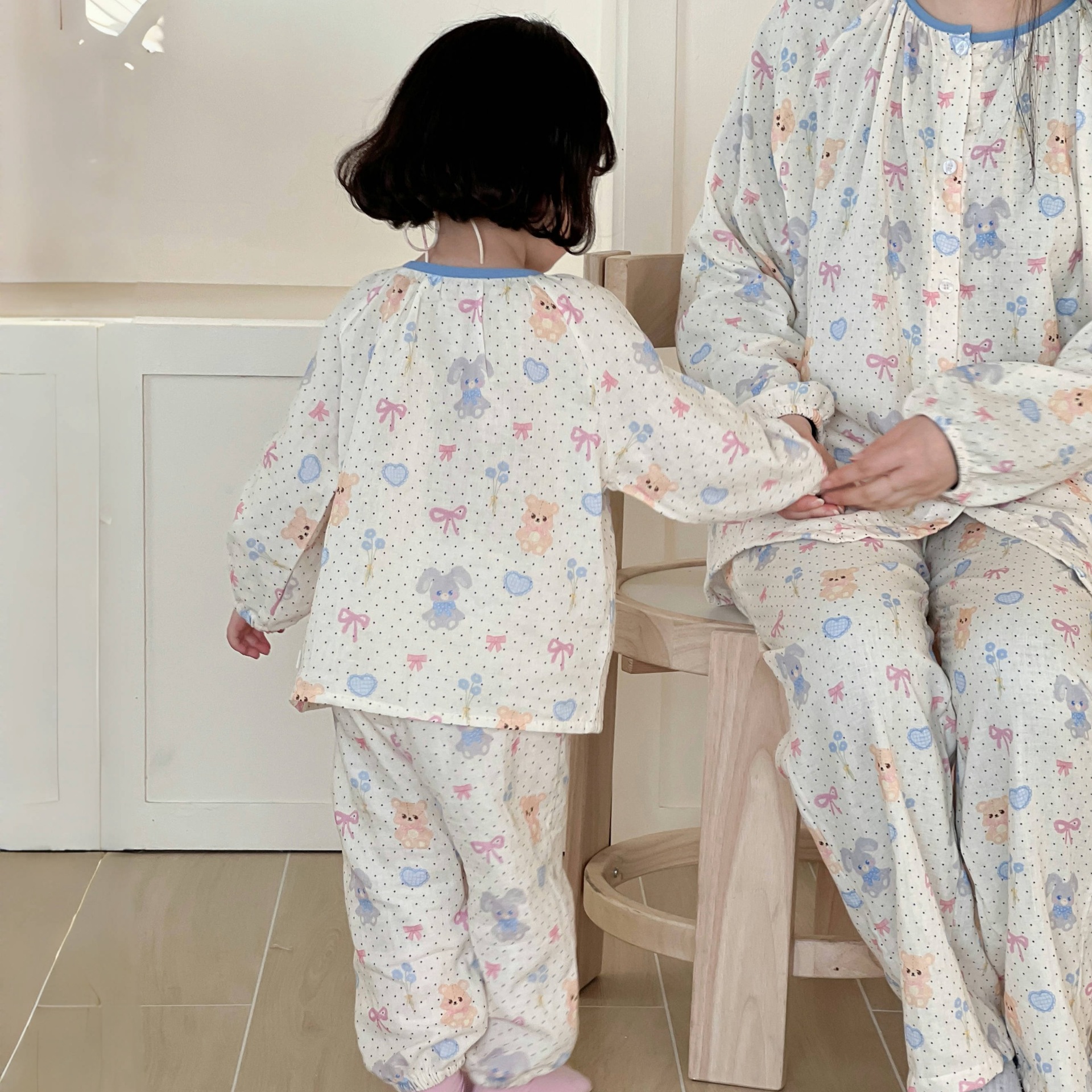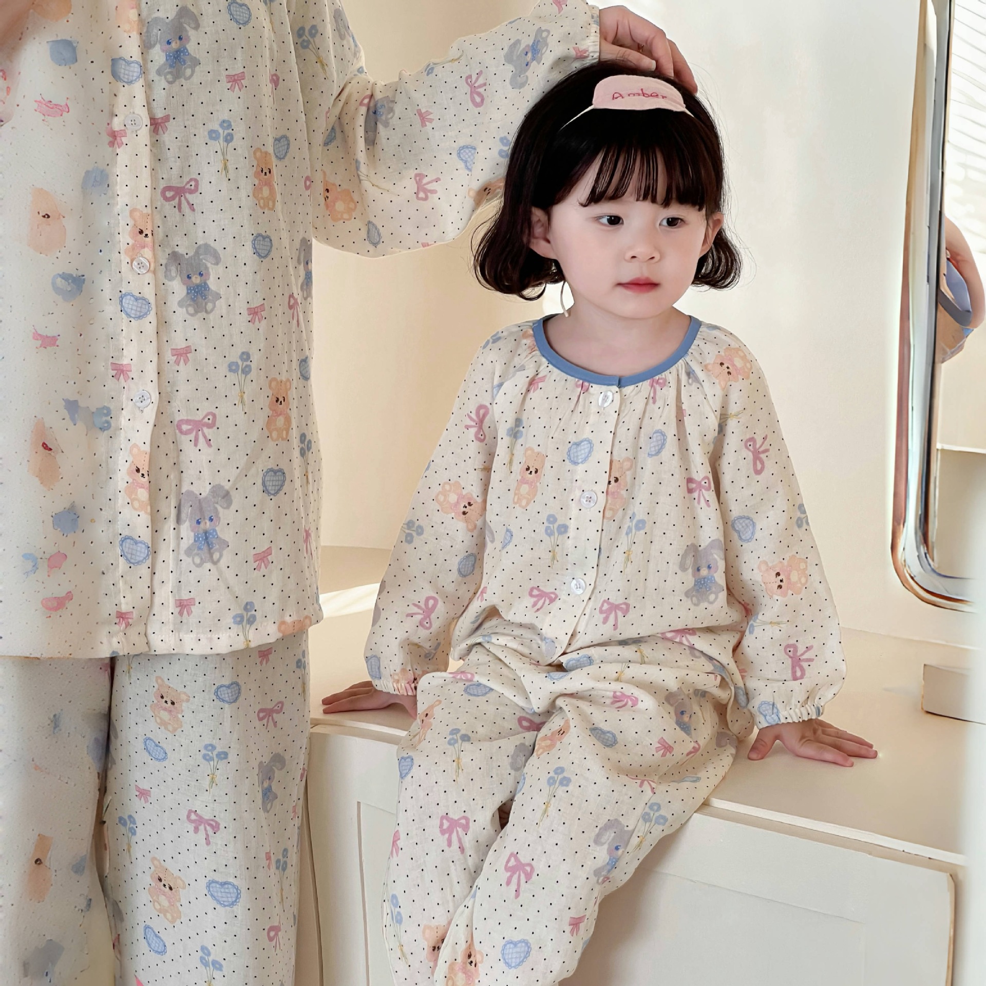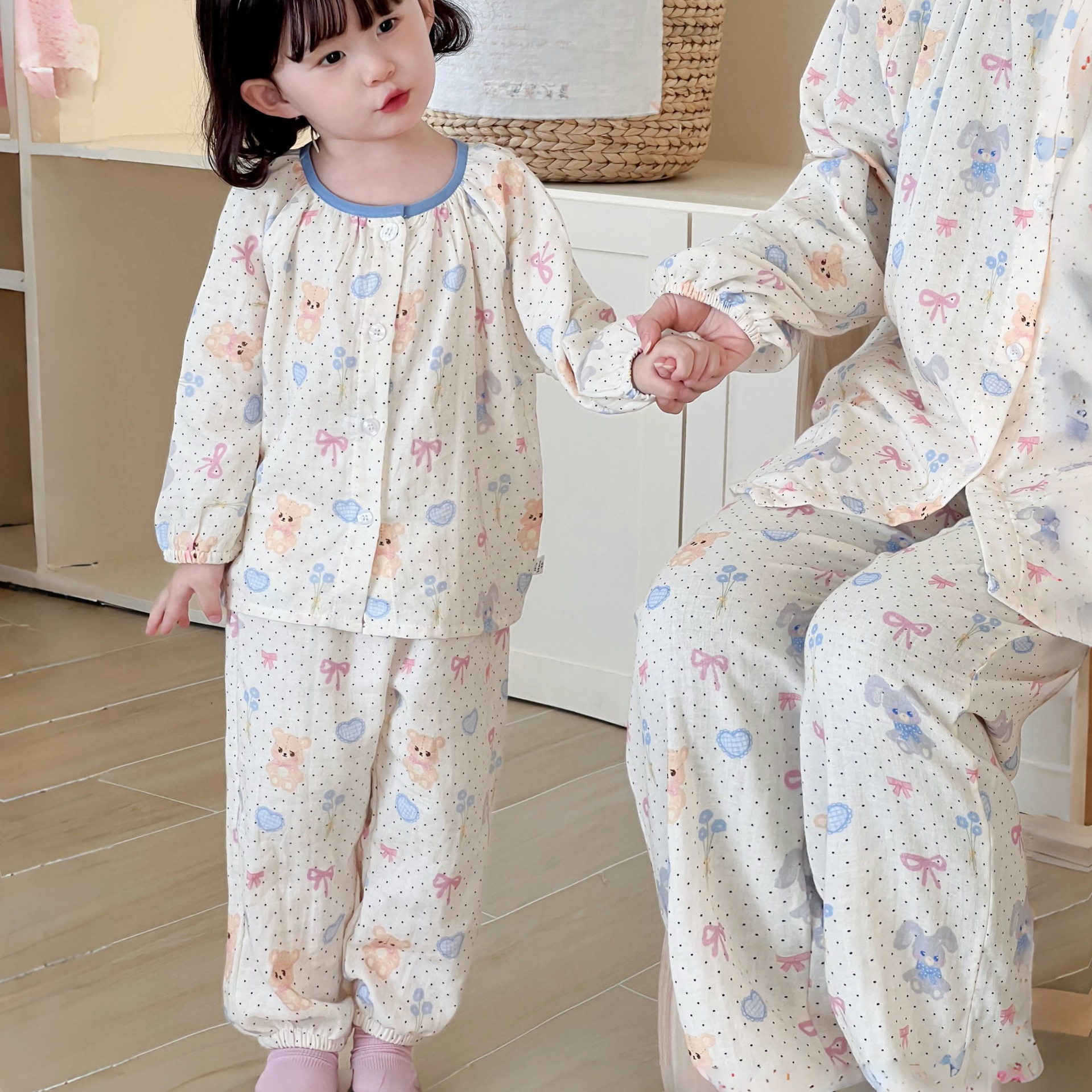 부모-자식 가정 의류 2025 어린이 봄, 여름 면사 만화 가정 의류 어린이 잠옷 잠옷 부모-자식 세트