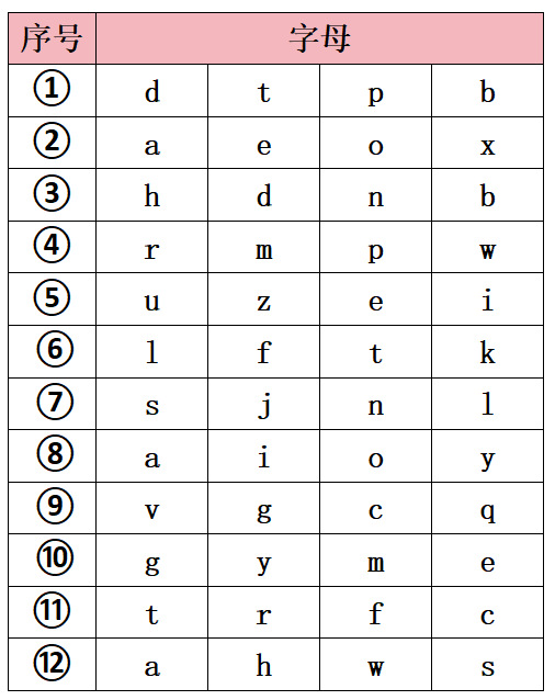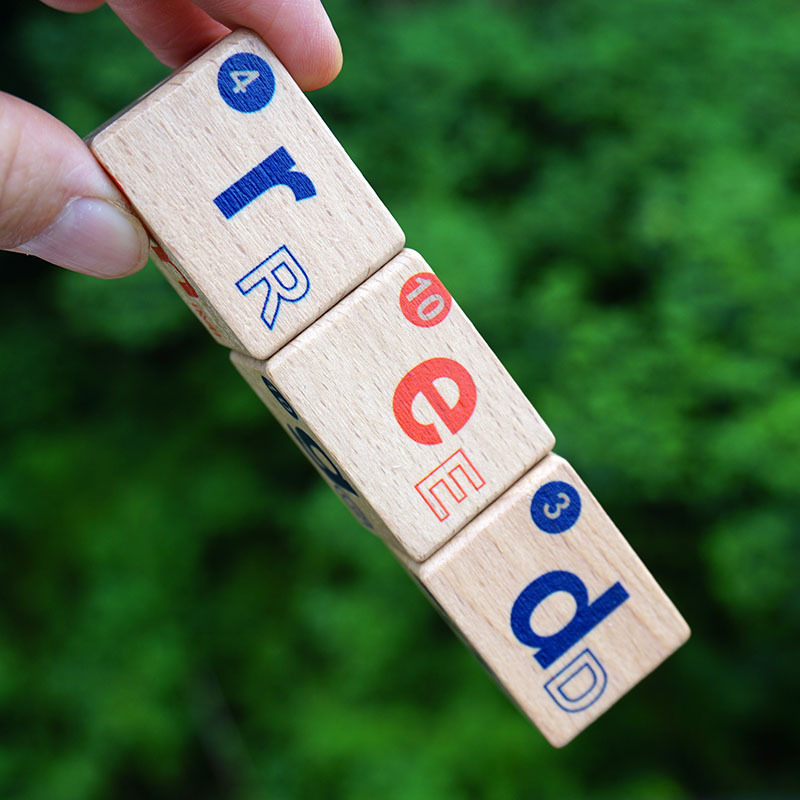 【配置】一套12个积木,每个积木有4个面是印有英文字母的。