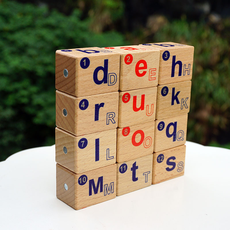 자석 영어 알파벳 빌딩 블록 어린이 천연 철자 단어 연습 교육 보조 단단한 너도밤 나무 12 세트