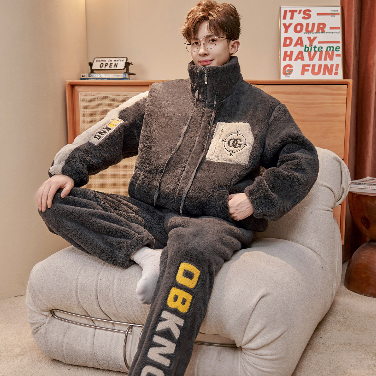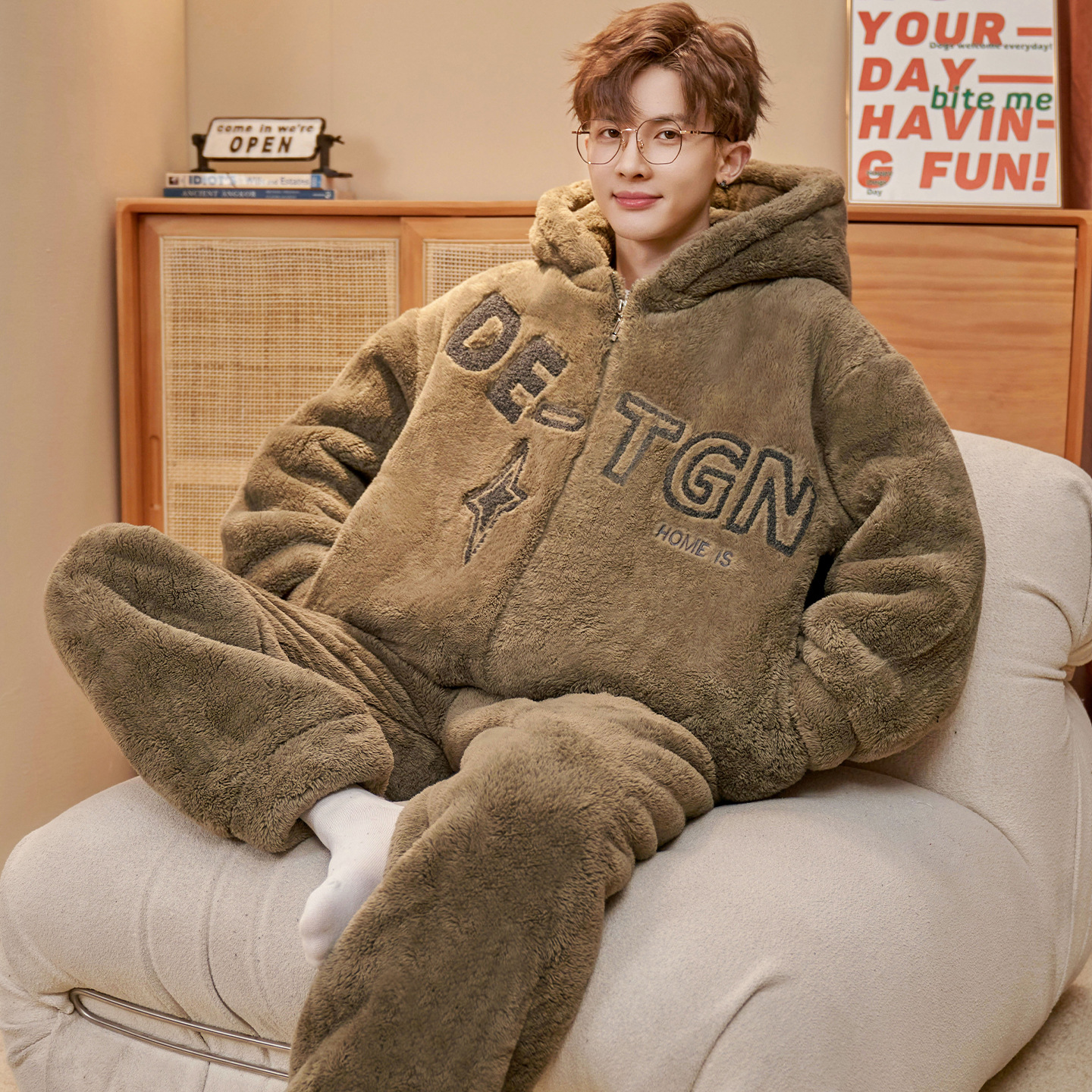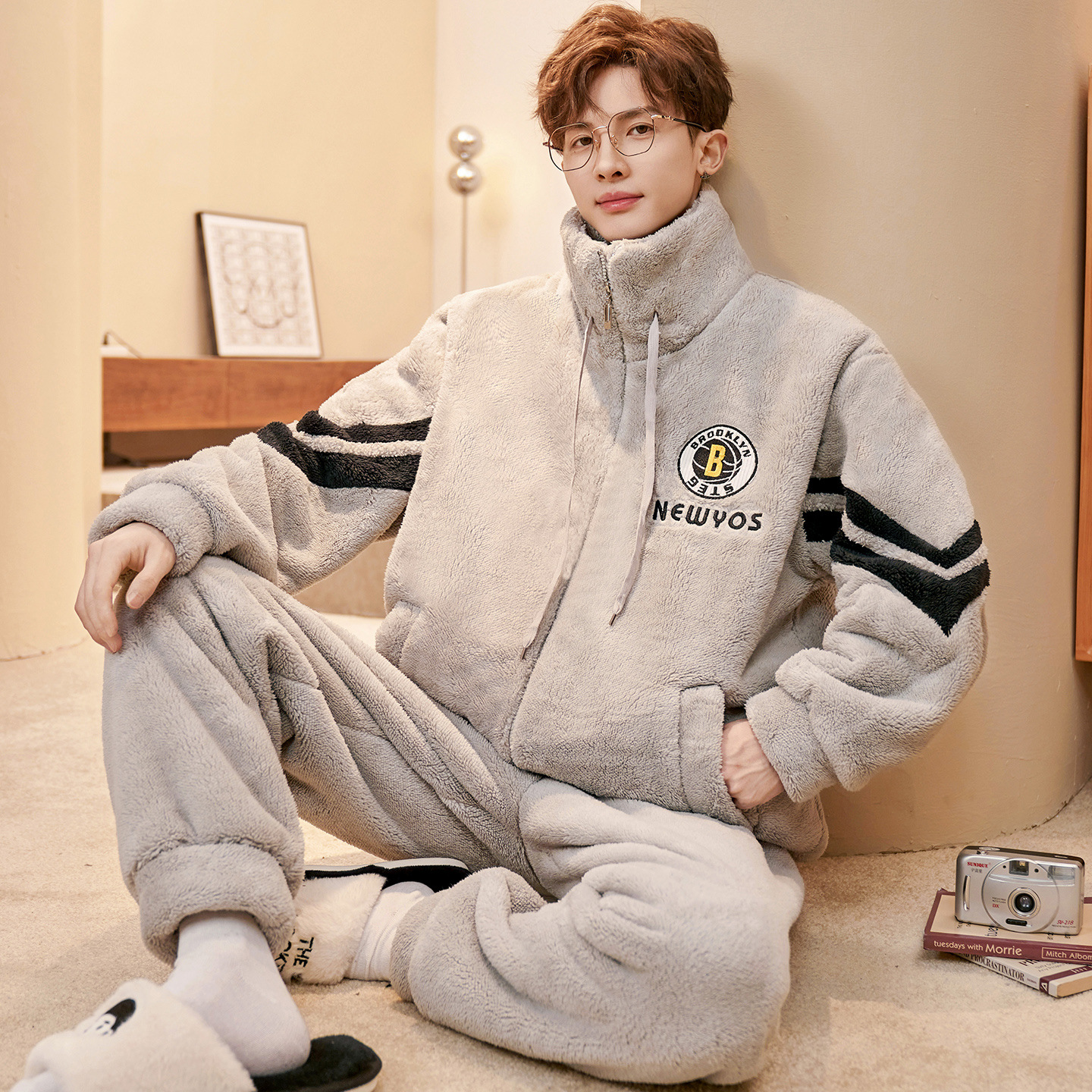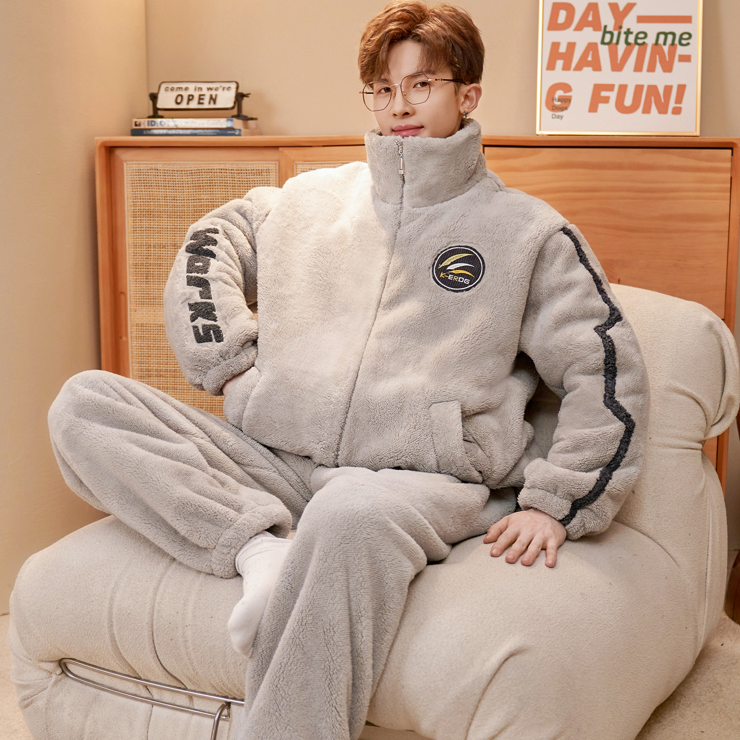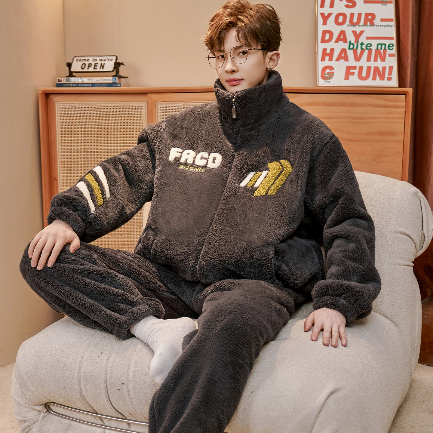 산호 벨벳 파자마 남자 겨울 기모 2024 년 새로운 청소년 플러스 사이즈 가을 및 겨울 홈 의류 소년스토어 가기