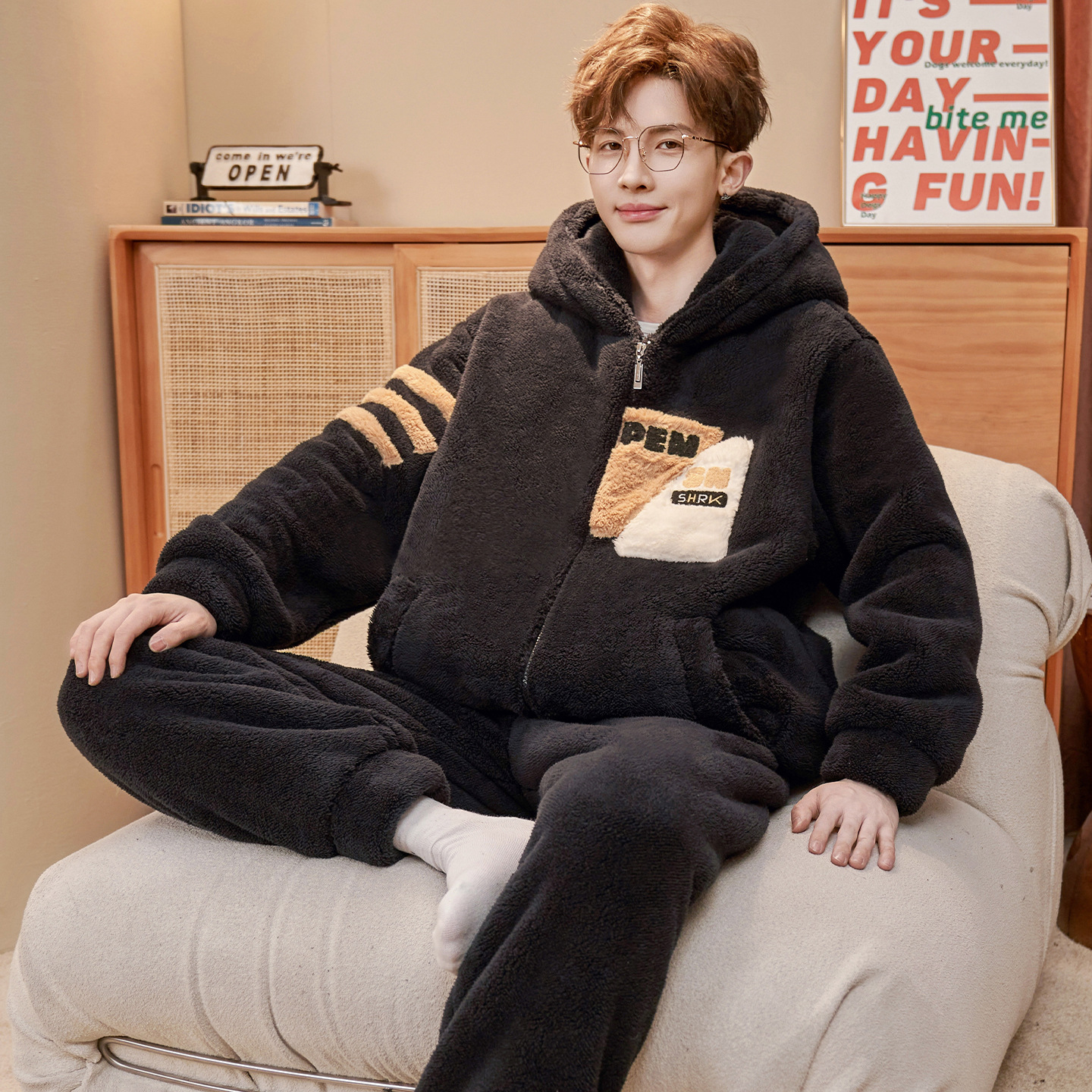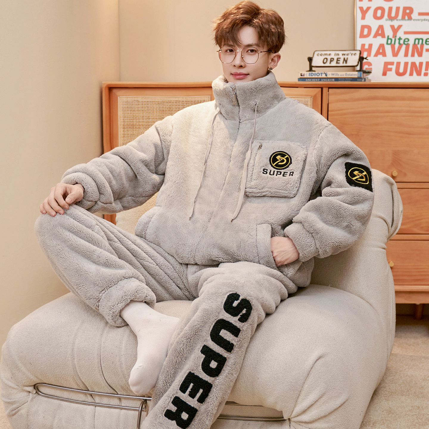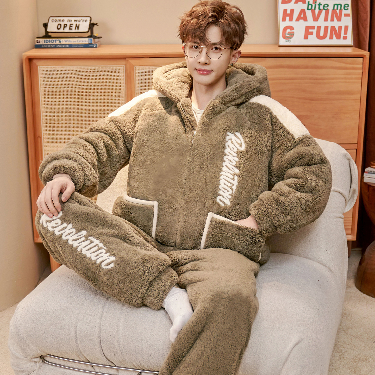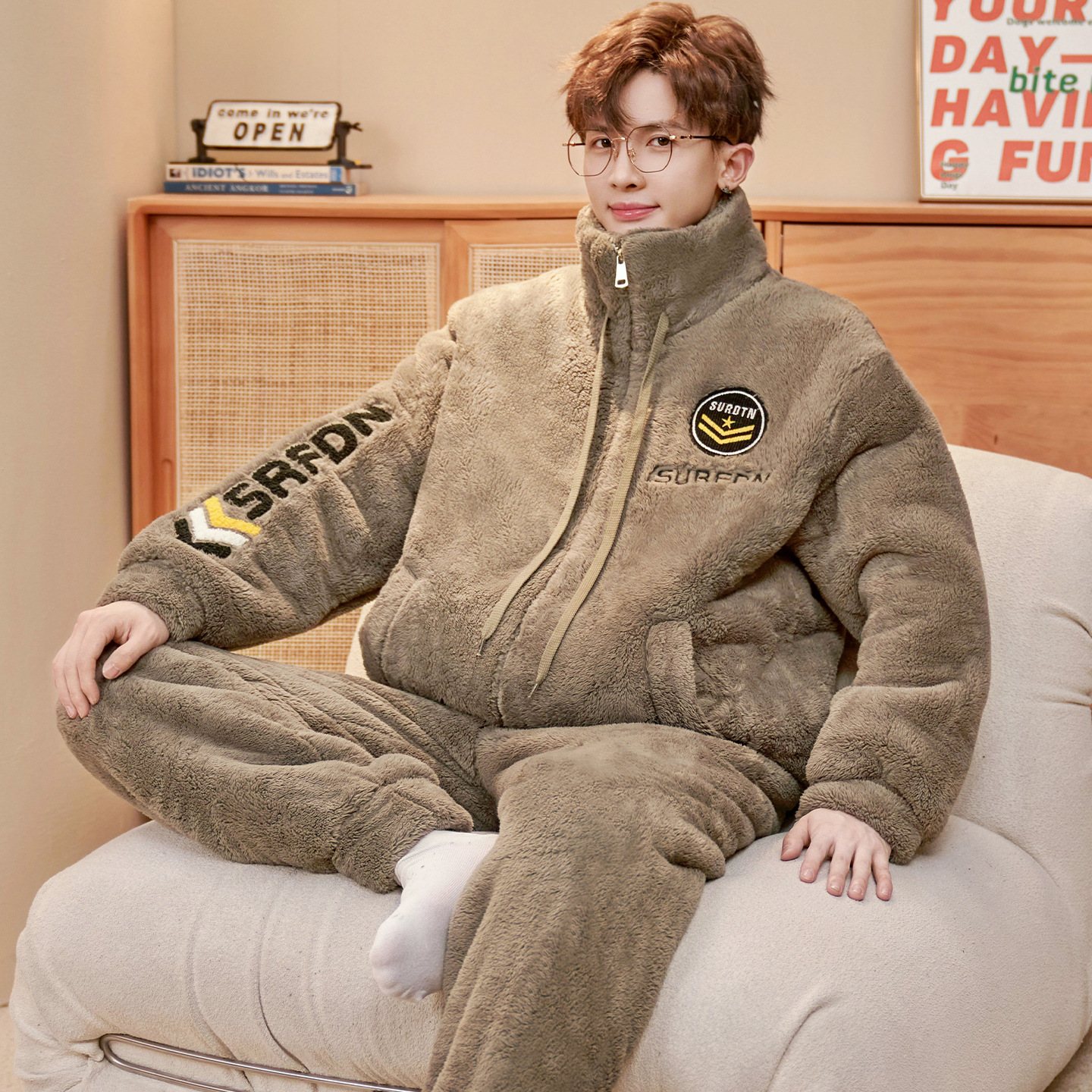 산호 벨벳 파자마 남자 겨울 기모 2024 년 새로운 청소년 플러스 사이즈 가을 및 겨울 홈 의류 소년스토어 가기