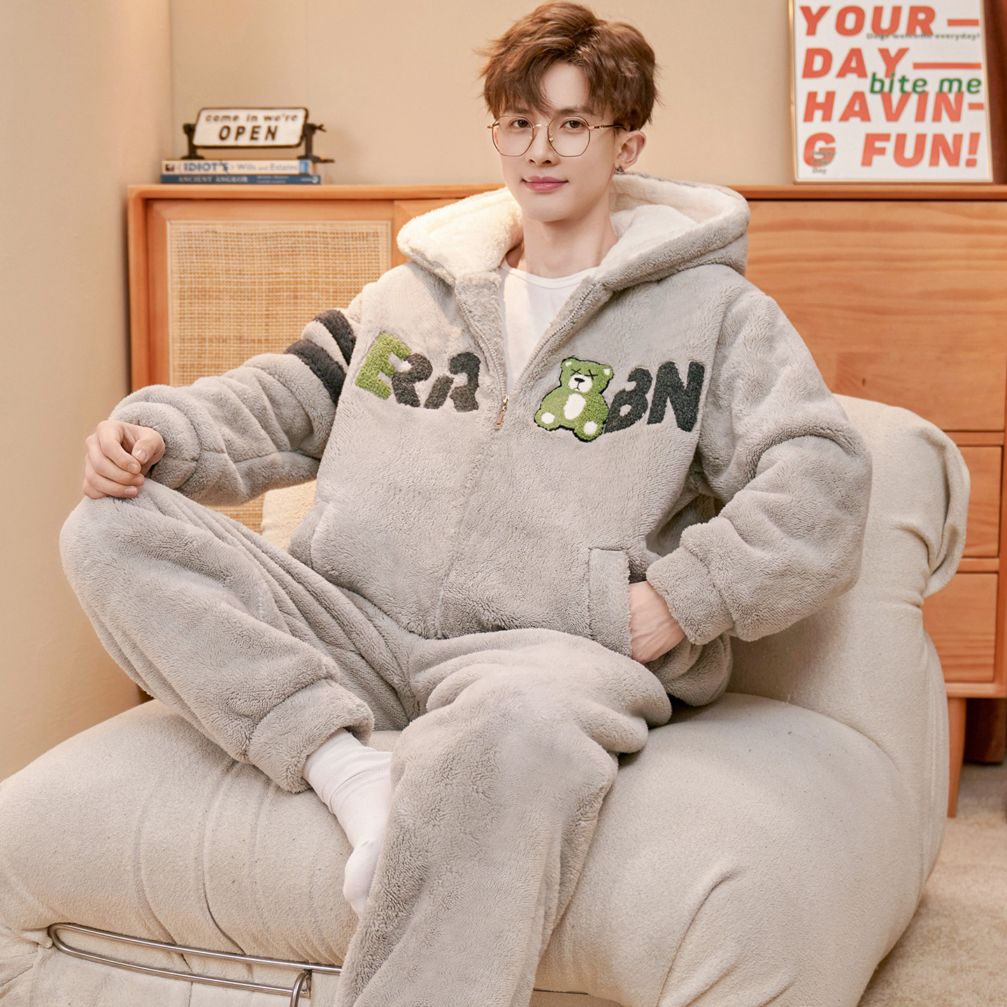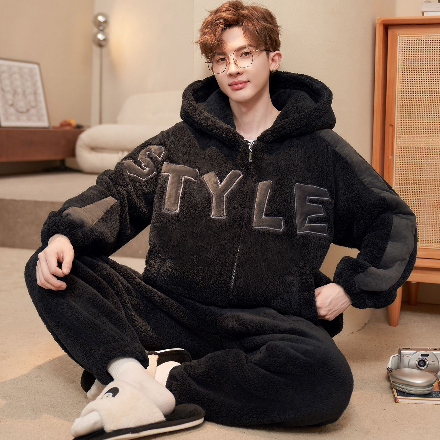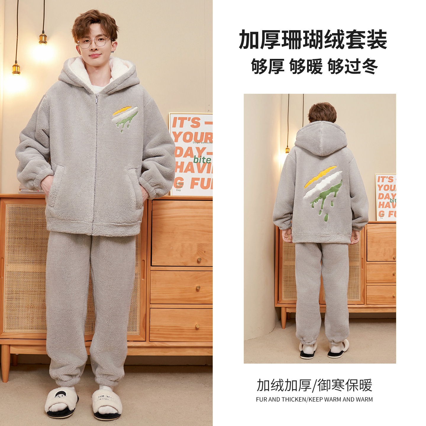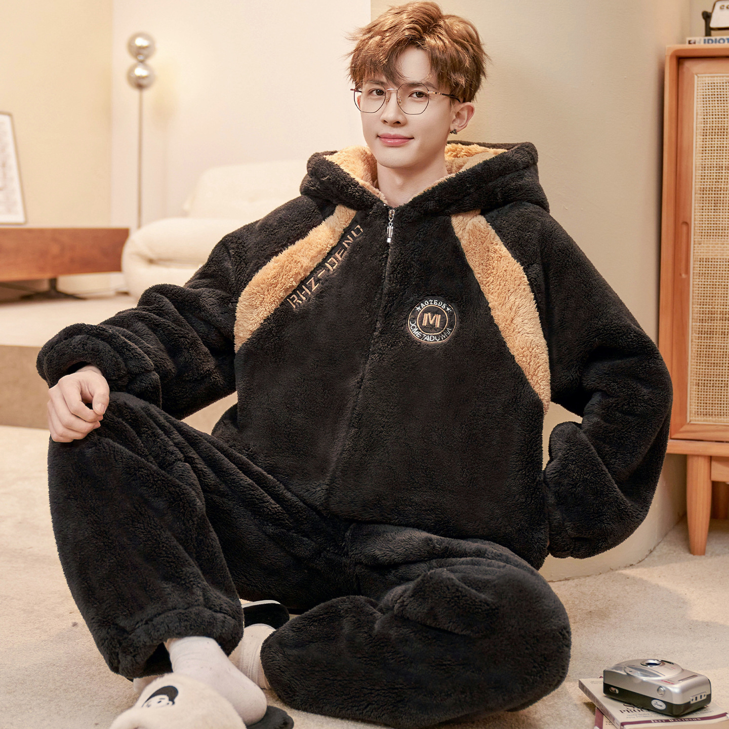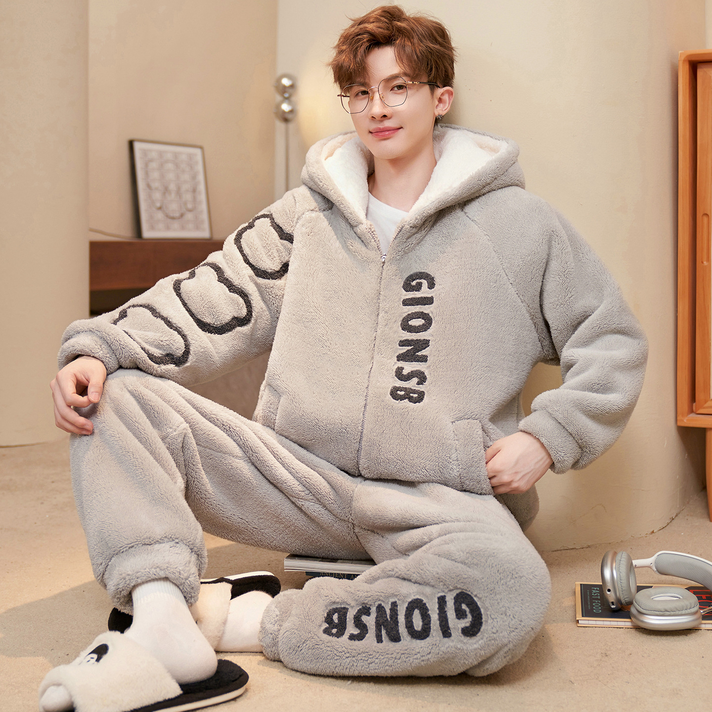 산호 벨벳 파자마 남자 겨울 기모 2024 년 새로운 청소년 플러스 사이즈 가을 및 겨울 홈 의류 소년스토어 가기