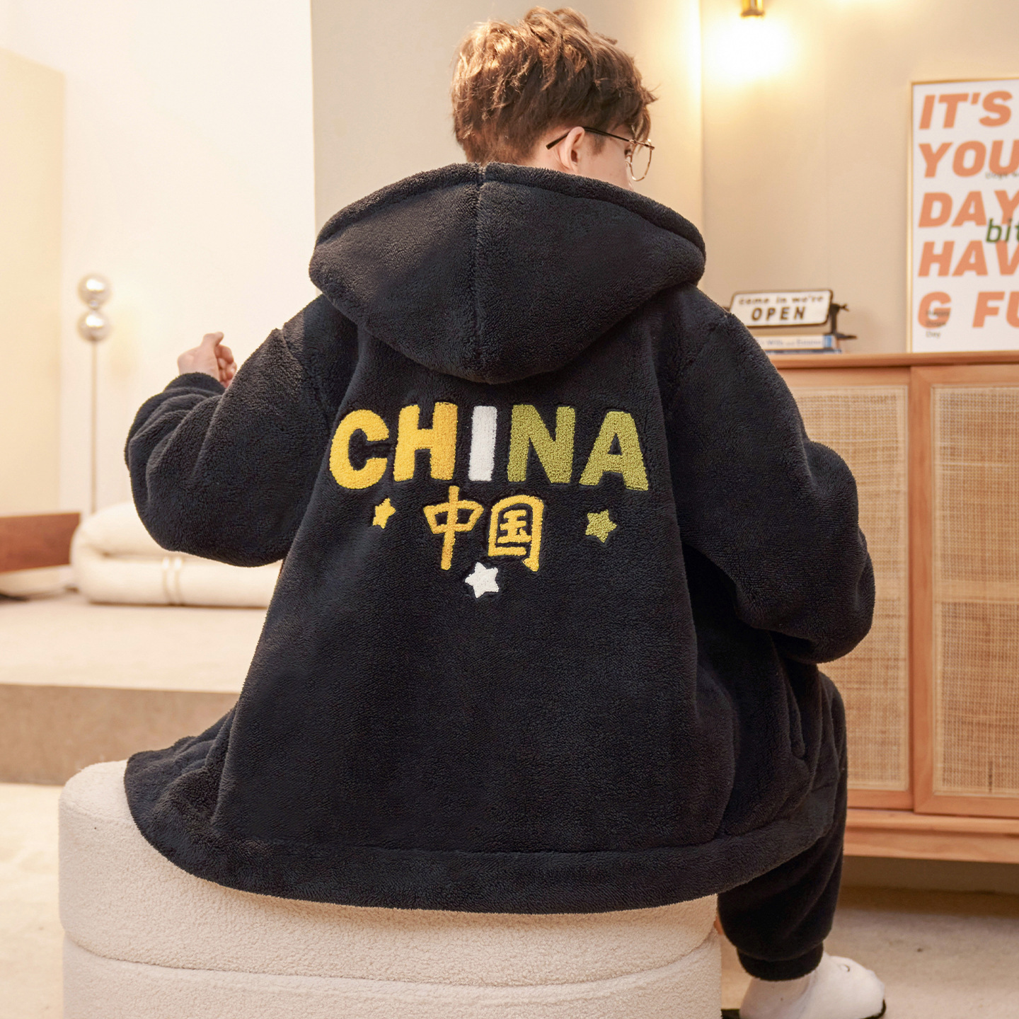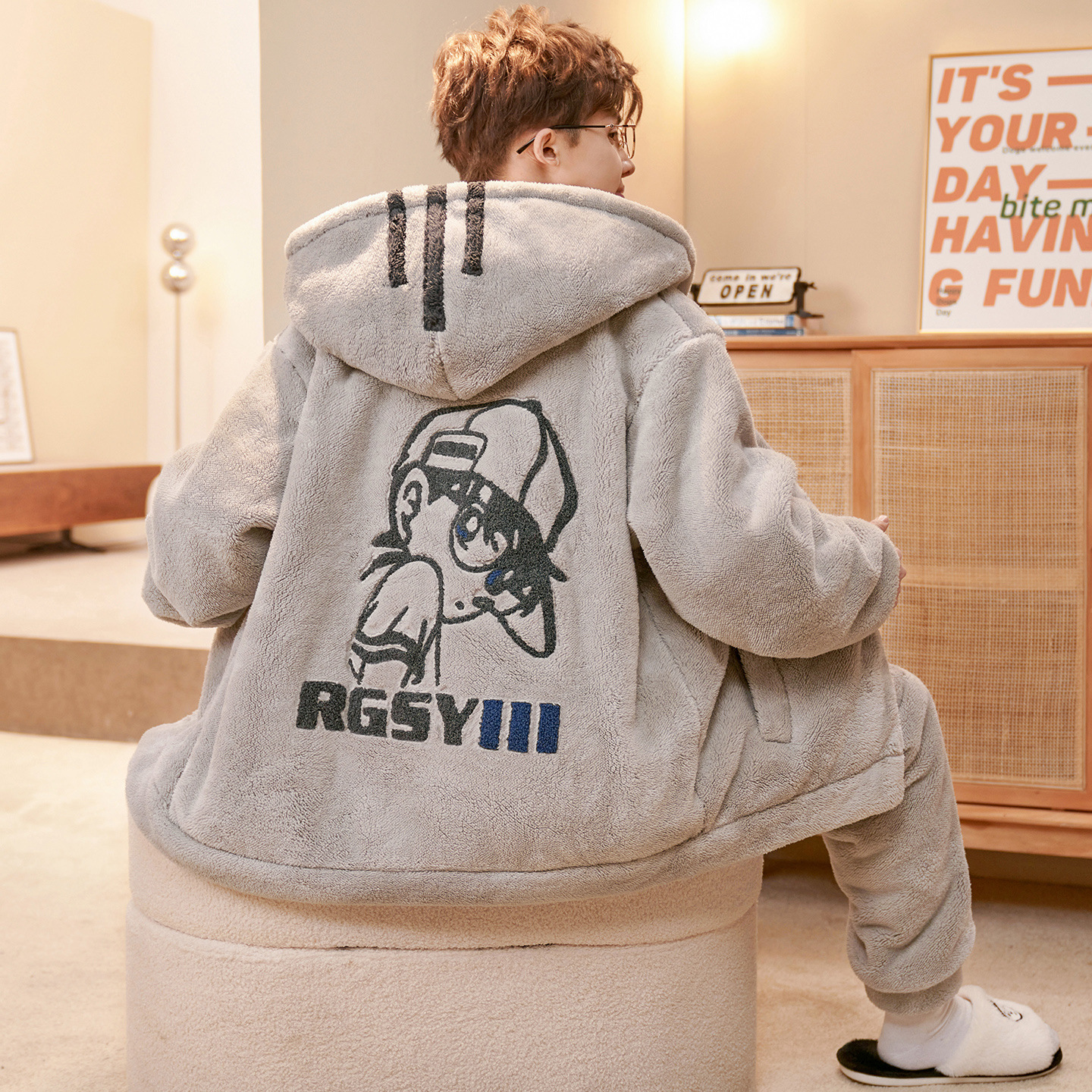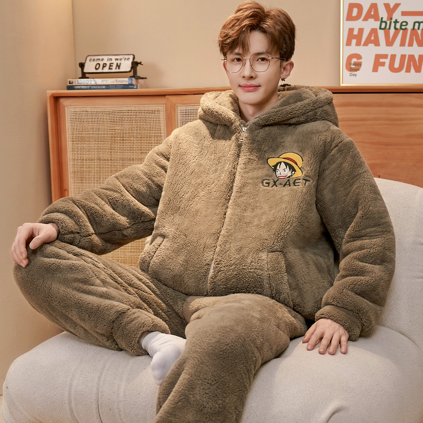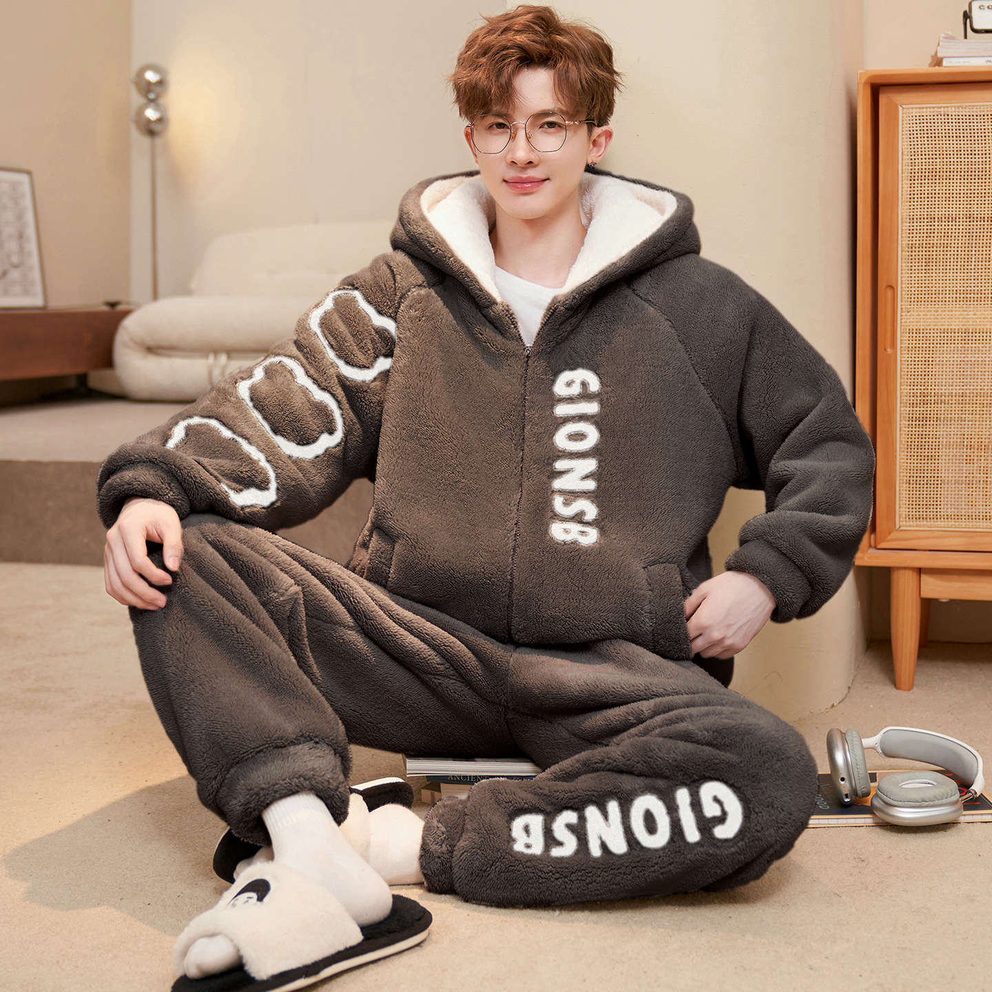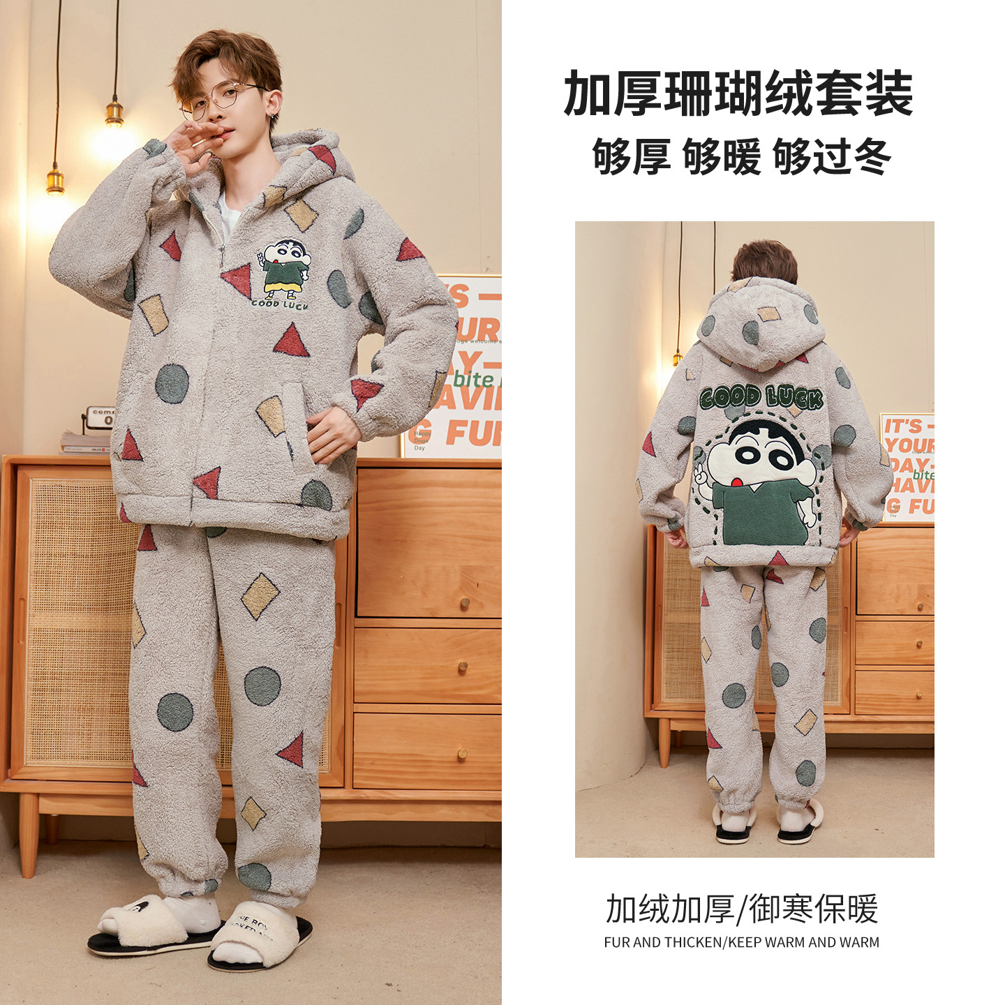 산호 벨벳 파자마 남자 겨울 기모 2024 년 새로운 청소년 플러스 사이즈 가을 및 겨울 홈 의류 소년스토어 가기