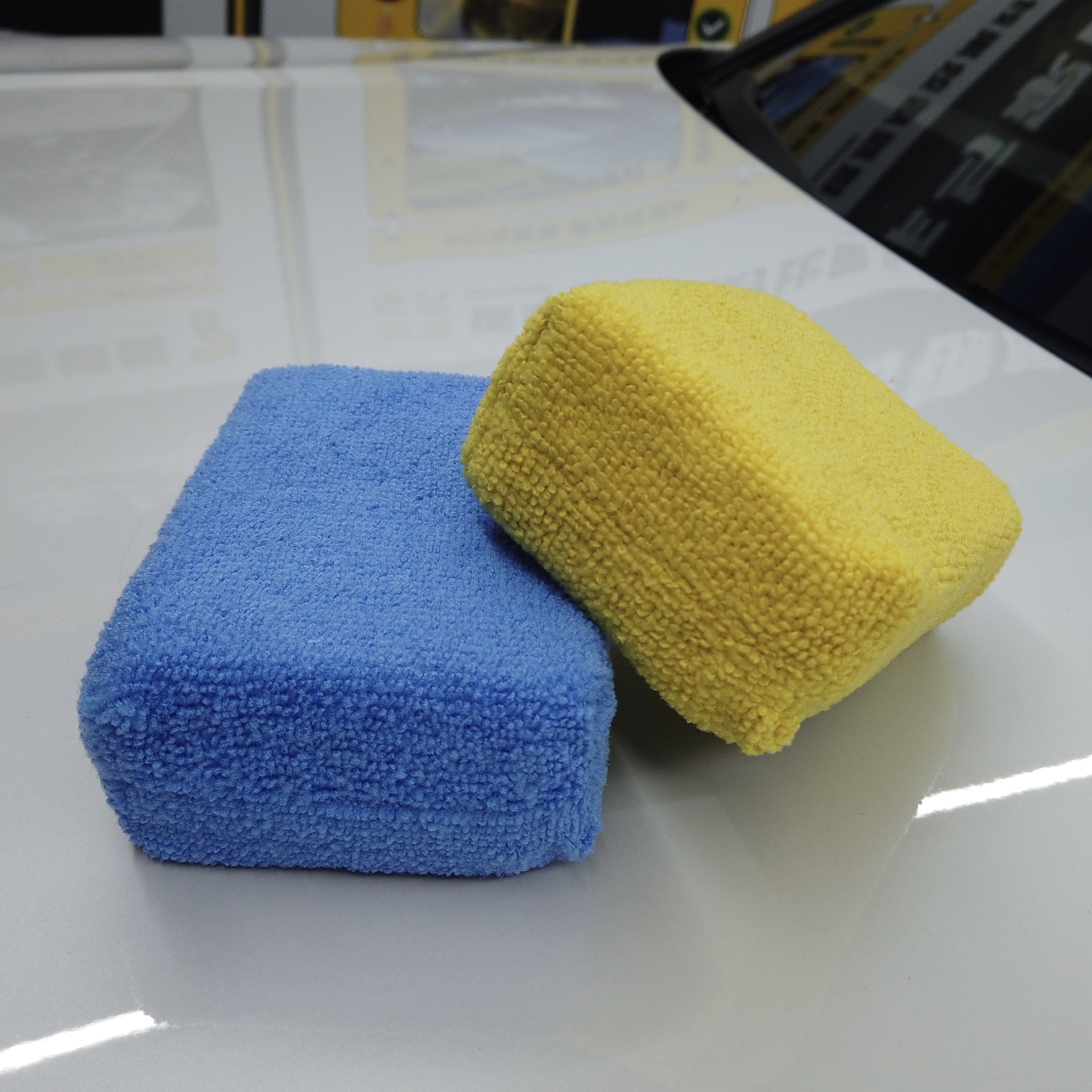 마이크로 파이버 테리 천 사각형 연마 및 왁싱 스폰지 자동차 뷰티 골드 도금 자동차 세차 세척 스펀지
