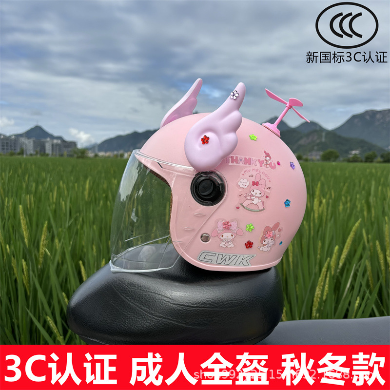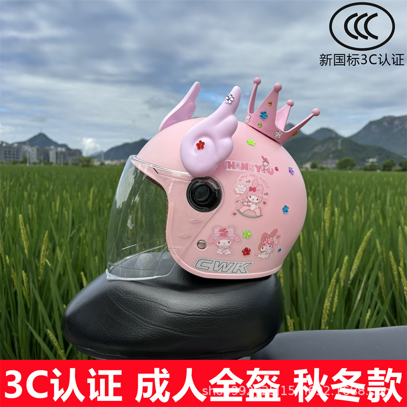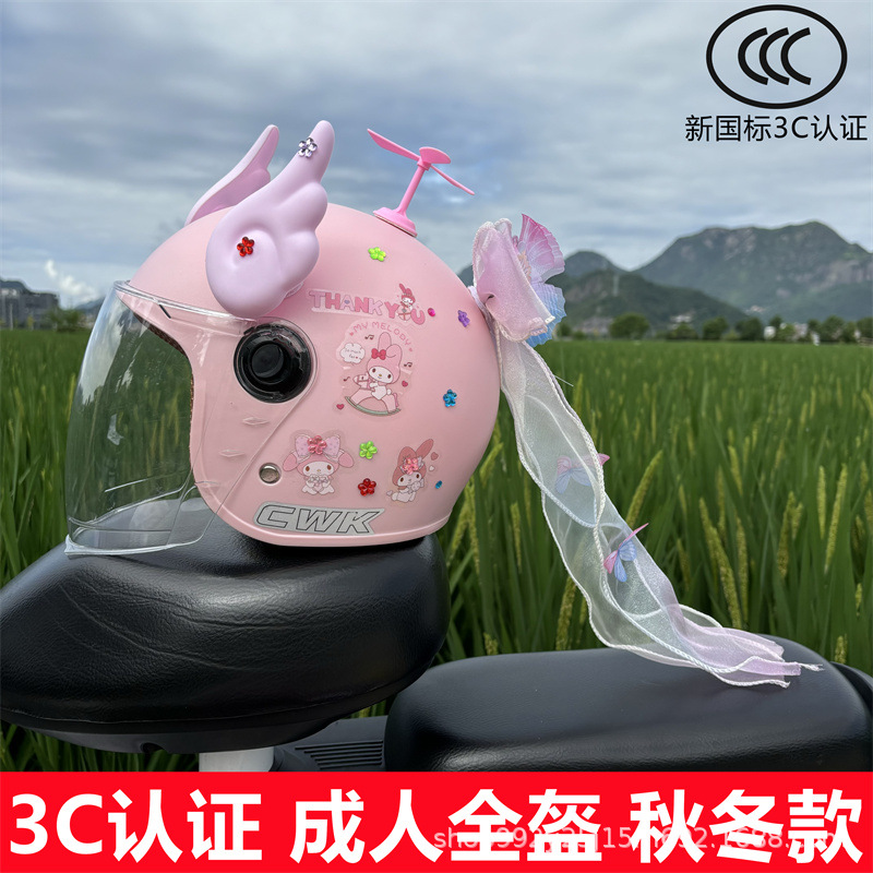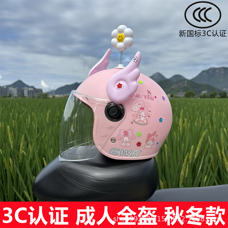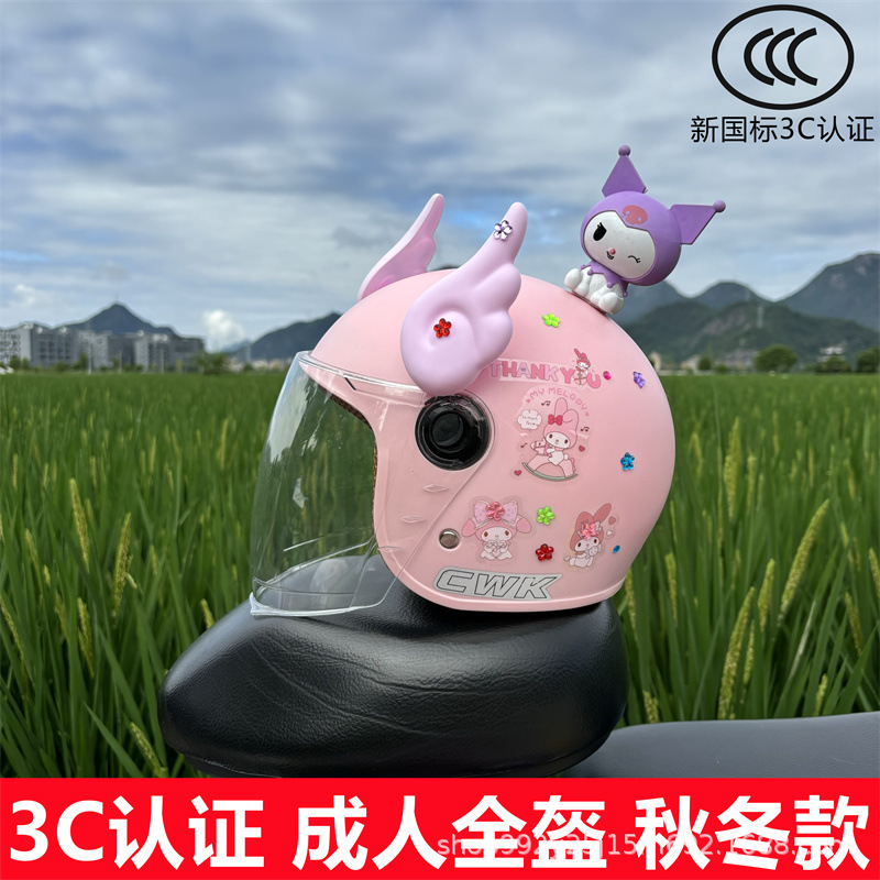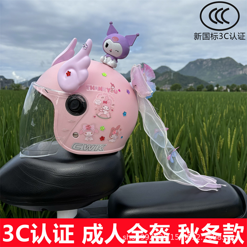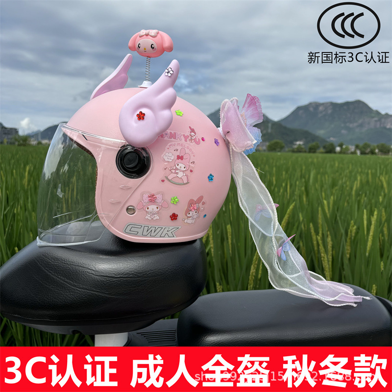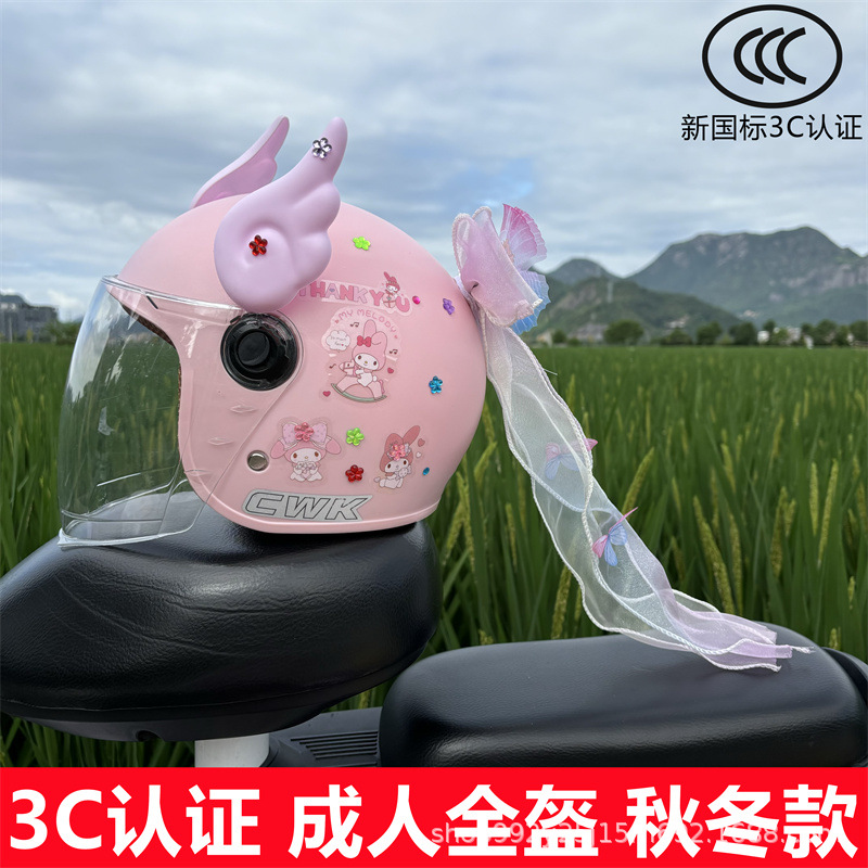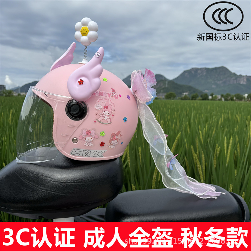 3C 인증 성인 헬멧 귀여운 아름다운 소녀 전기 자동차 방풍 가을과 겨울 따뜻한 안전 헬멧 충돌 방지 헤어