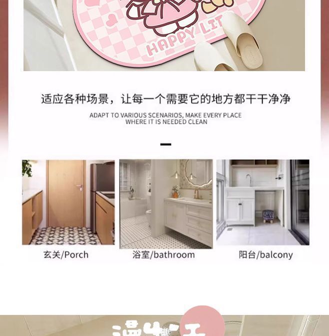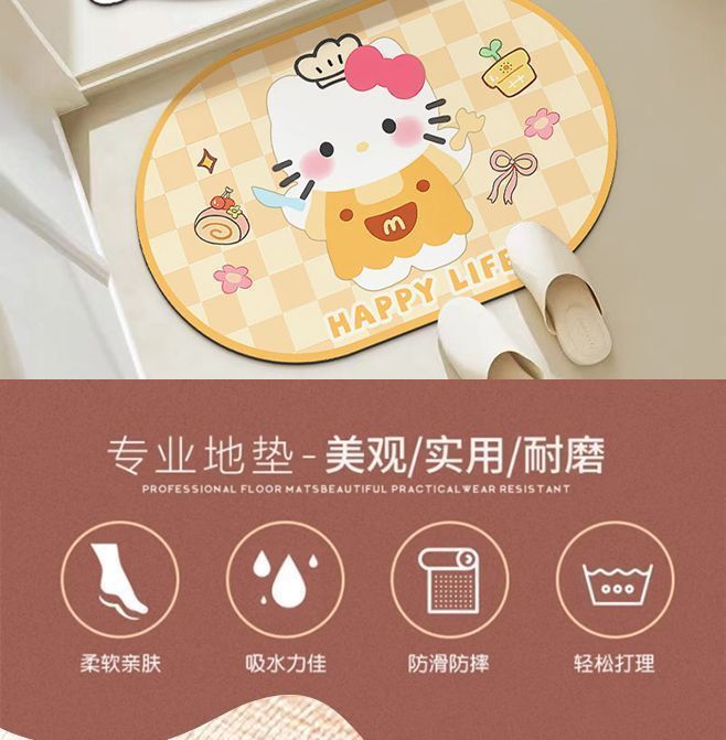 [시간 제한 주희 두 조각] 키티 카펫 욕실 초 흡수성 내마모성 크리스탈 벨벳 입구 문 입구 매트스토어 가기