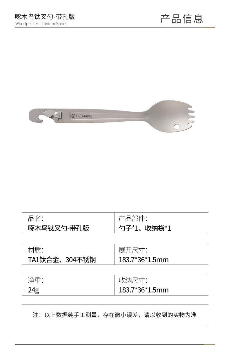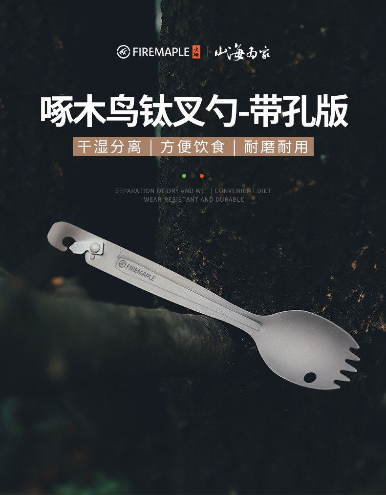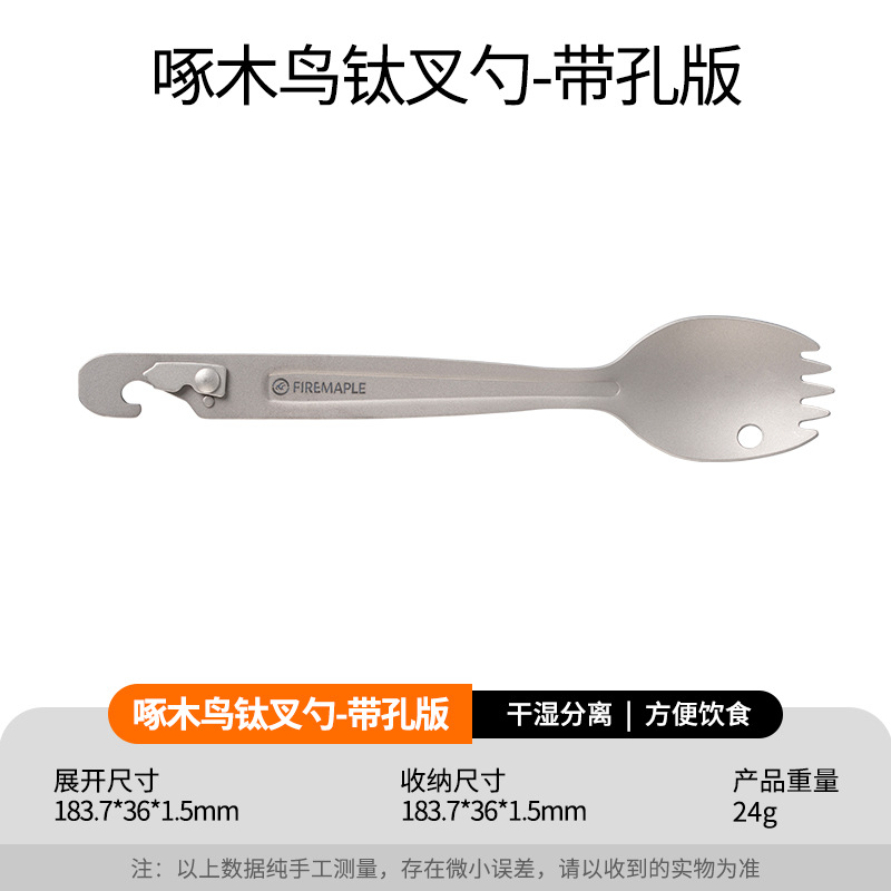 불 단풍 딱따구리 티타늄 식기 야외 캠핑 휴대용 식기 세트 티타늄 포크 스푼 쌀 숟가락 수프 스푼