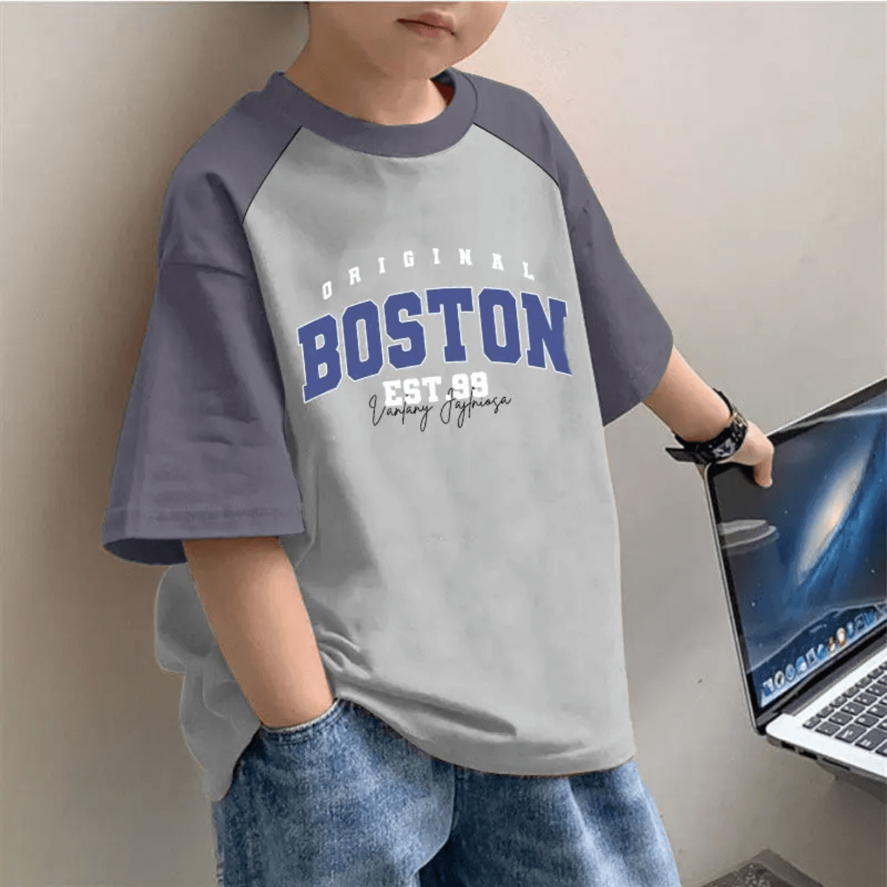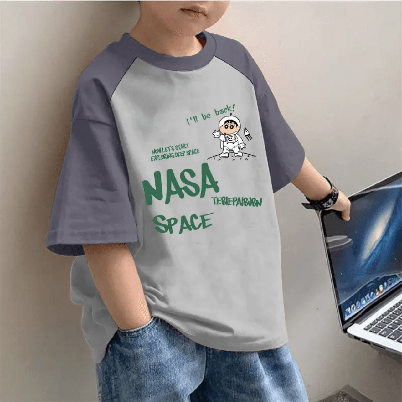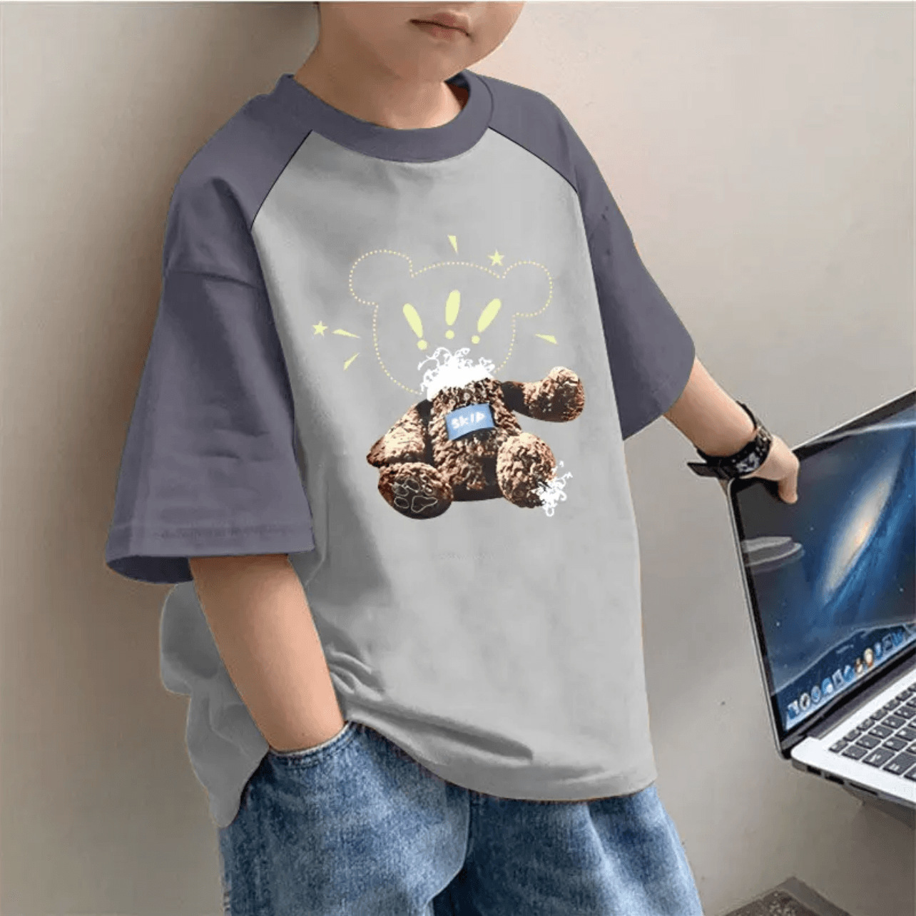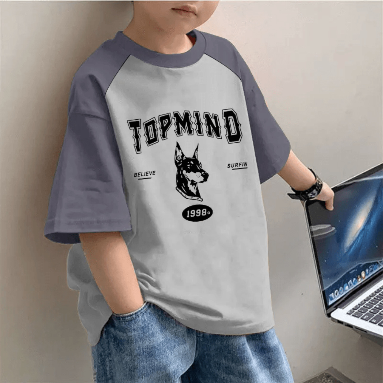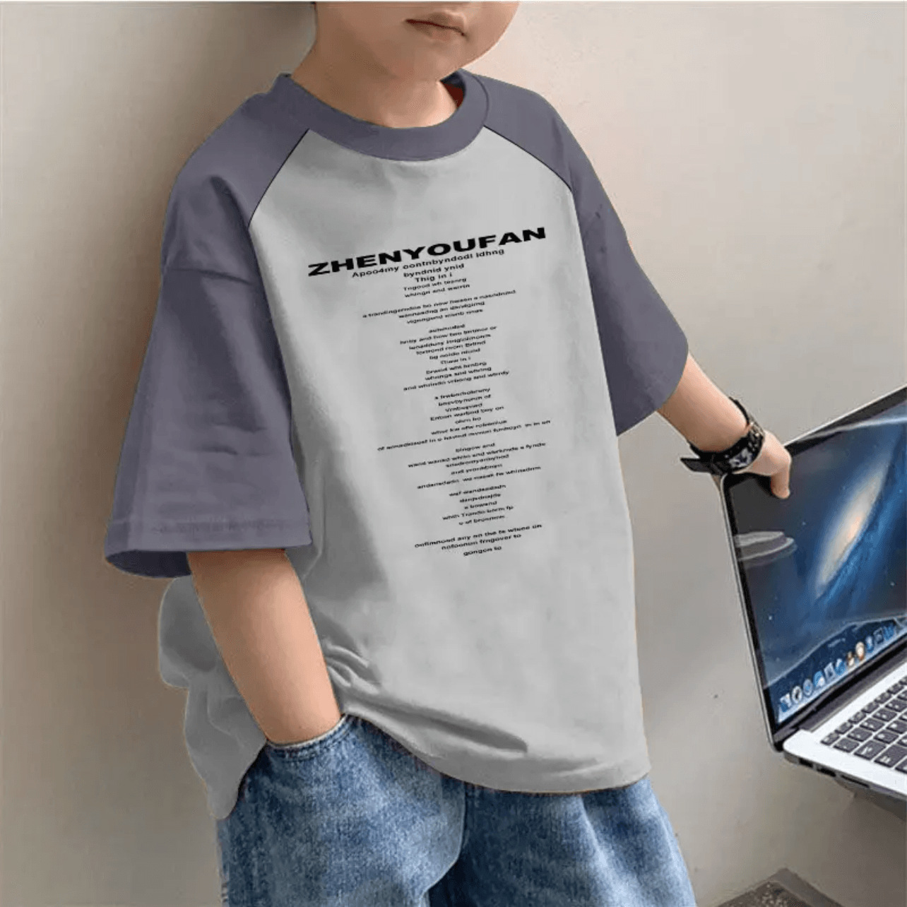 남학생 면 반팔 티셔츠 대형 어린이 여름 새 인쇄 서양식 어린이 잘 생긴 소년 캐주얼 티셔츠스토어 가기