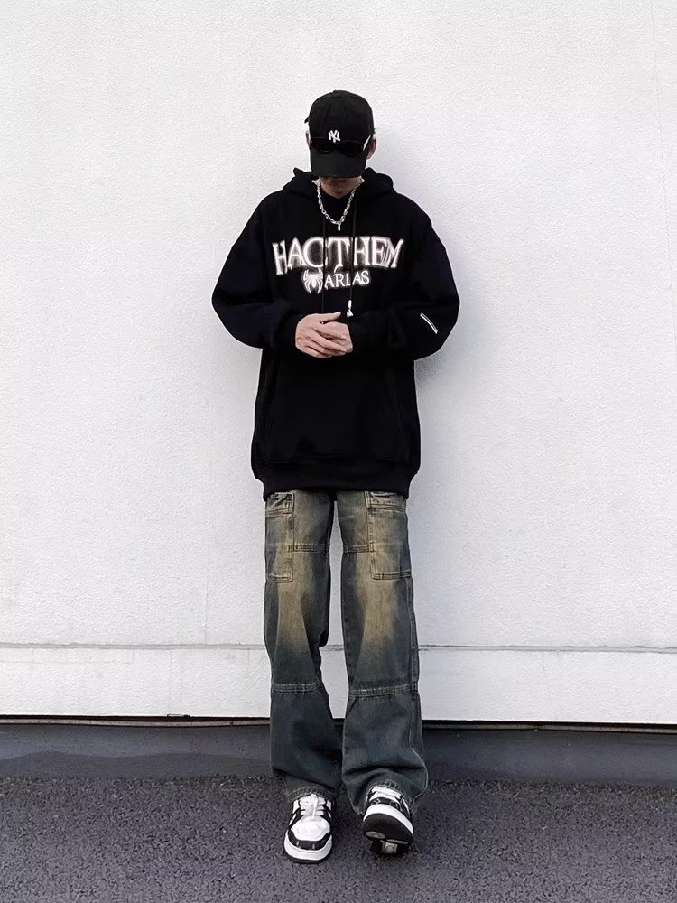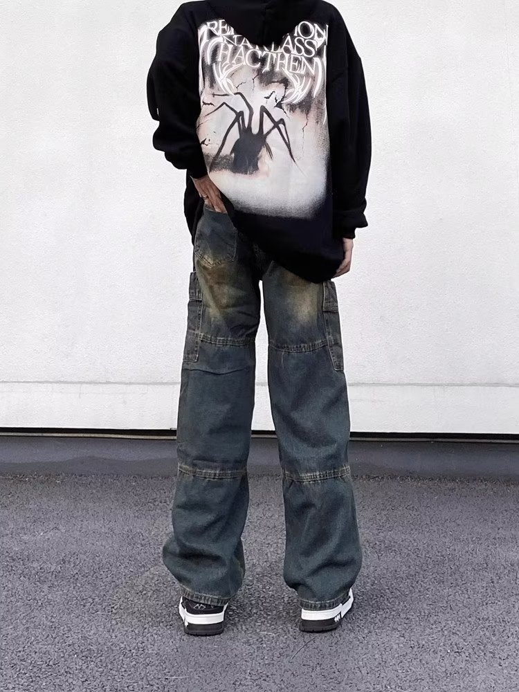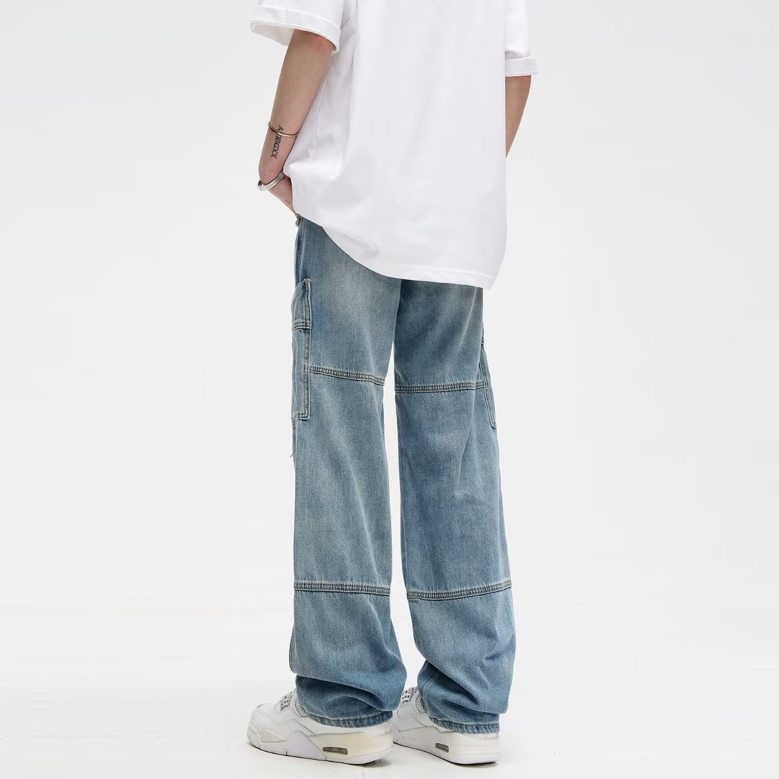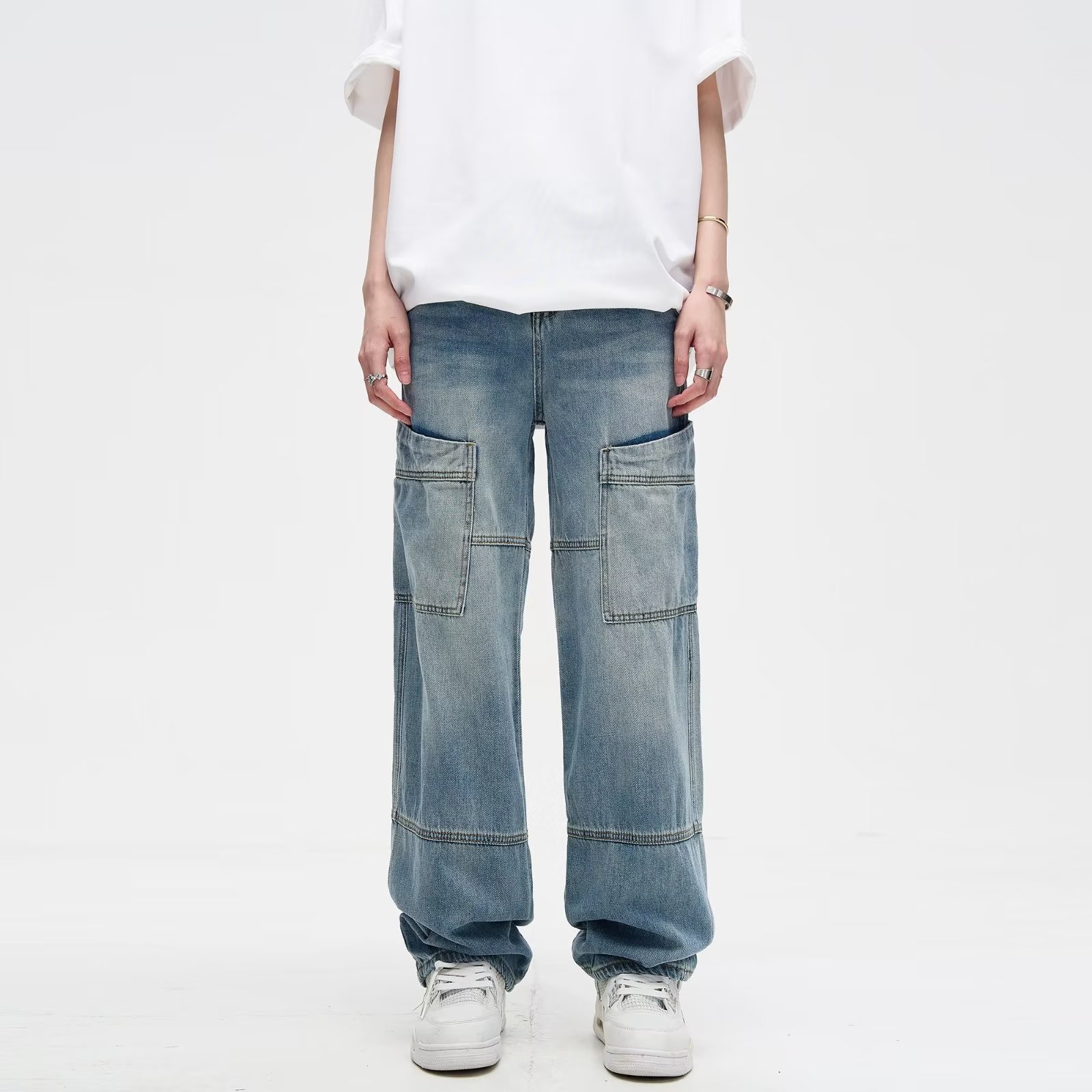 툴링 청바지 남성용 스트레이트-레그 루즈 아메리칸 스타일 하이 스트리트 바이브 팬츠 트렌디 브랜드 러피언 핸섬 포켓 레트로 향수 바지스토어 가기