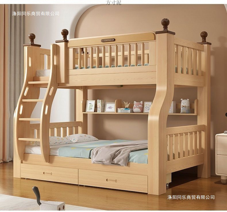 모든 단단한 나무 이층 침대 어린이 침대 조합 상단 및 낮은 침대 작은 아파트 가구 더블 높고 낮은 침대 어머니 침대스토어 가기