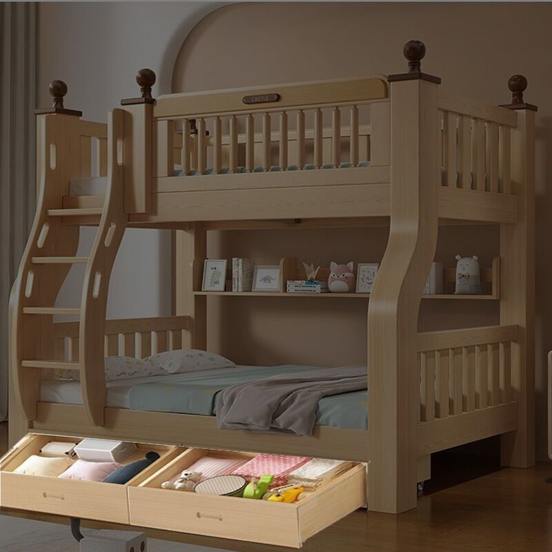 모든 단단한 나무 이층 침대 어린이 침대 조합 상단 및 낮은 침대 작은 아파트 가구 더블 높고 낮은 침대 어머니 침대