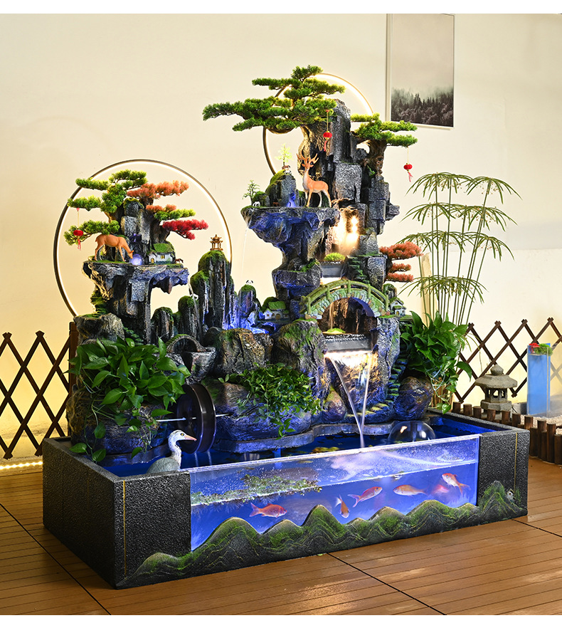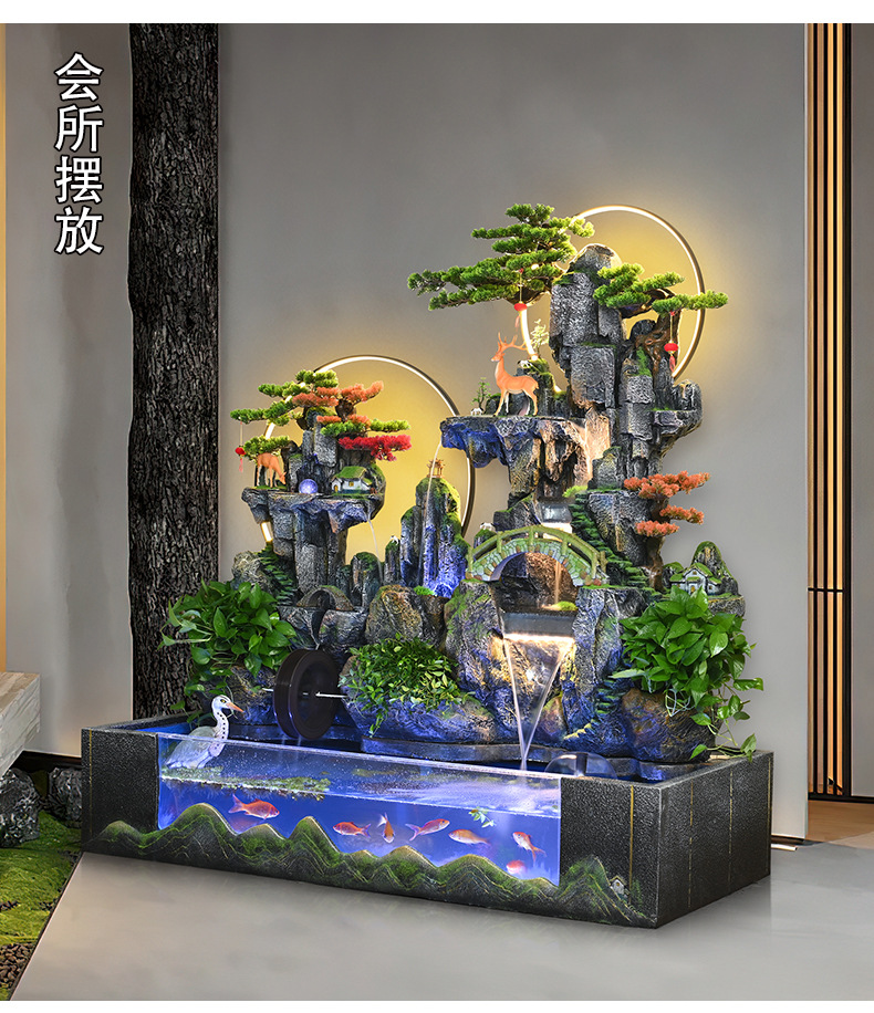 대형 바위 흐르는 물 분수 거실 가습기 풍수 바퀴 착륙 실내 물고기 연못 조경 장식 운세 장식스토어 가기