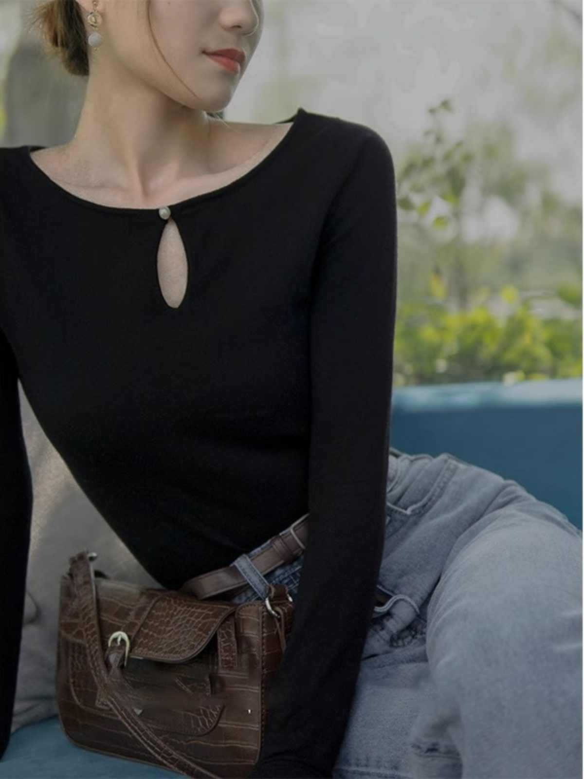 2025 봄 프랑스 니트웨어 여성용 슬림 핏 디자인 틈새 시크베이스 셔츠 여성용 외부 및 외부 웨스턴 스타일 탑