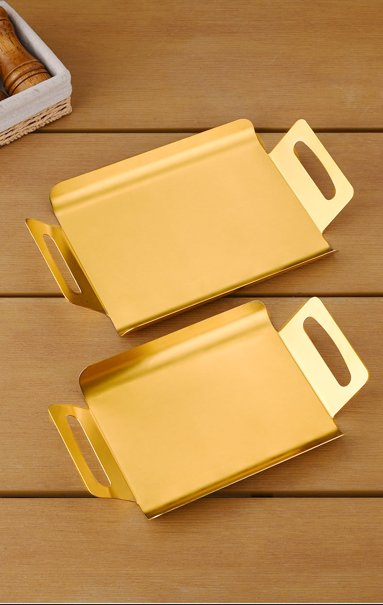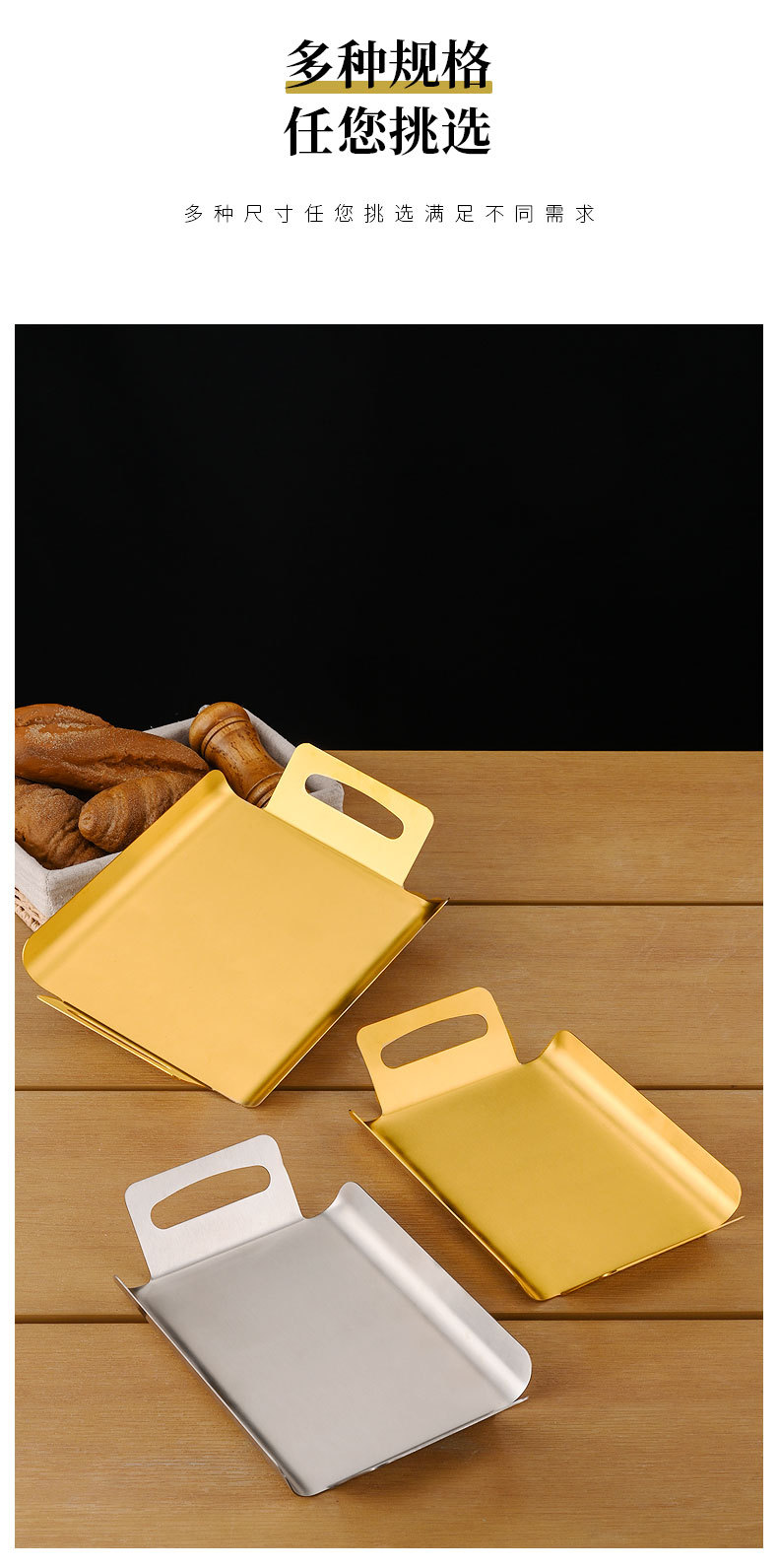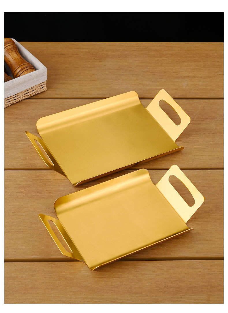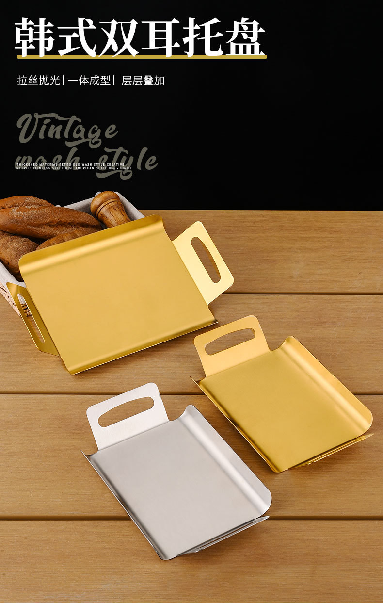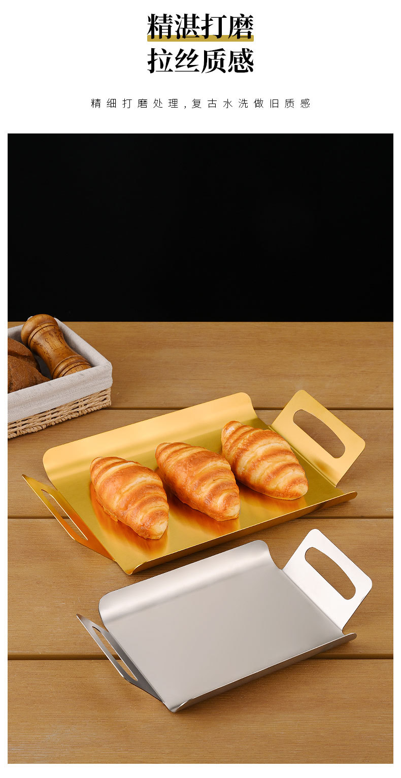 스테인레스 스틸 바이노럴 티 트레이 창조적 인 직사각형 얕은 트레이 귀 저장 트레이 스낵 빵 트레이 디저트 트레이