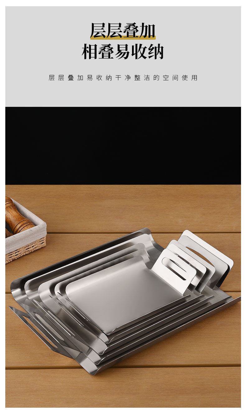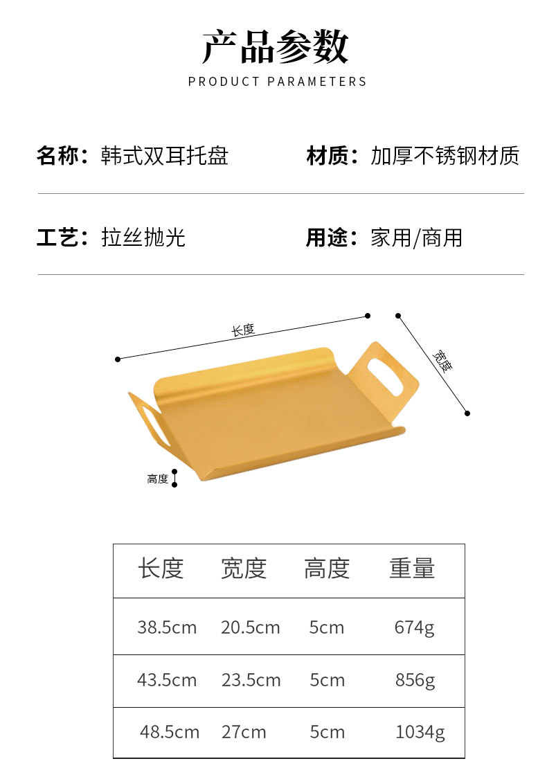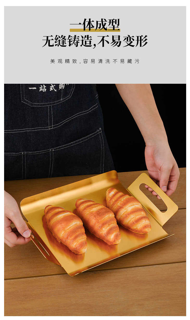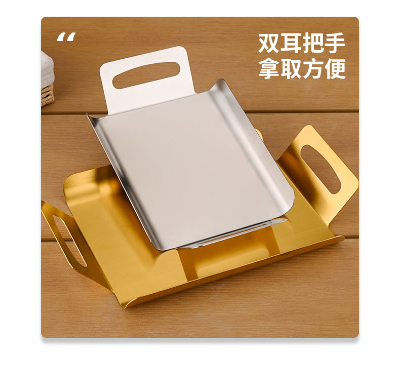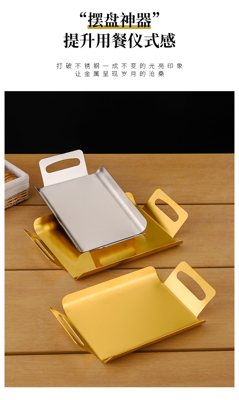 스테인레스 스틸 바이노럴 티 트레이 창조적 인 직사각형 얕은 트레이 귀 저장 트레이 스낵 빵 트레이 디저트 트레이